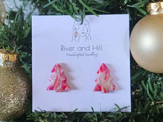 Christmas Pink Tree Studs
