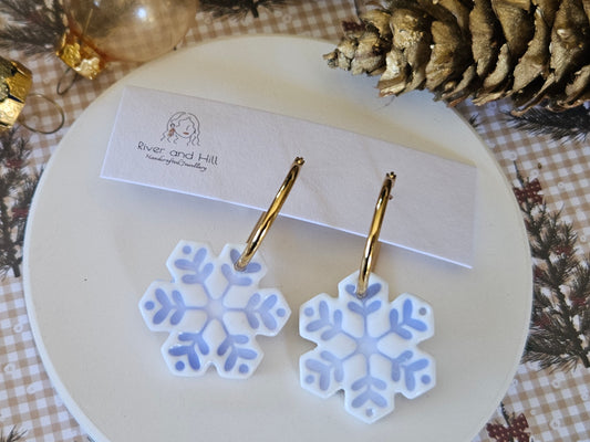 Christmas Porcelain Look Snowflake Hoop Earrings