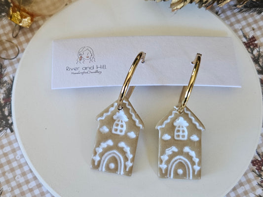 Christmas Folk Gingerbread House Hoop Earrings