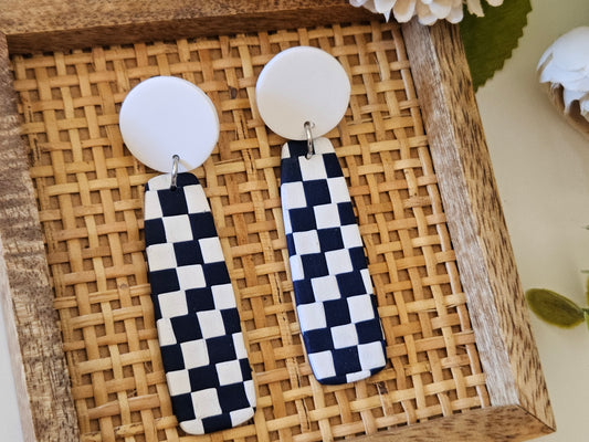 Checkered Bar Navy and White EarringsRegular price $35.00 NZDRegular priceUnit price per-