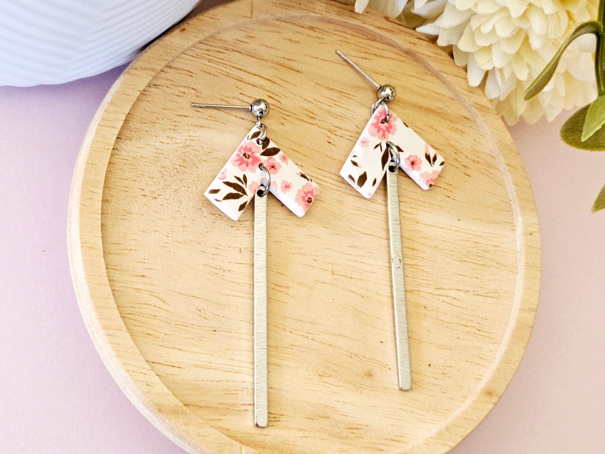Arrow Floral Print Silver Dangle Earrings