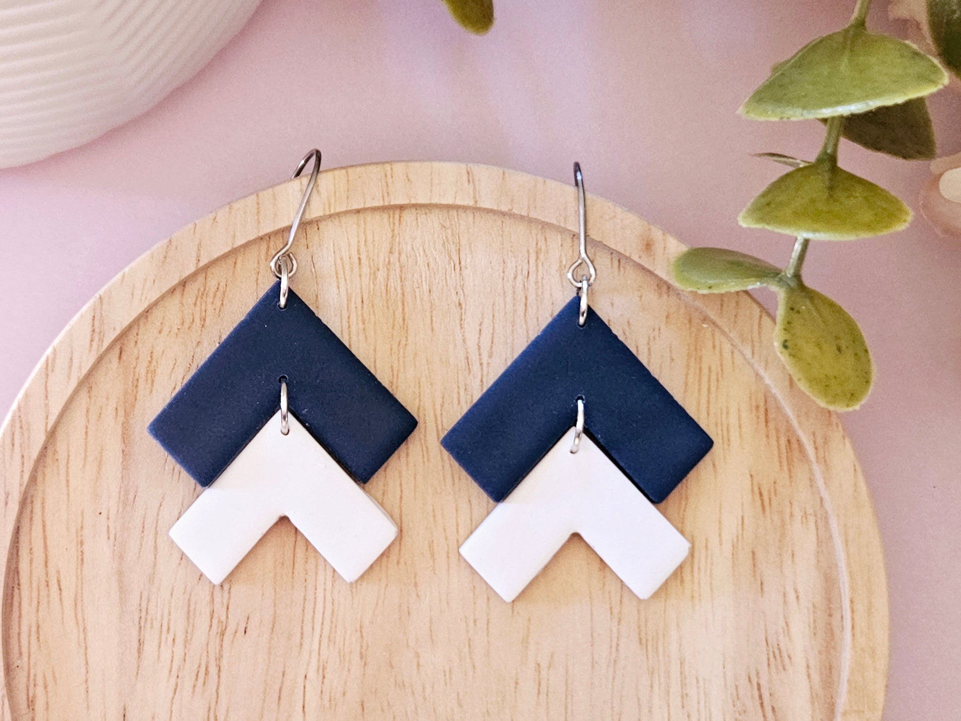 Arrow Navy and White Hook Earrings