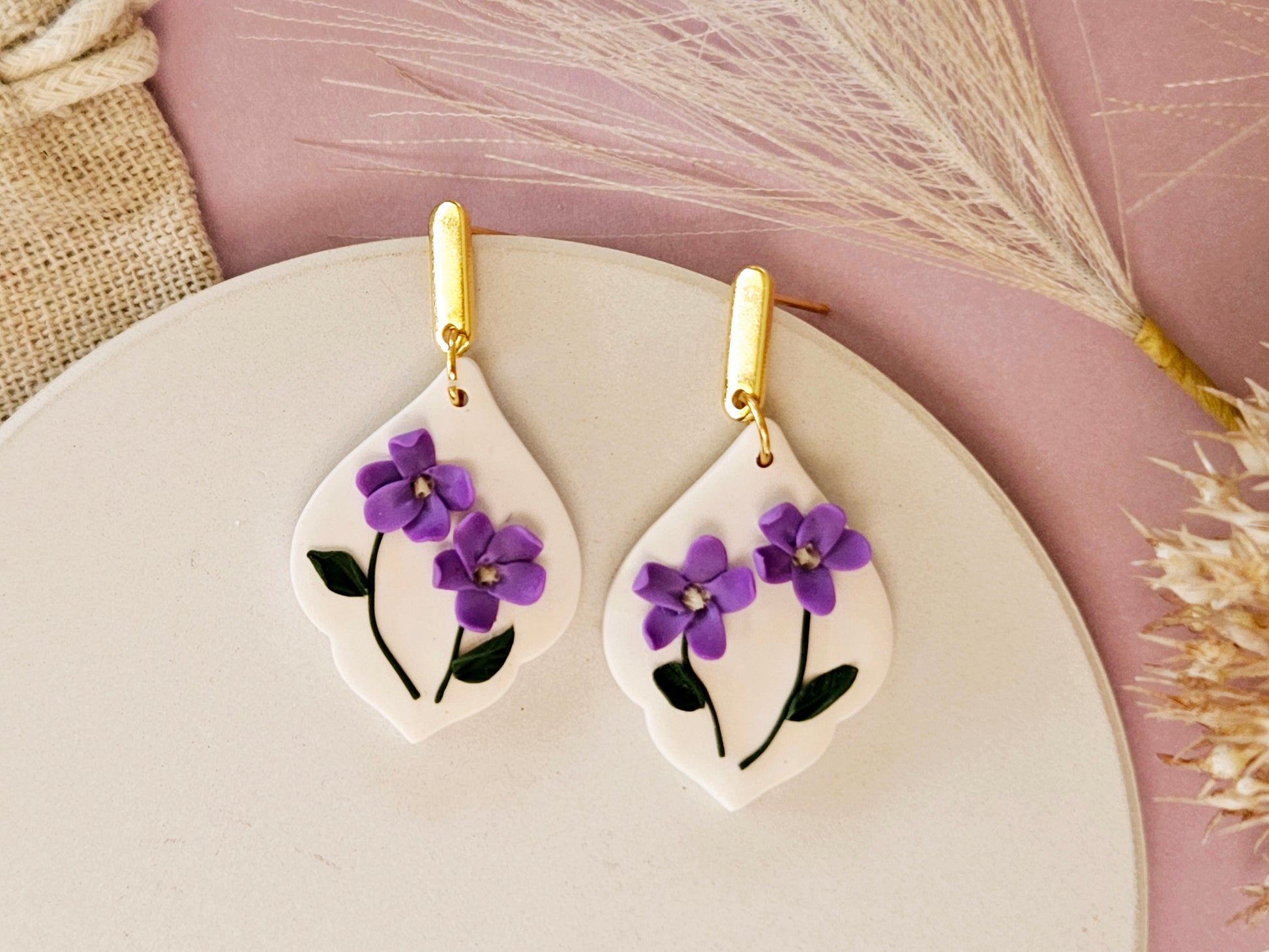 Each petal, leaf and steam are handmade using polymer clay. No two pairs will be identical, making them unique just to you.