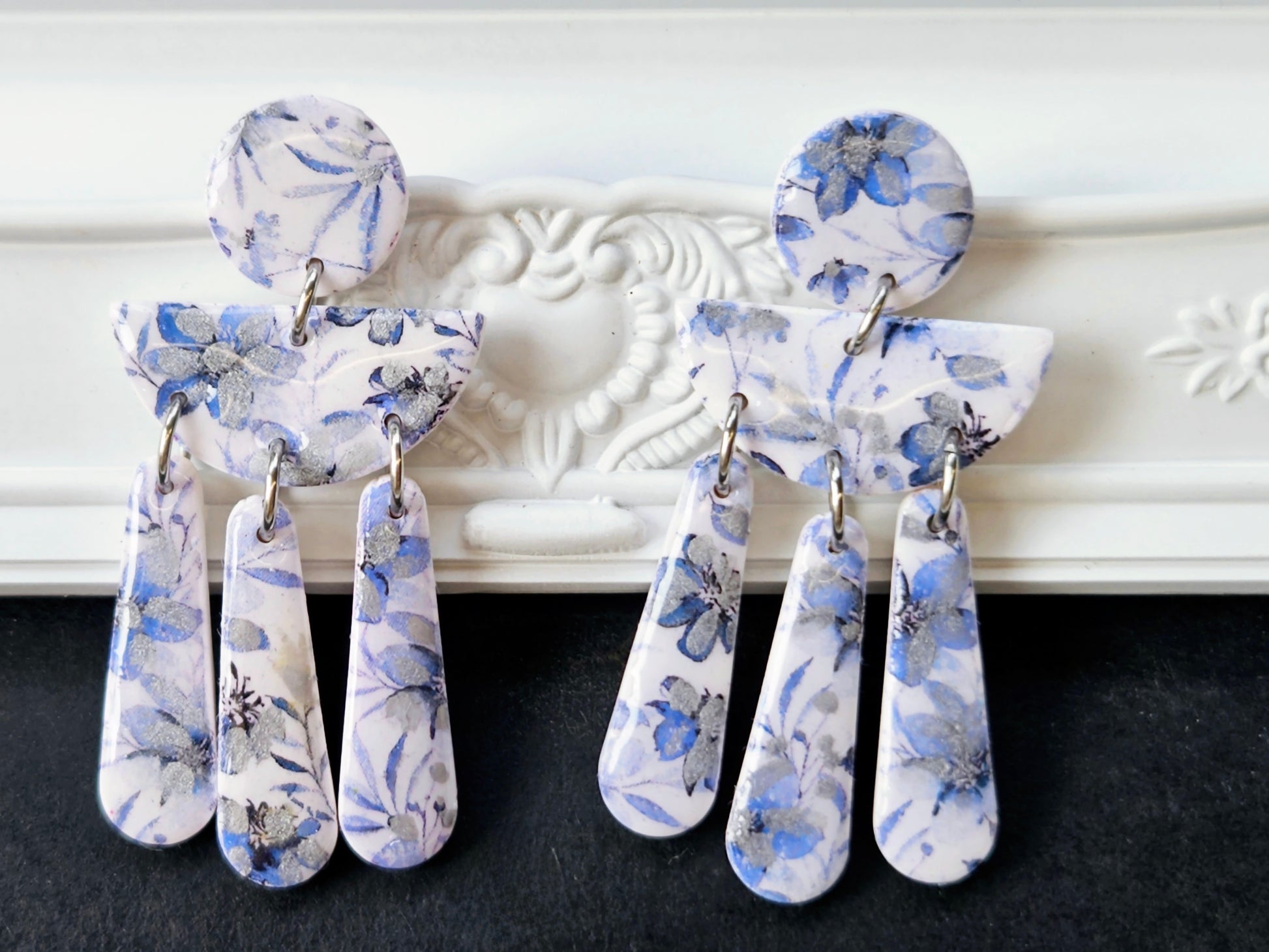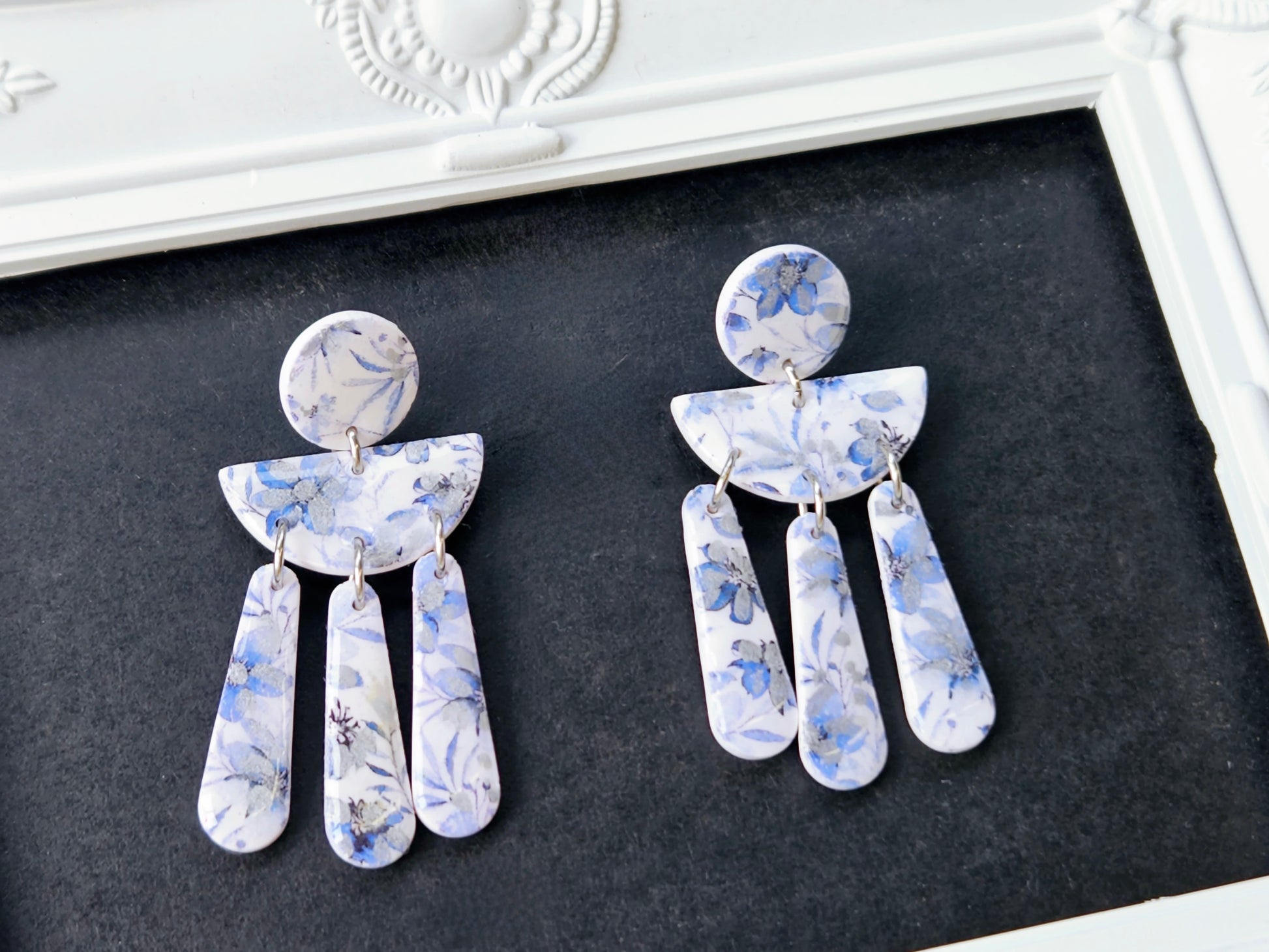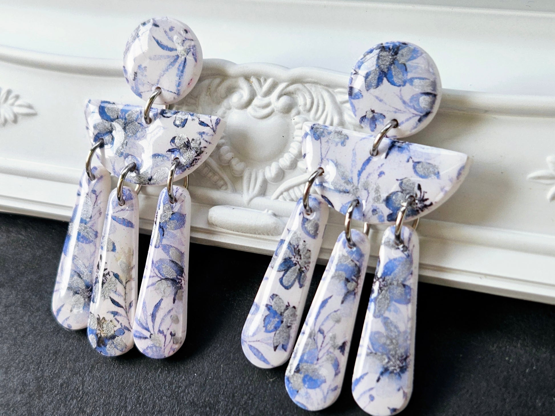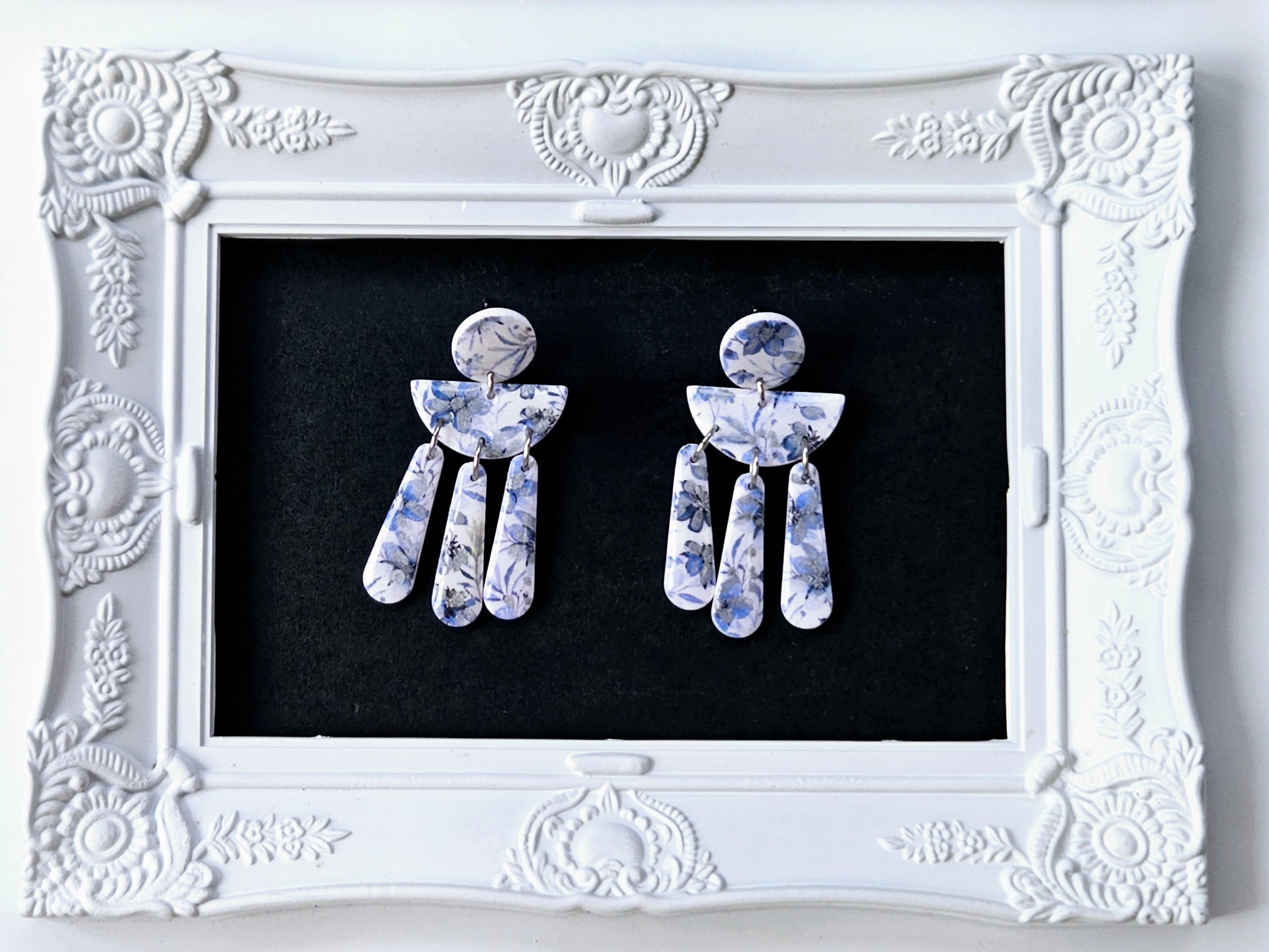 The botanical blues collection offers a small range of earrings in shades of blue and white. These earrings will pair perfectly with your favorite pair of blue jeans, or denim jacket.