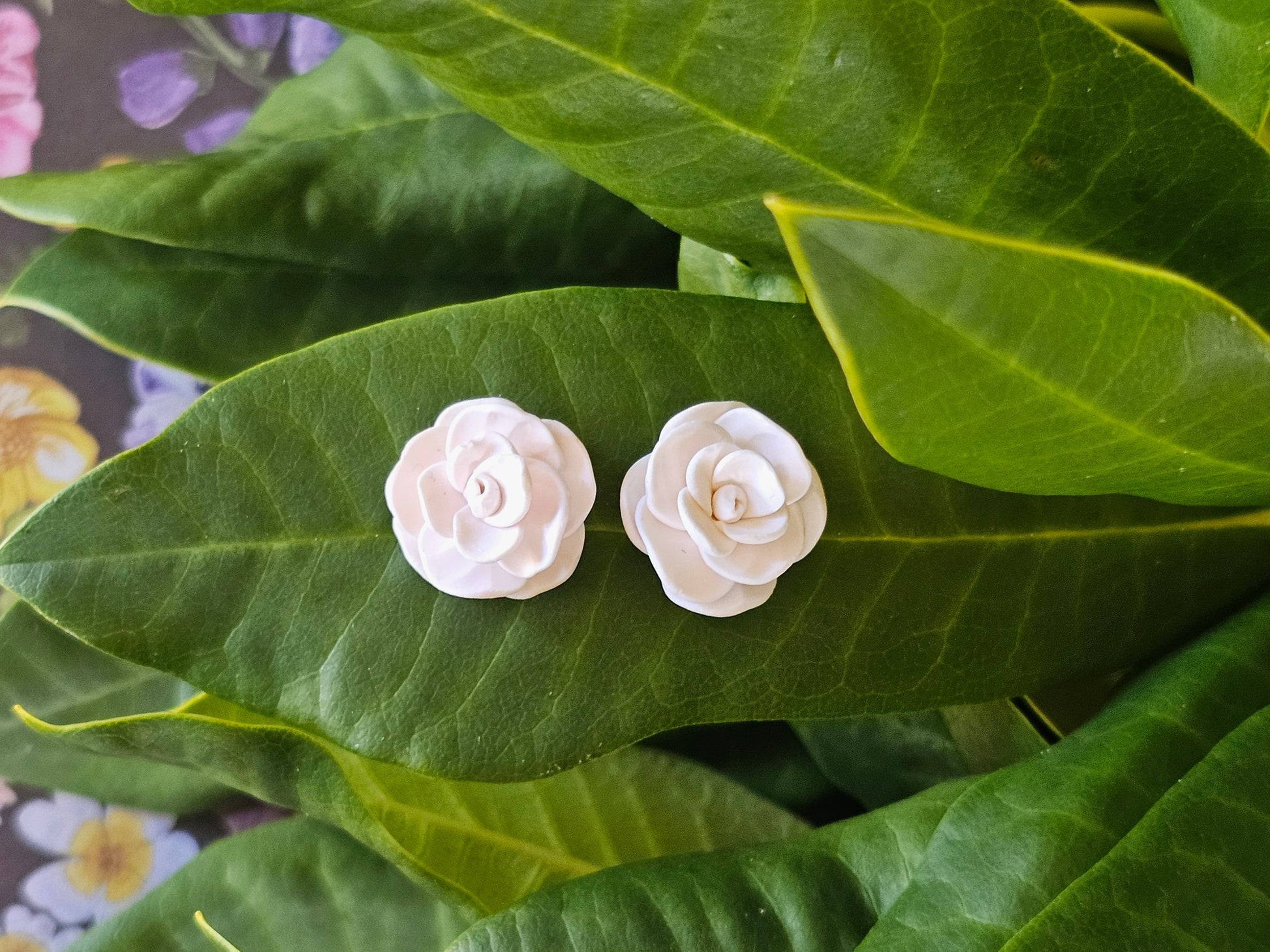 Add to your accessory collection with these handcrafted polymer clay Camellia earrings. Each bloom is sculpted petal by petal, capturing the graceful form and natural beauty of the Camellia. The result is a refined statement piece that blends artistry, durability, and timeless charm.