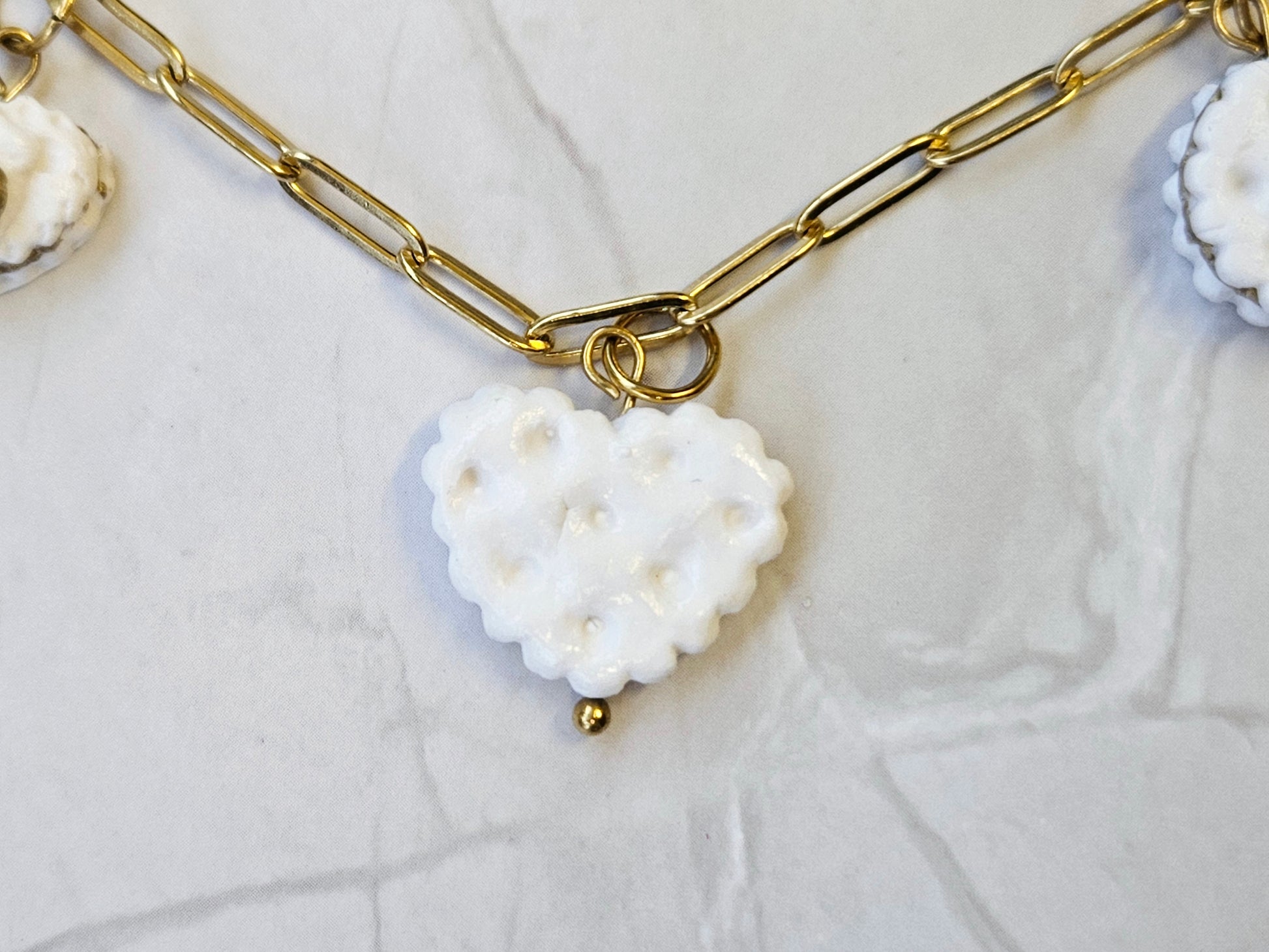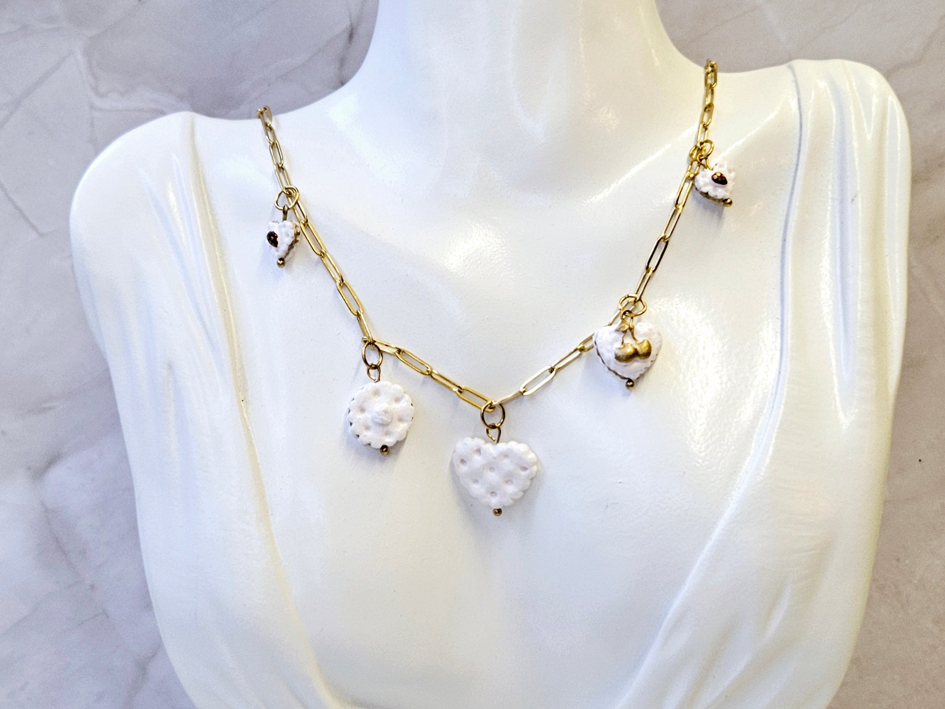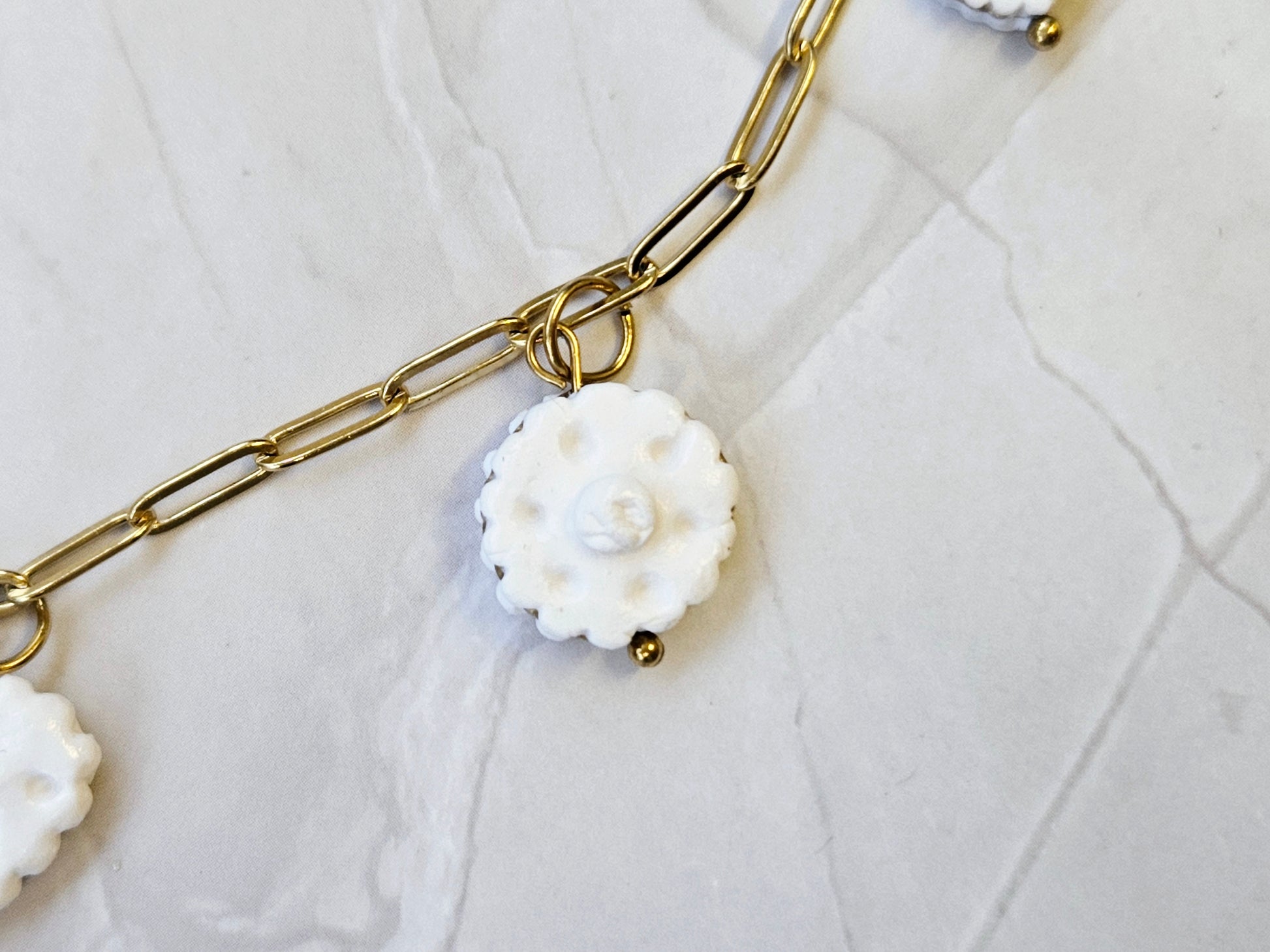 - Made with high-quality polymer clay and fade-resistant, gold-coated stainless steel chain