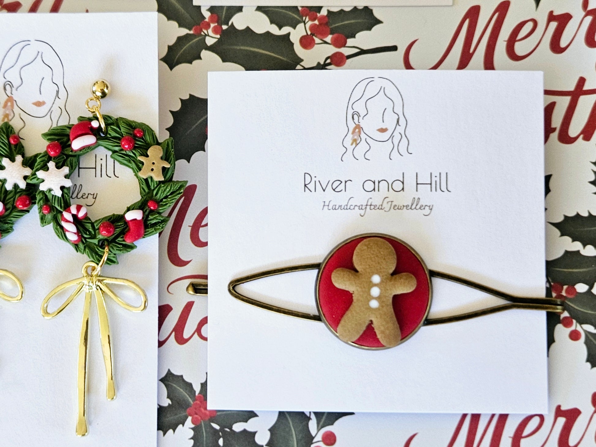 Our Christmas Collection has a range of festive earrings, all handmade in New Zealand using polymer clay. From fun gingerbread houses to a traditional wreath hoops there's something for everyone.