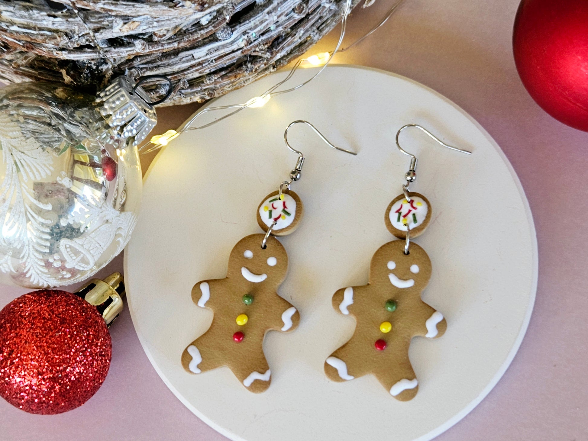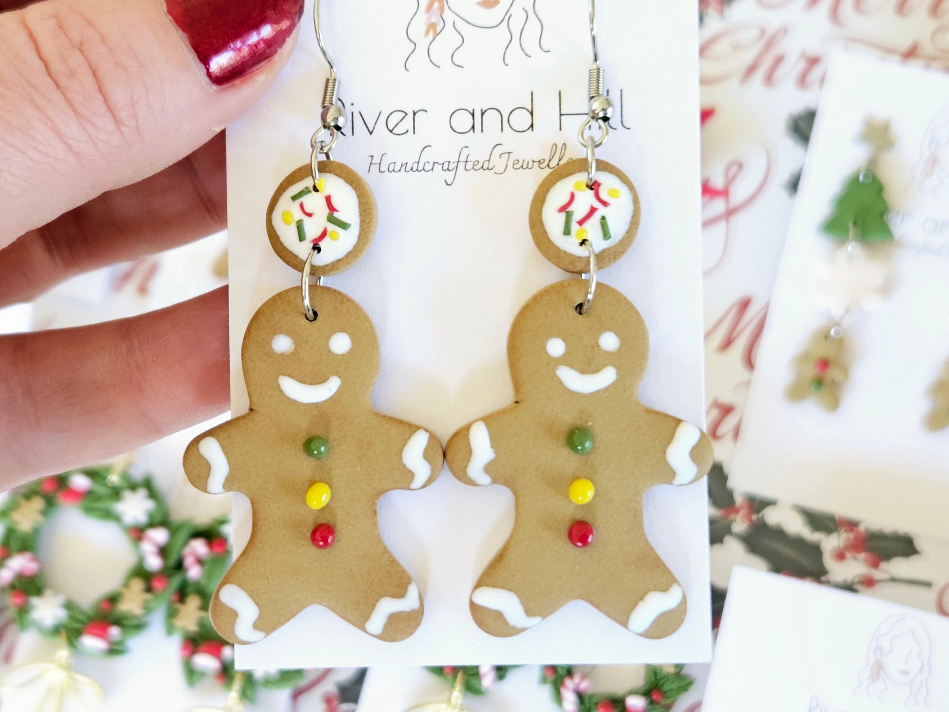 Our Christmas Collection has a range of festive earrings, all handmade in New Zealand using polymer clay. From fun gingerbread houses to a traditional wreath hoops there's something for everyone.