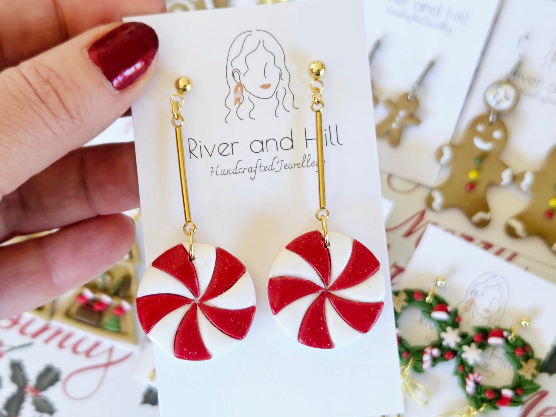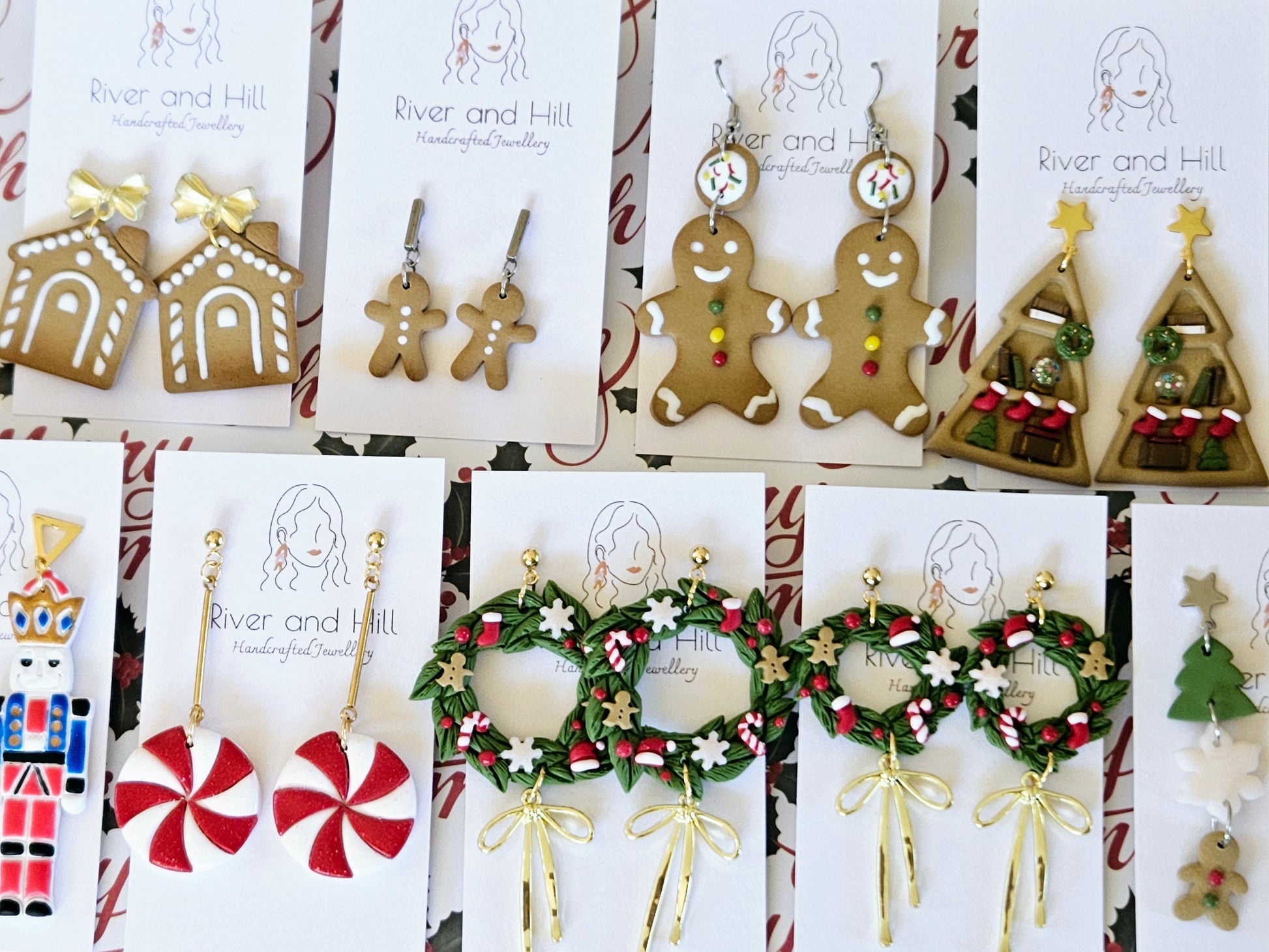 Our Christmas Collection has a range of festive earrings, all handmade in New Zealand using polymer clay. From fun gingerbread houses to a traditional wreath hoops there's something for everyone.