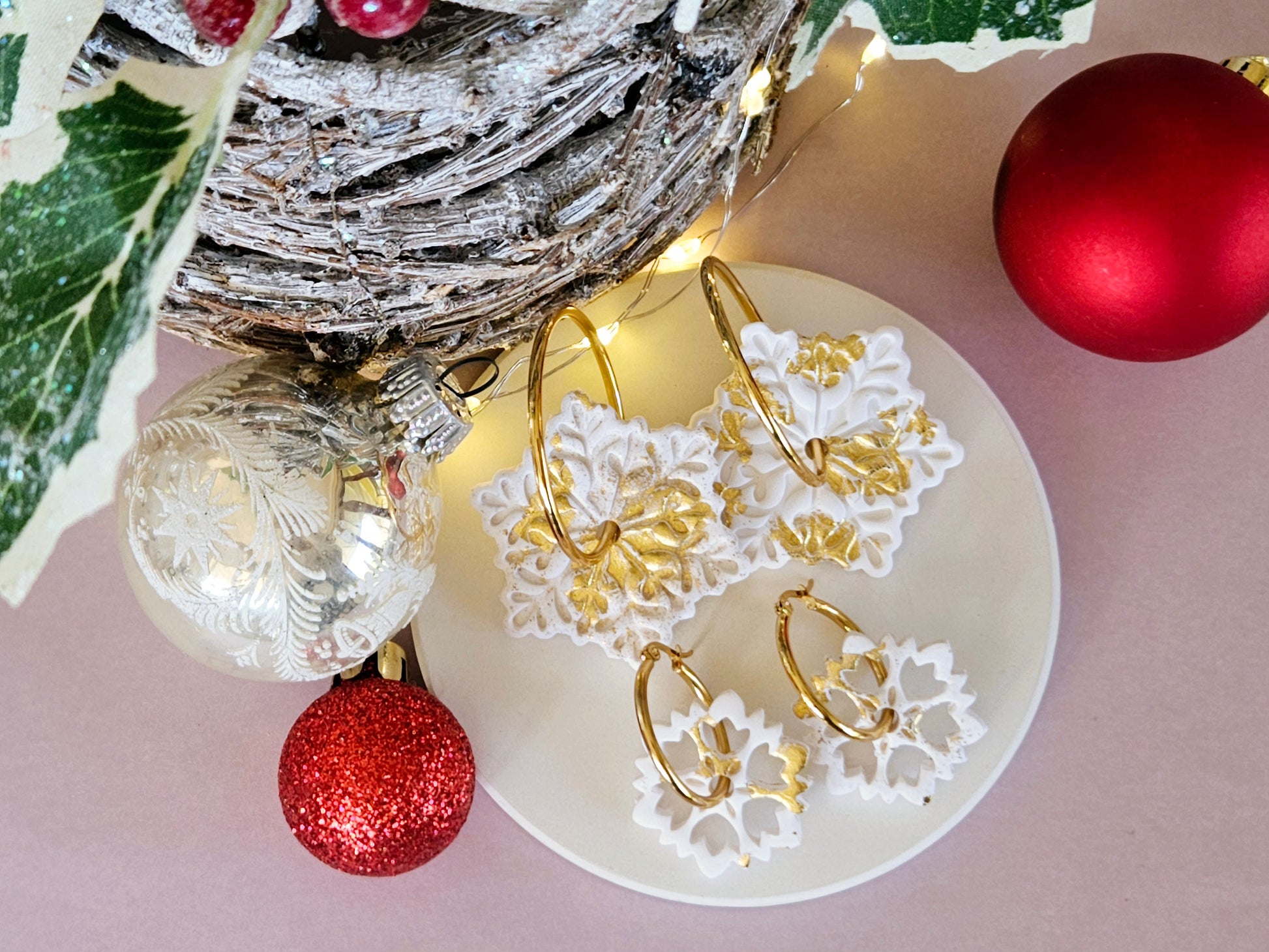Our Christmas Collection has a range of festive earrings, all handmade in New Zealand using polymer clay. From fun gingerbread houses to a traditional wreath hoops there's something for everyone.