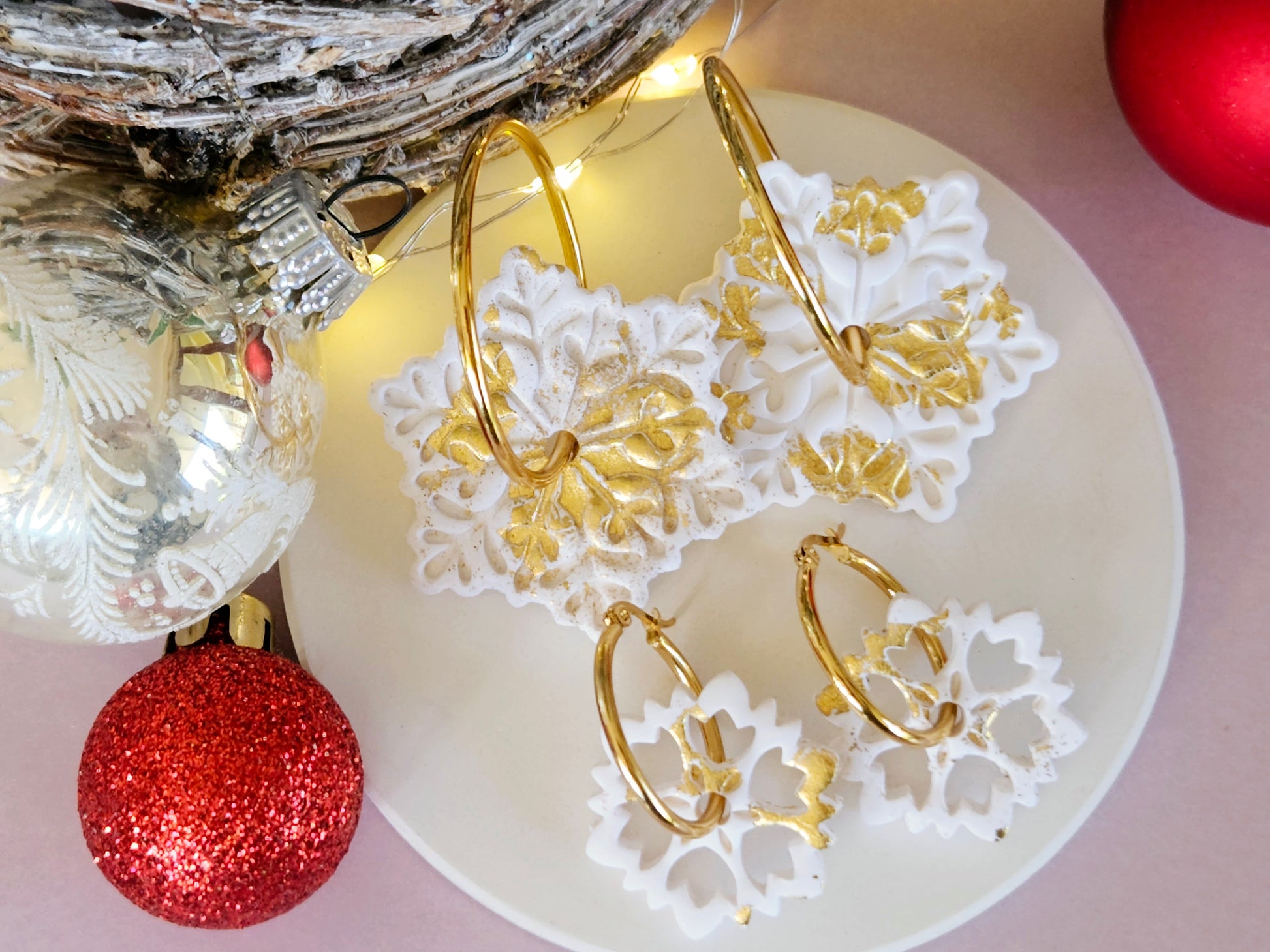 Christmas Snowflake Large Hoops