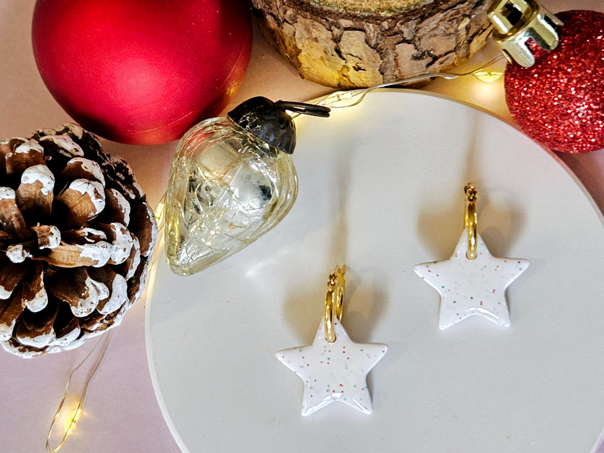 Our Christmas Collection has a range of festive earrings, all handmade in New Zealand using polymer clay. From fun gingerbread houses to a traditional wreath hoops there's something for everyone.