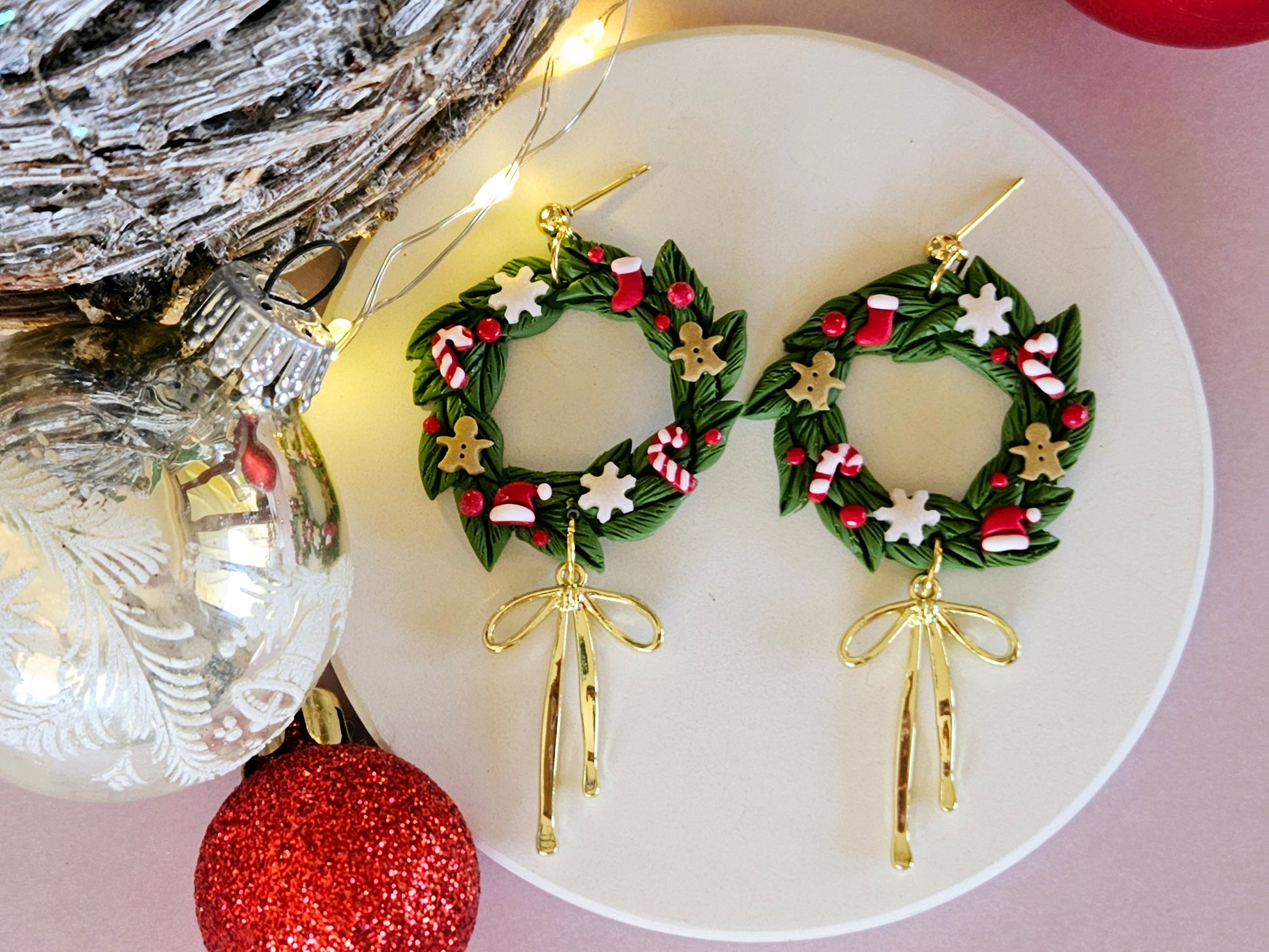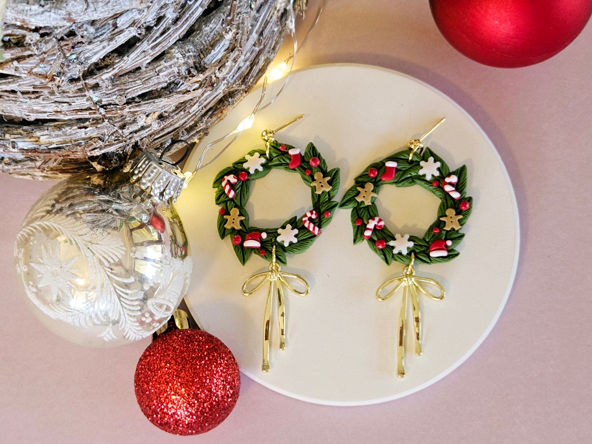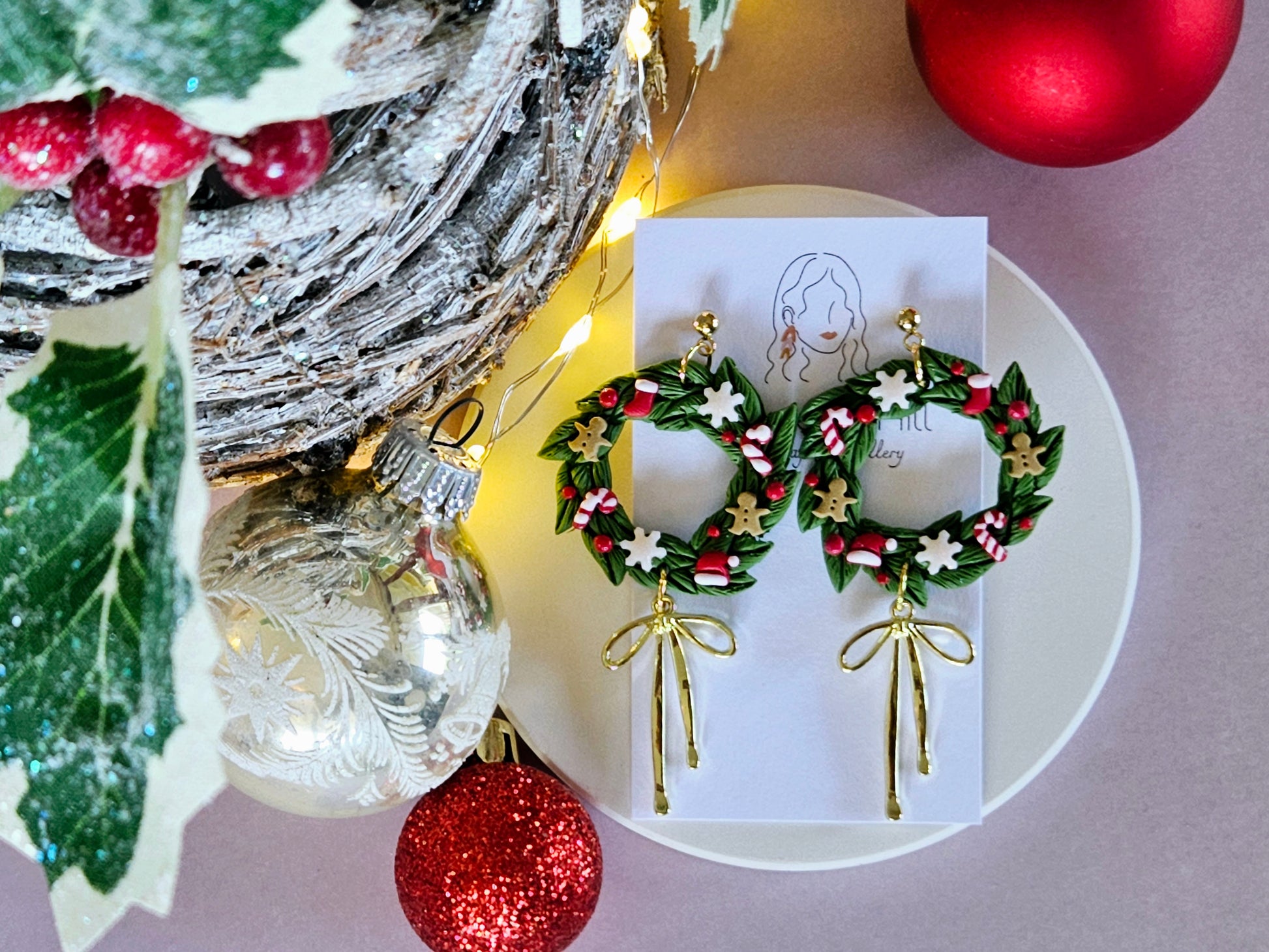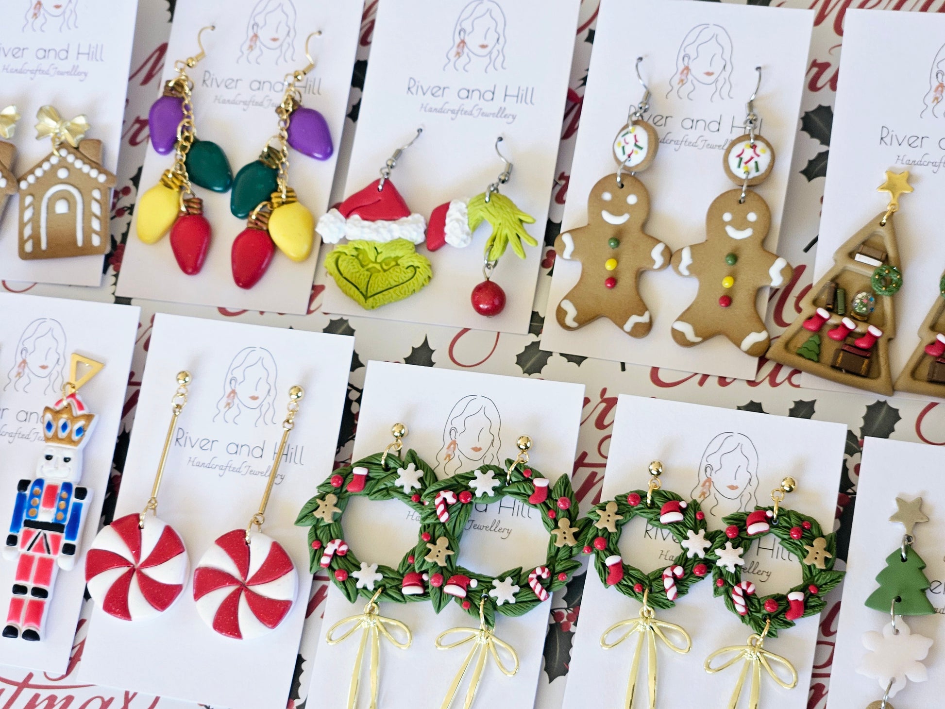Our Christmas Collection has a range of festive earrings, all handmade in New Zealand using polymer clay. From fun gingerbread houses to a traditional wreath hoops there's something for everyone.