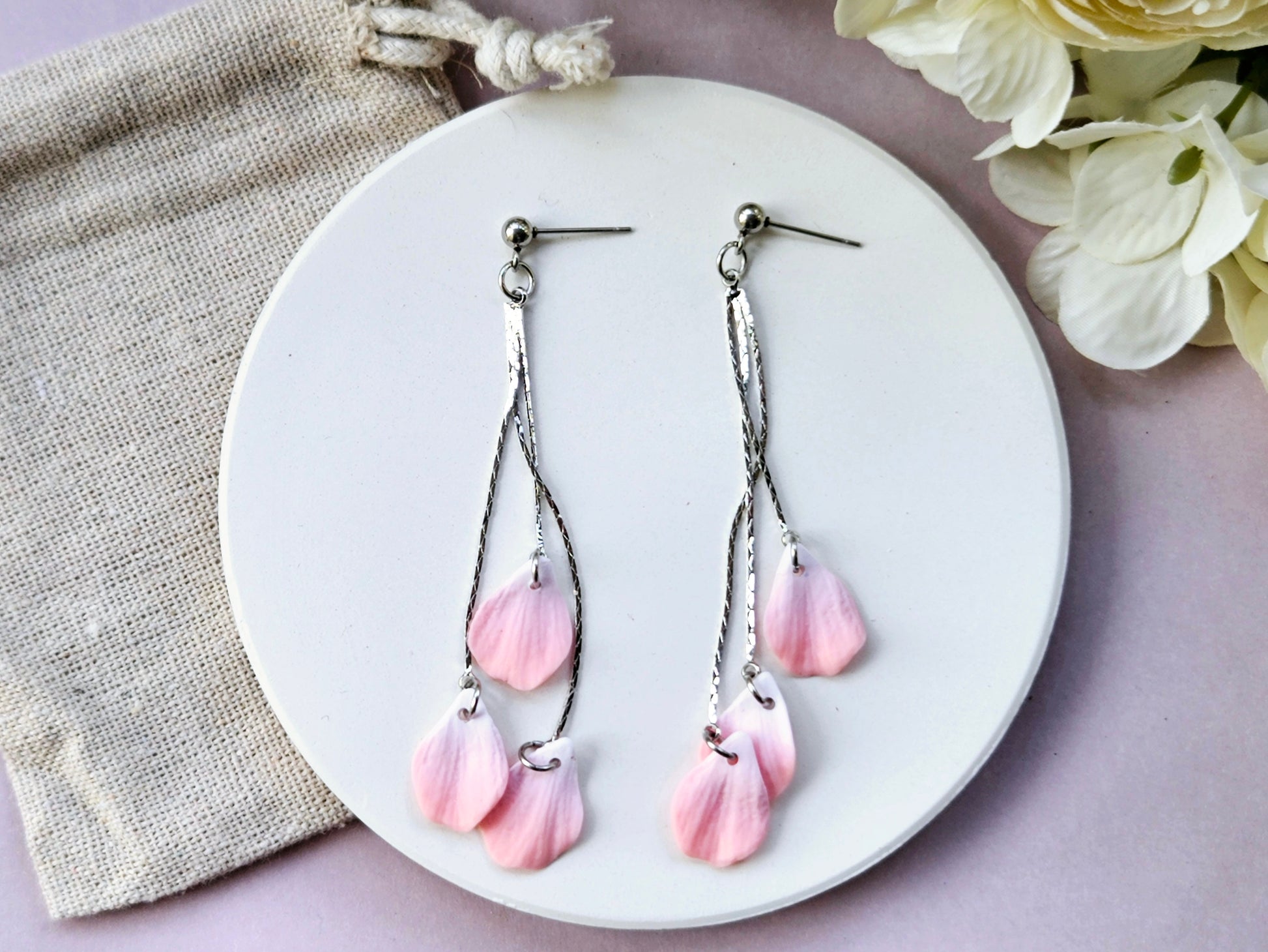 Add a touch of whimsical elegance to your look with our Petal Drop Earrings. These earrings feature handmade detailed petals that capture the beauty of blooming flowers, perfect for adding a pop of colour and charm to any outfit.