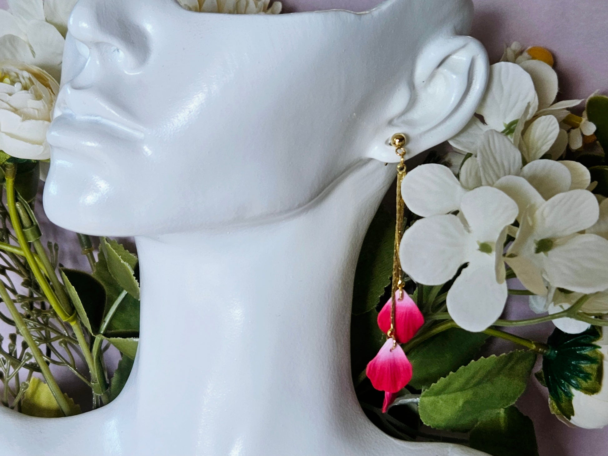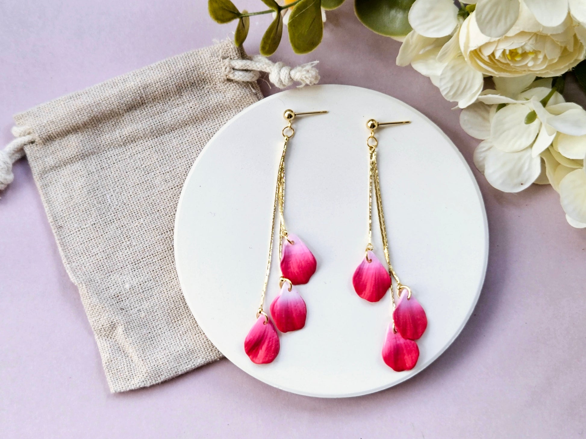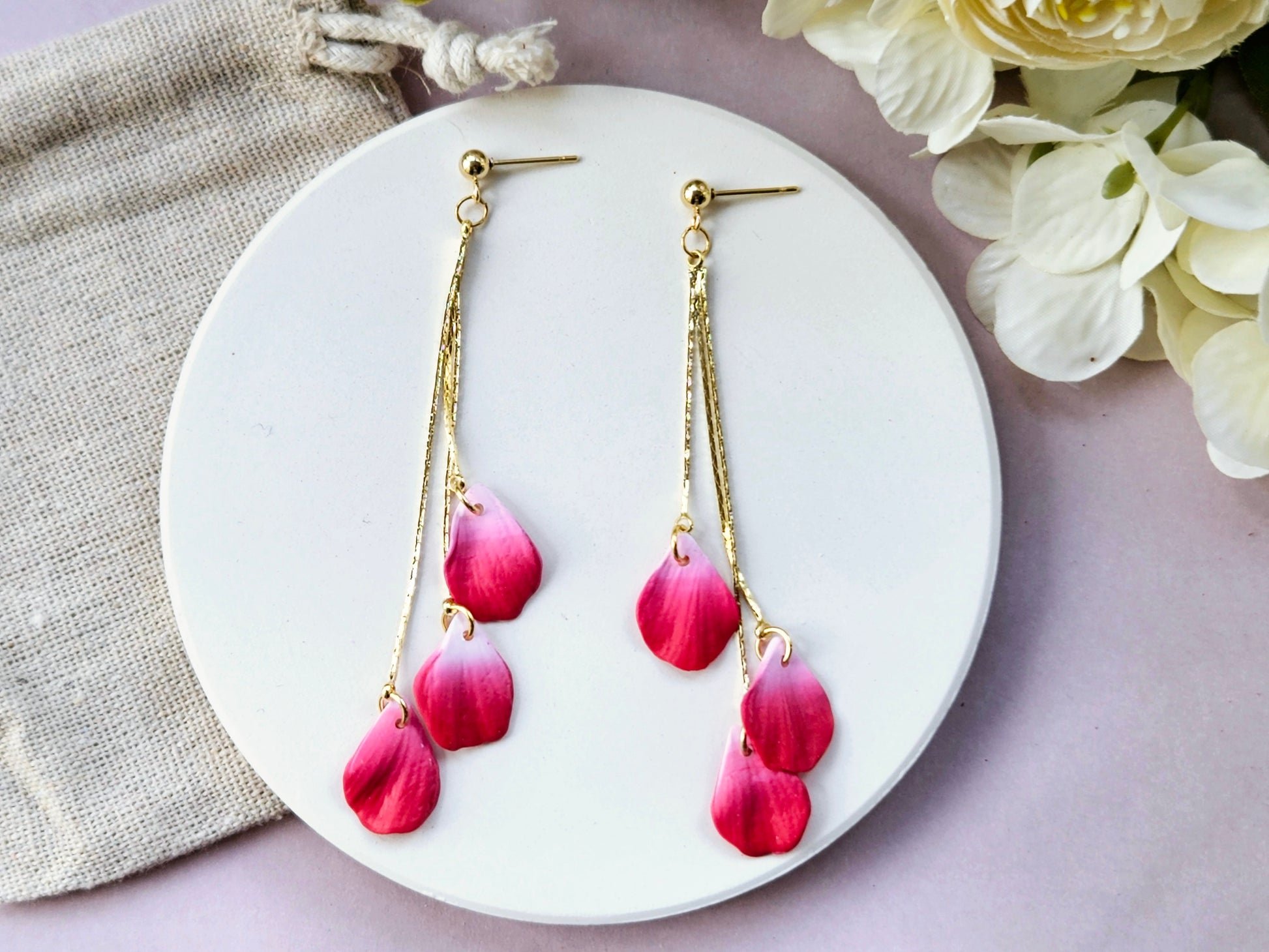 Add a touch of whimsical elegance to your look with our Petal Drop Earrings. These earrings feature handmade detailed petals that capture the beauty of blooming flowers, perfect for adding a pop of colour and charm to any outfit.