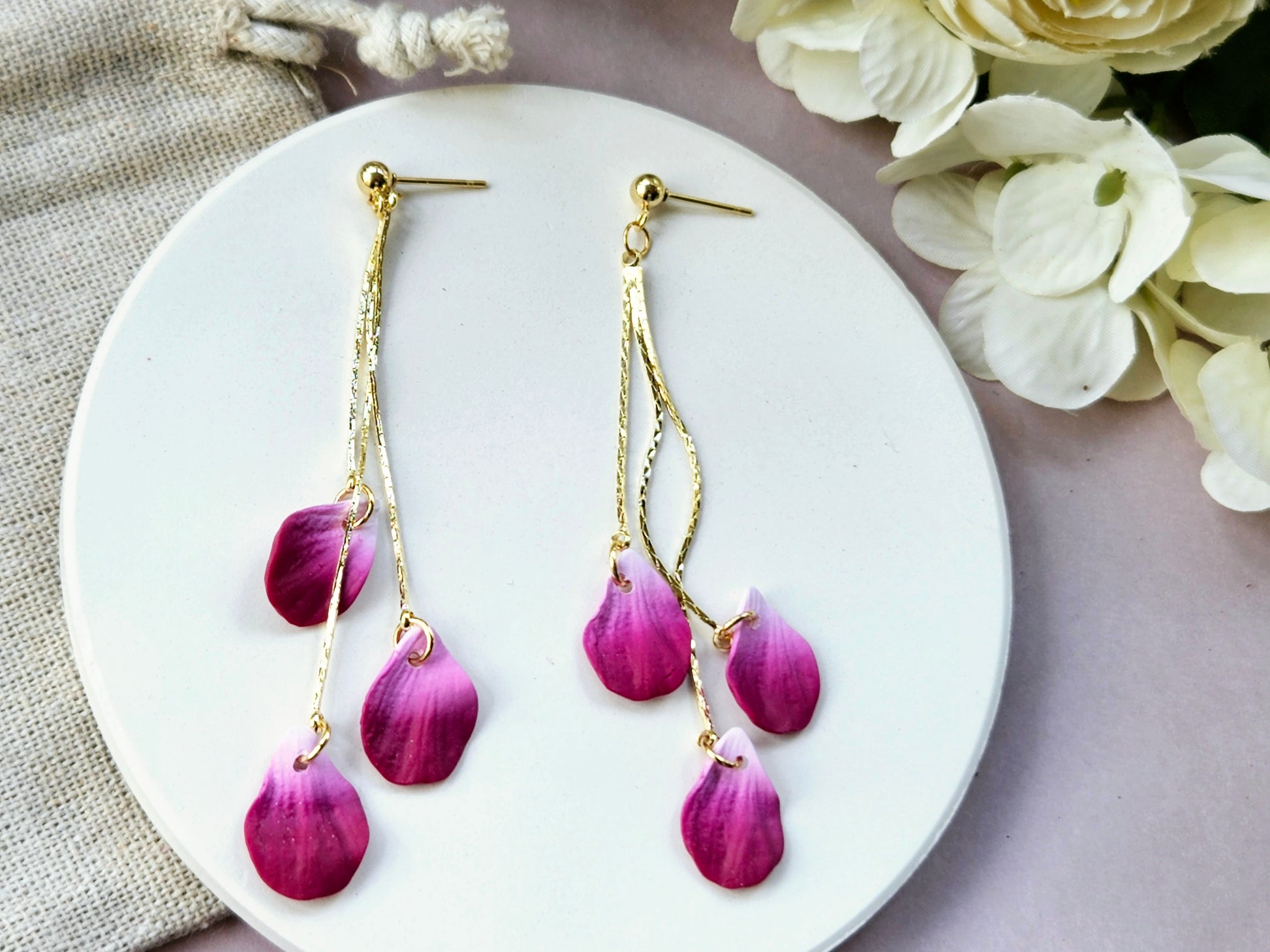 Add a touch of whimsical elegance to your look with our Petal Drop Earrings. These earrings feature handmade detailed petals that capture the beauty of blooming flowers, perfect for adding a pop of colour and charm to any outfit.