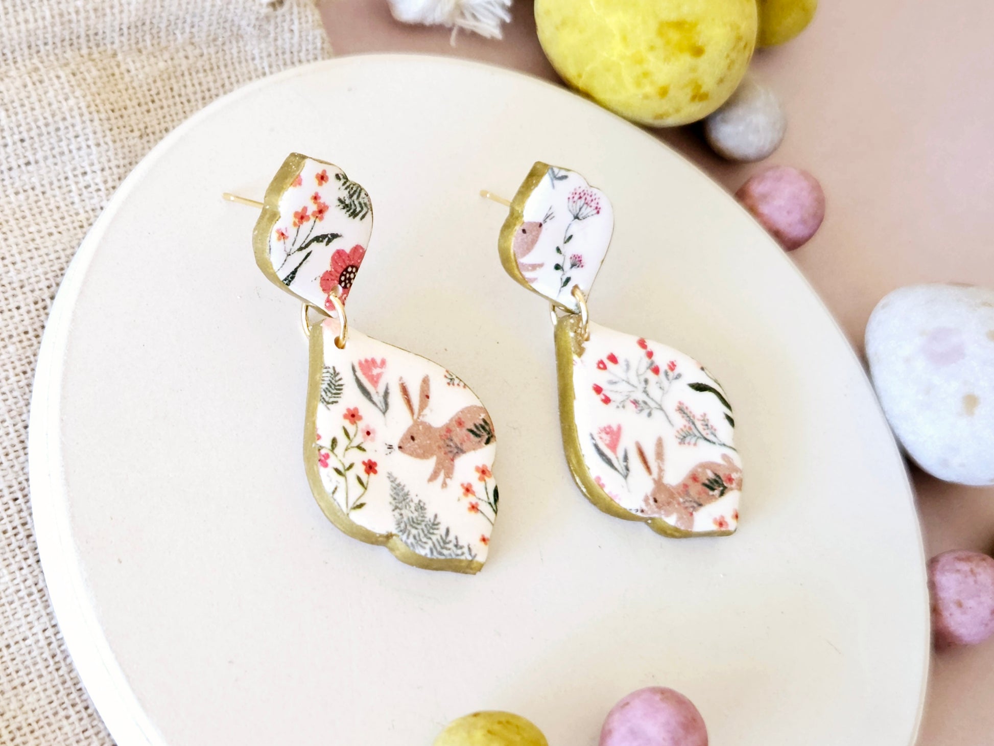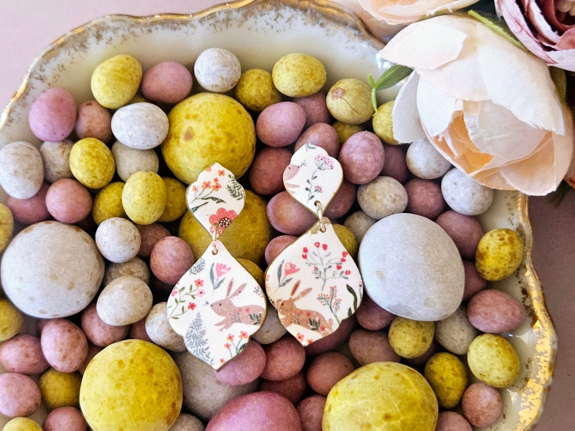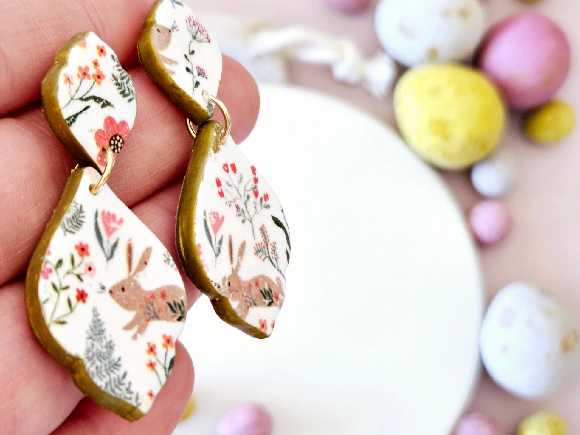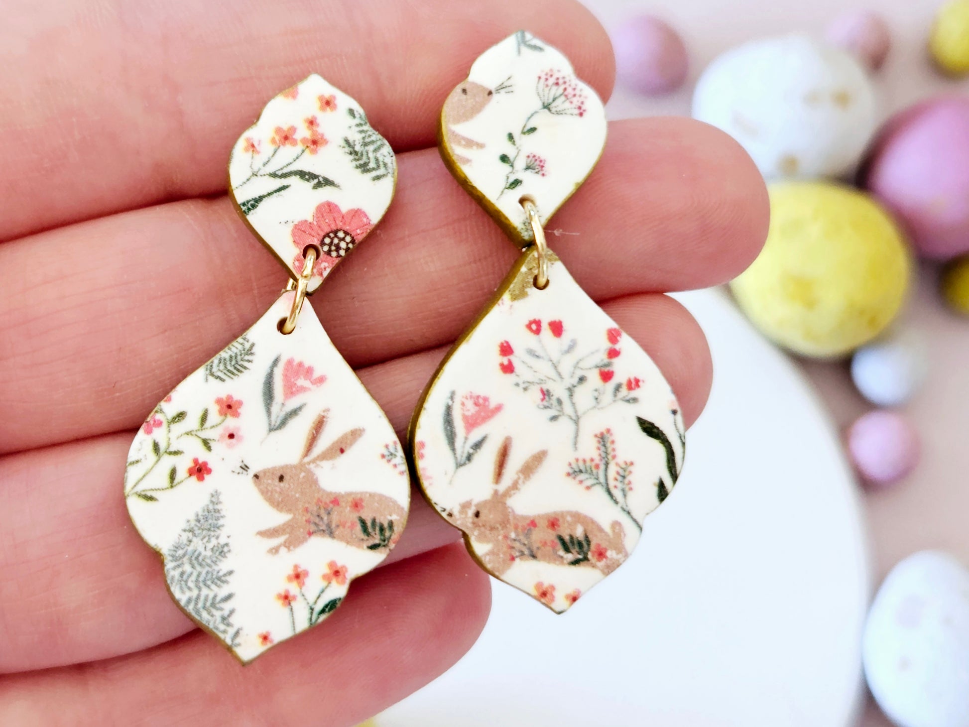 Easter Rabbit Print Droplet Earrings