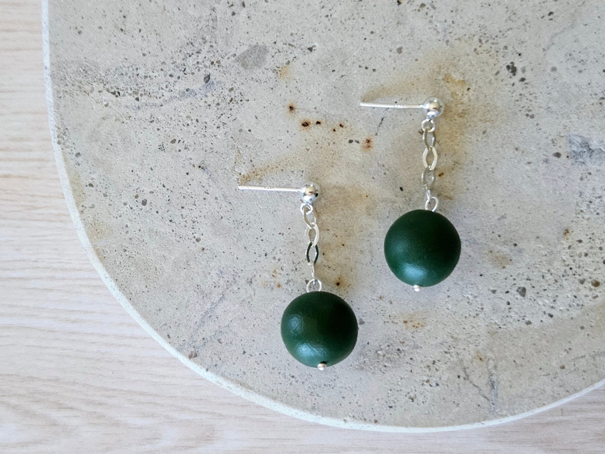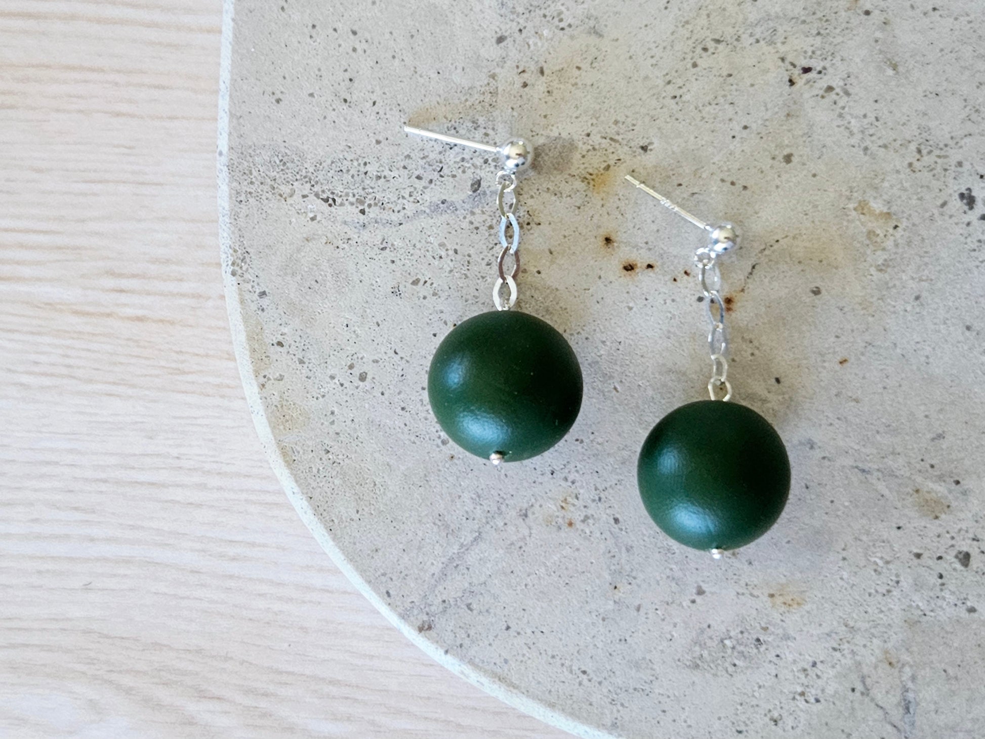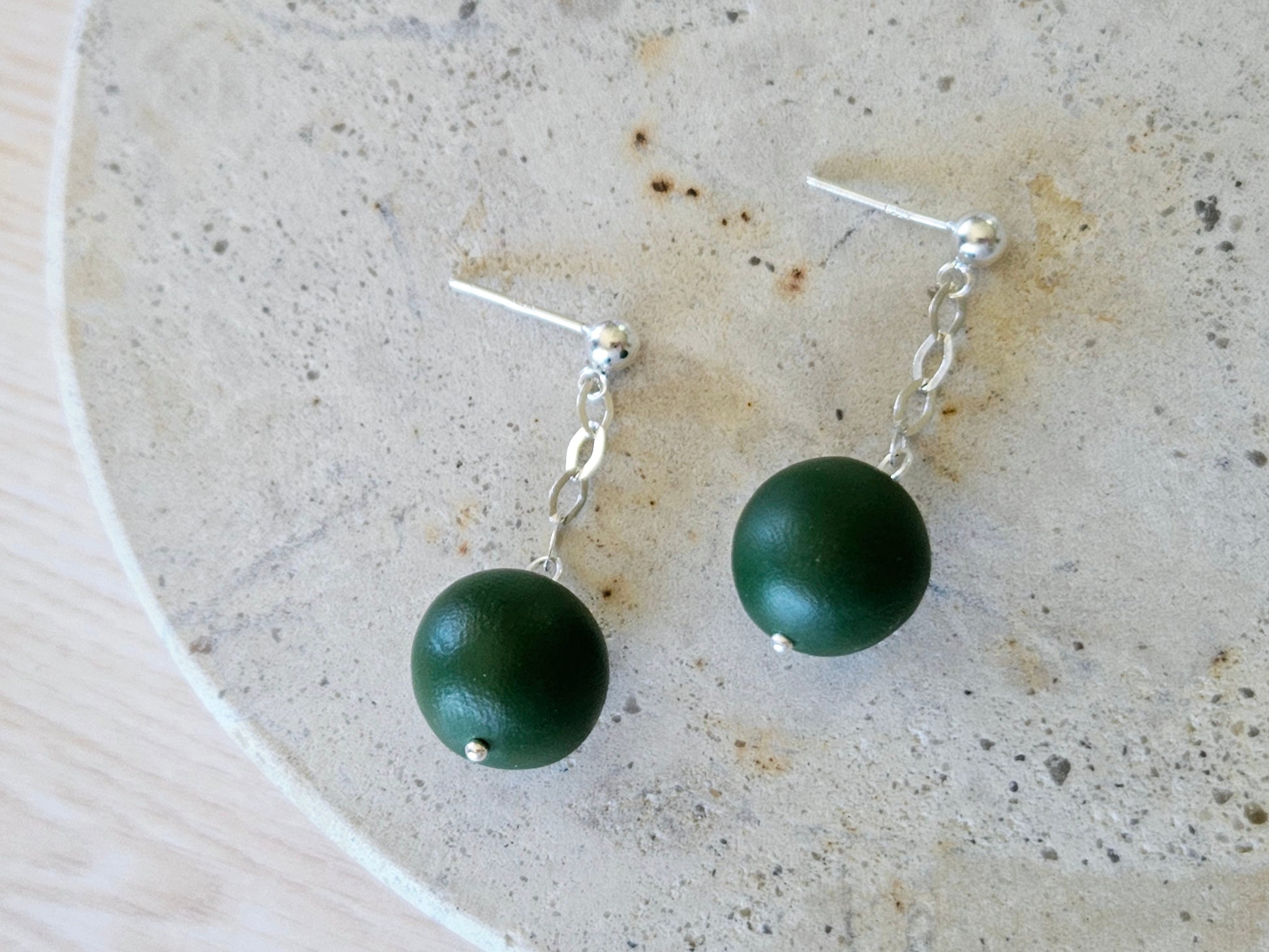 Contemporary Hand-rolled Bead Sterling Silver Earrings Green