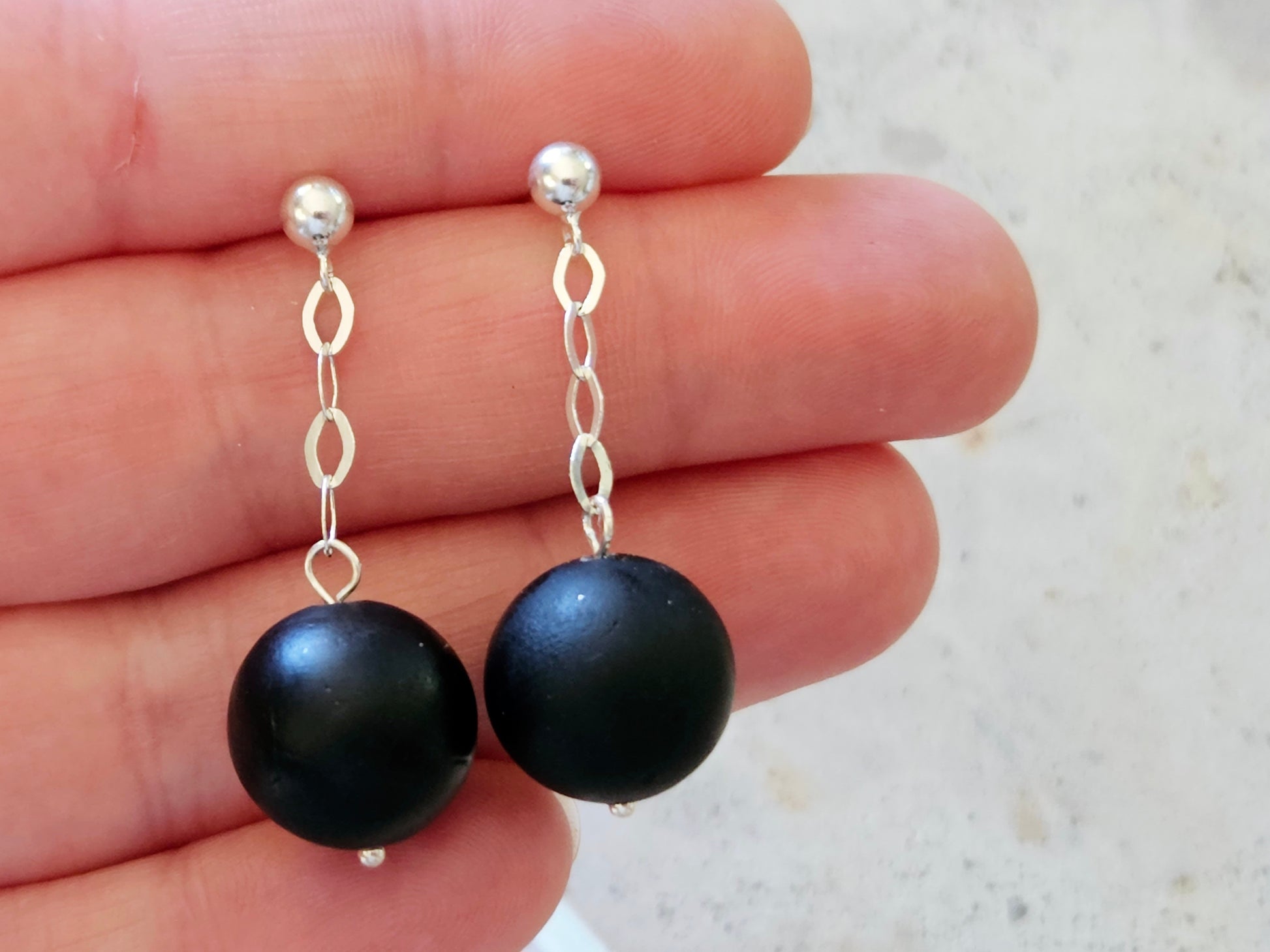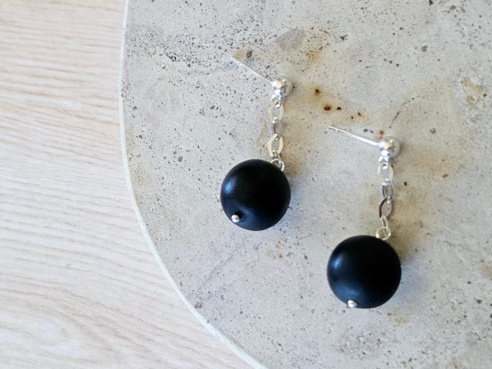 Contemporary Hand-rolled Bead Sterling Silver Earrings Black