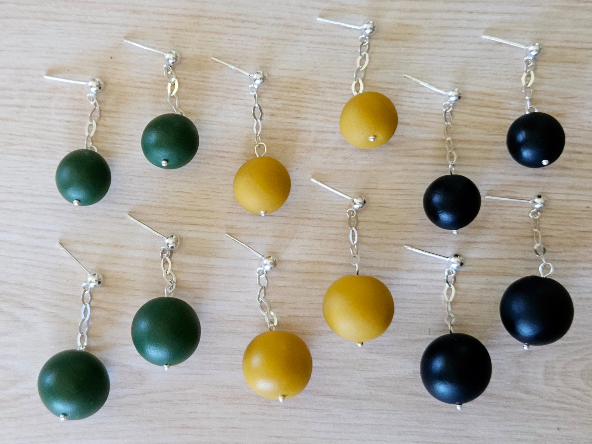 Enhance your outfits with this stunning hand-rolled polymer clay earrings. Each bead is handmade individually, making each earring set unique to you.