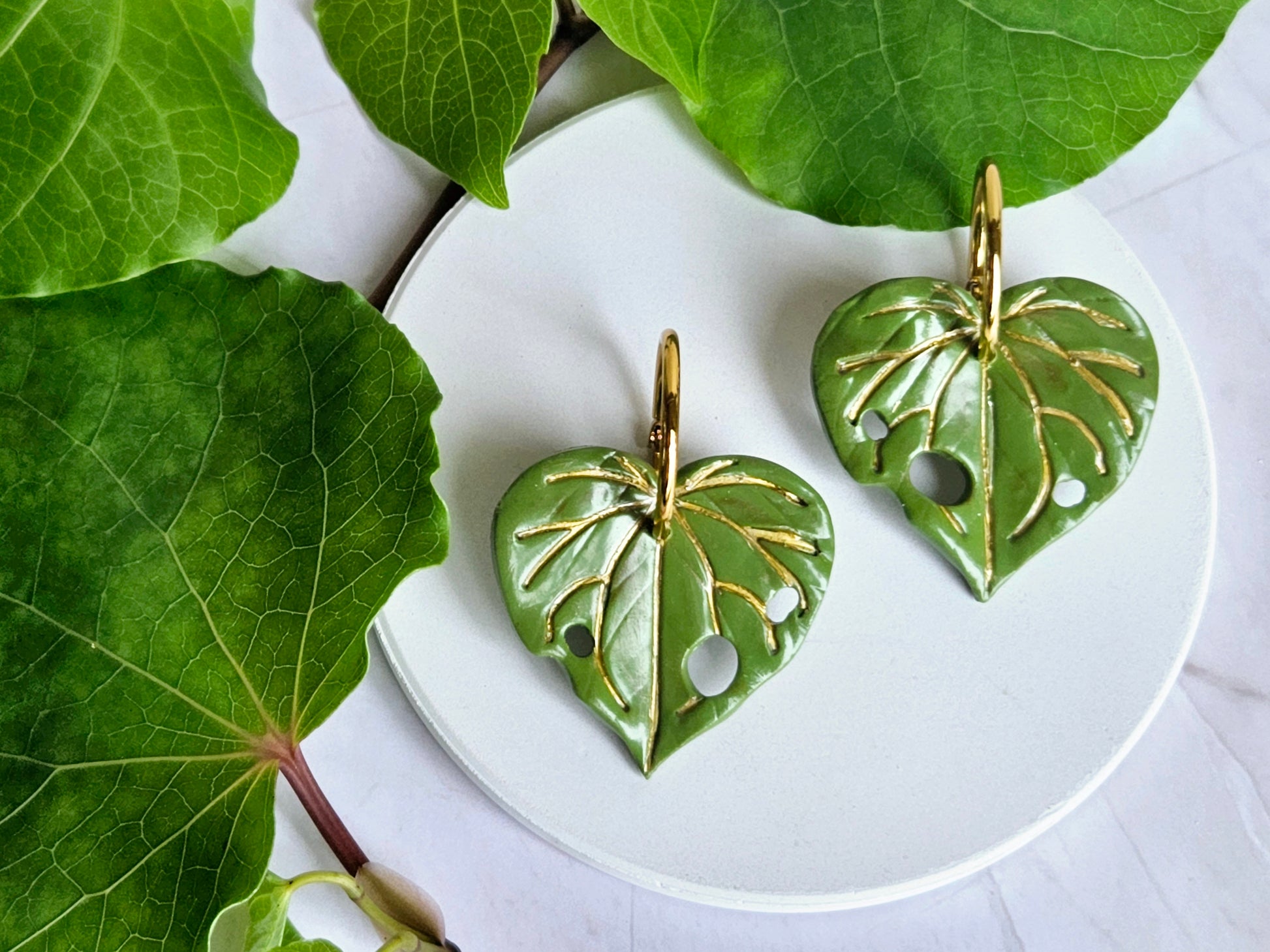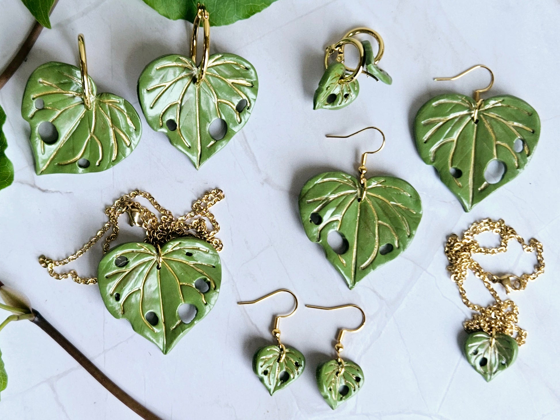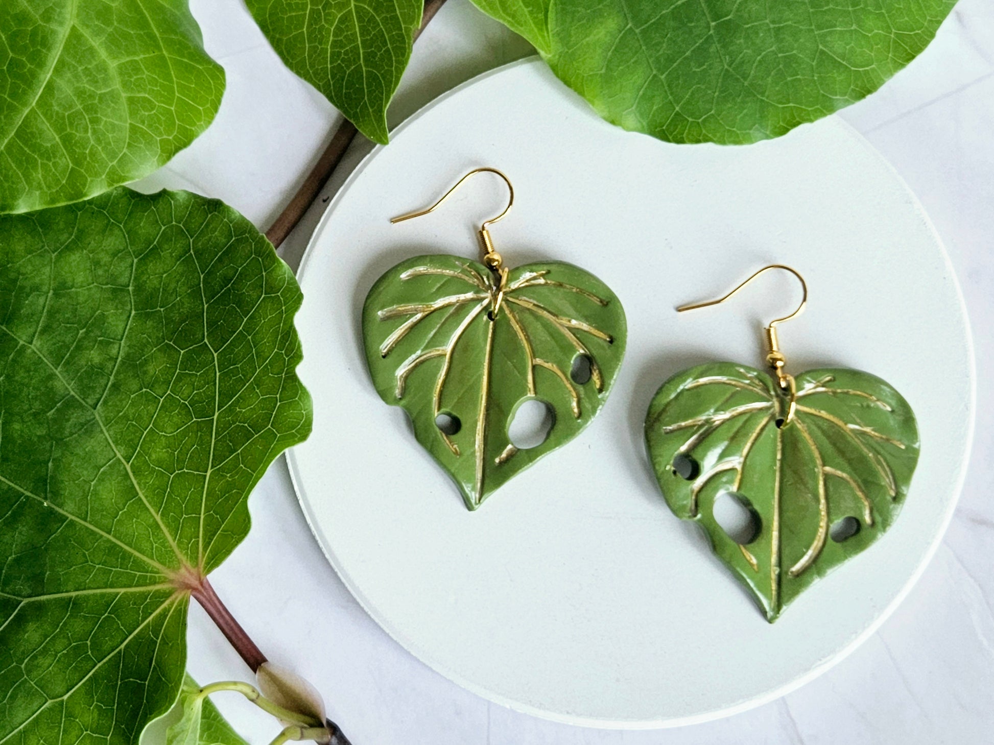 These beautiful kawakawa-inspired earrings are a tribute to New Zealand’s native flora, carefully handcrafted with attention to detail. Each pair is sculpted from high-quality polymer clay, delicately shaped to reflect the natural beauty of kawakawa leaves. Intricate textures and color gradients are enhanced using soft pastels and acrylic paint, bringing an organic, lifelike feel to every piece.