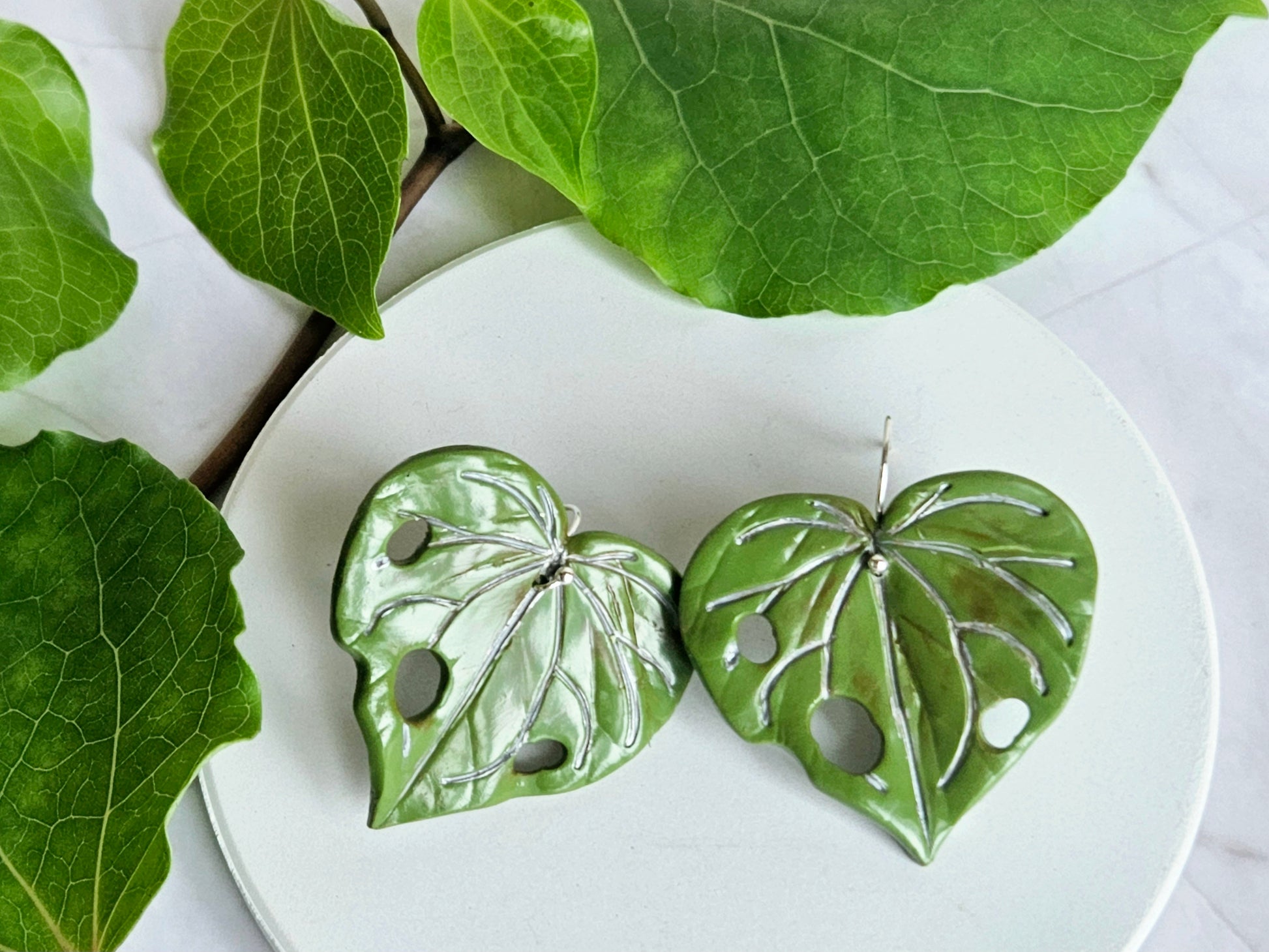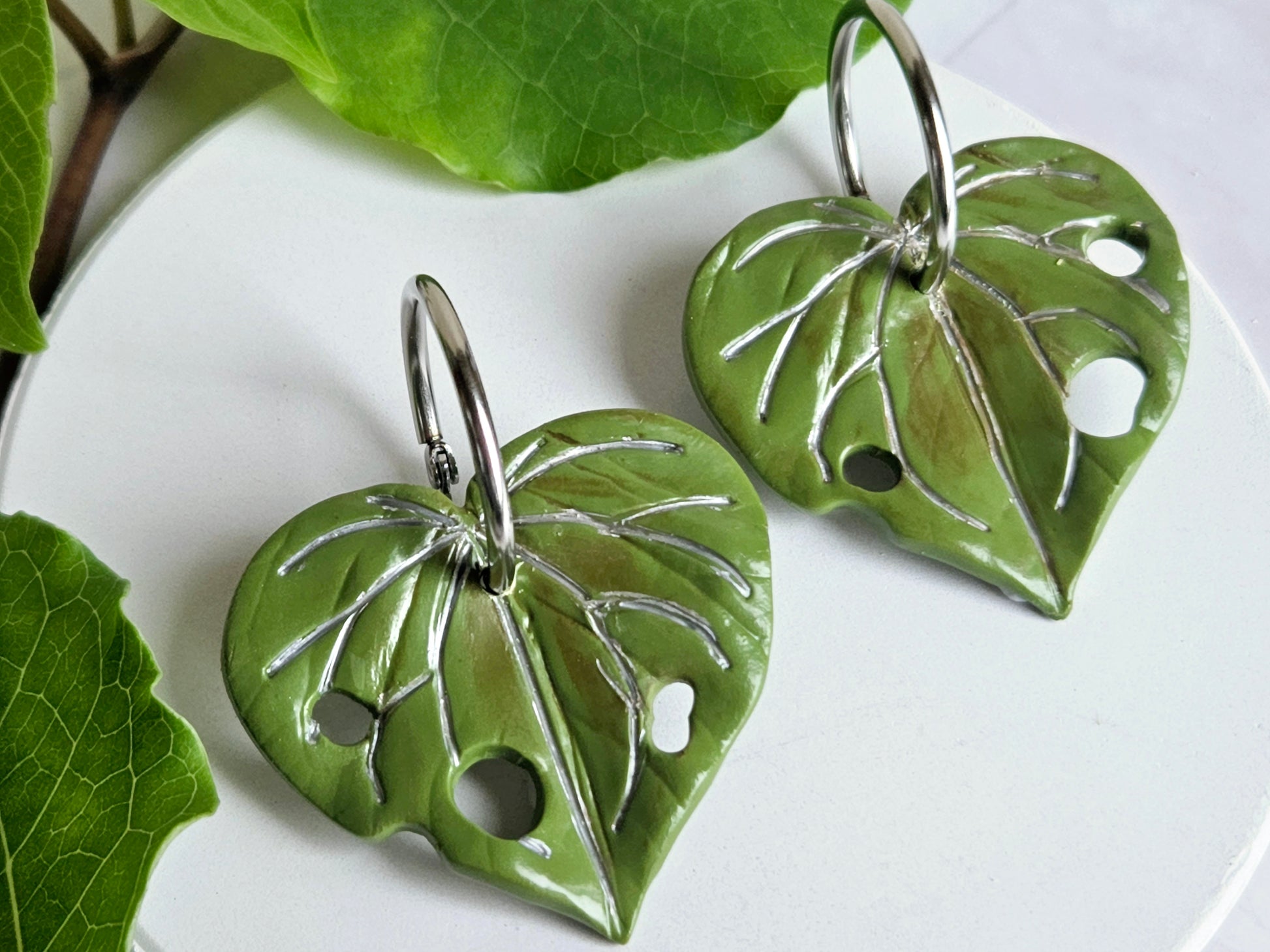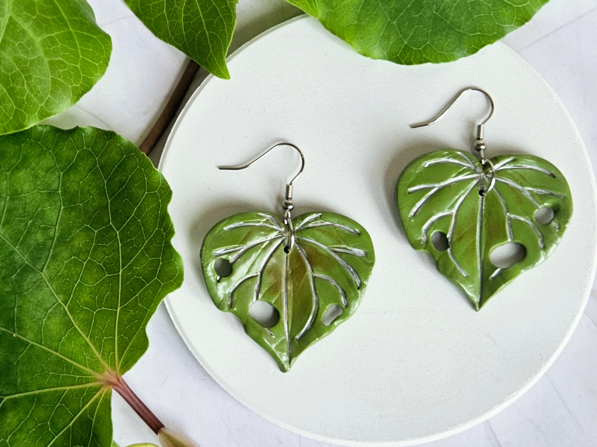 These beautiful kawakawa-inspired earrings are a tribute to New Zealand’s native flora, carefully handcrafted with attention to detail. Each pair is sculpted from high-quality polymer clay, delicately shaped to reflect the natural beauty of kawakawa leaves. Intricate textures and color gradients are enhanced using soft pastels and acrylic paint, bringing an organic, lifelike feel to every piece.