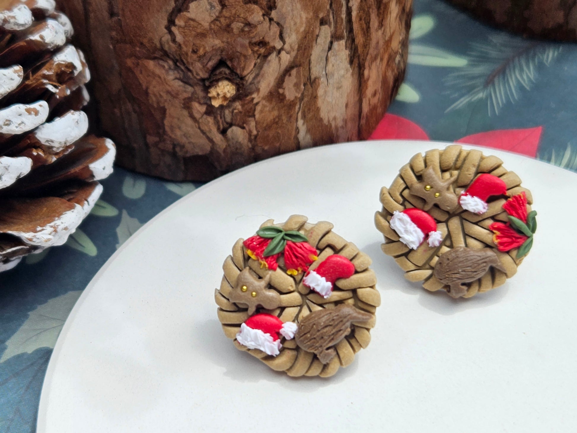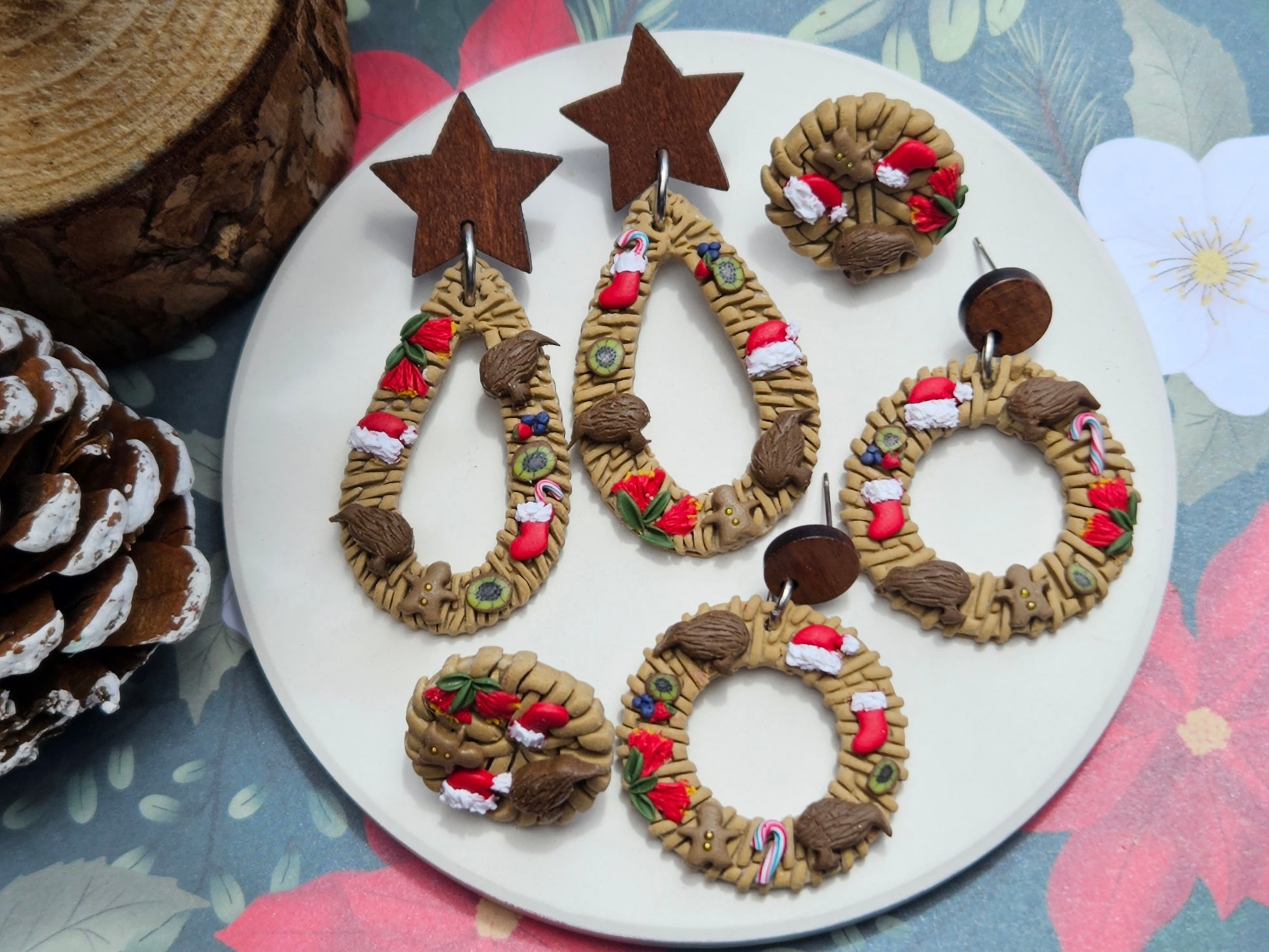 Our Christmas Collection has a range of festive earrings, all handmade in New Zealand using polymer clay. From fun gingerbread houses to a traditional wreath hoops there's something for everyone.