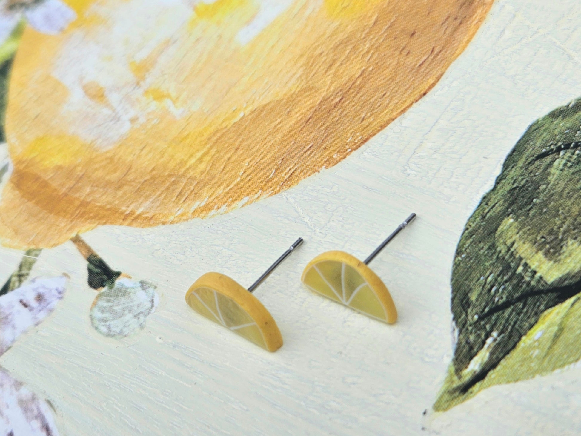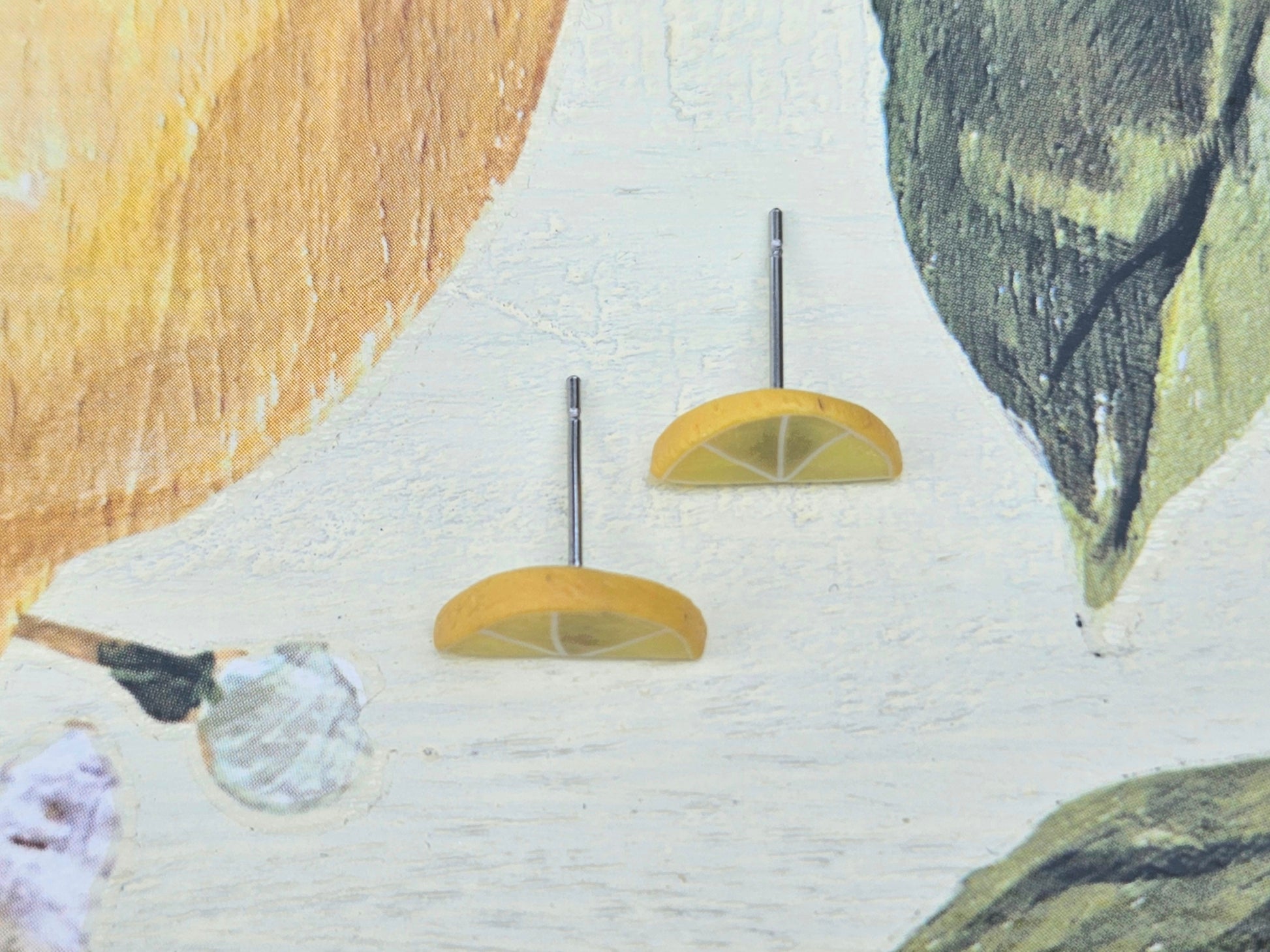 The lemon collection was made to add a little bit of fun and colour to your ears! These tiny lemons were handmade individually with polymer clay and the slices on the studs have a thin layer of resin to give them a juicy shine.