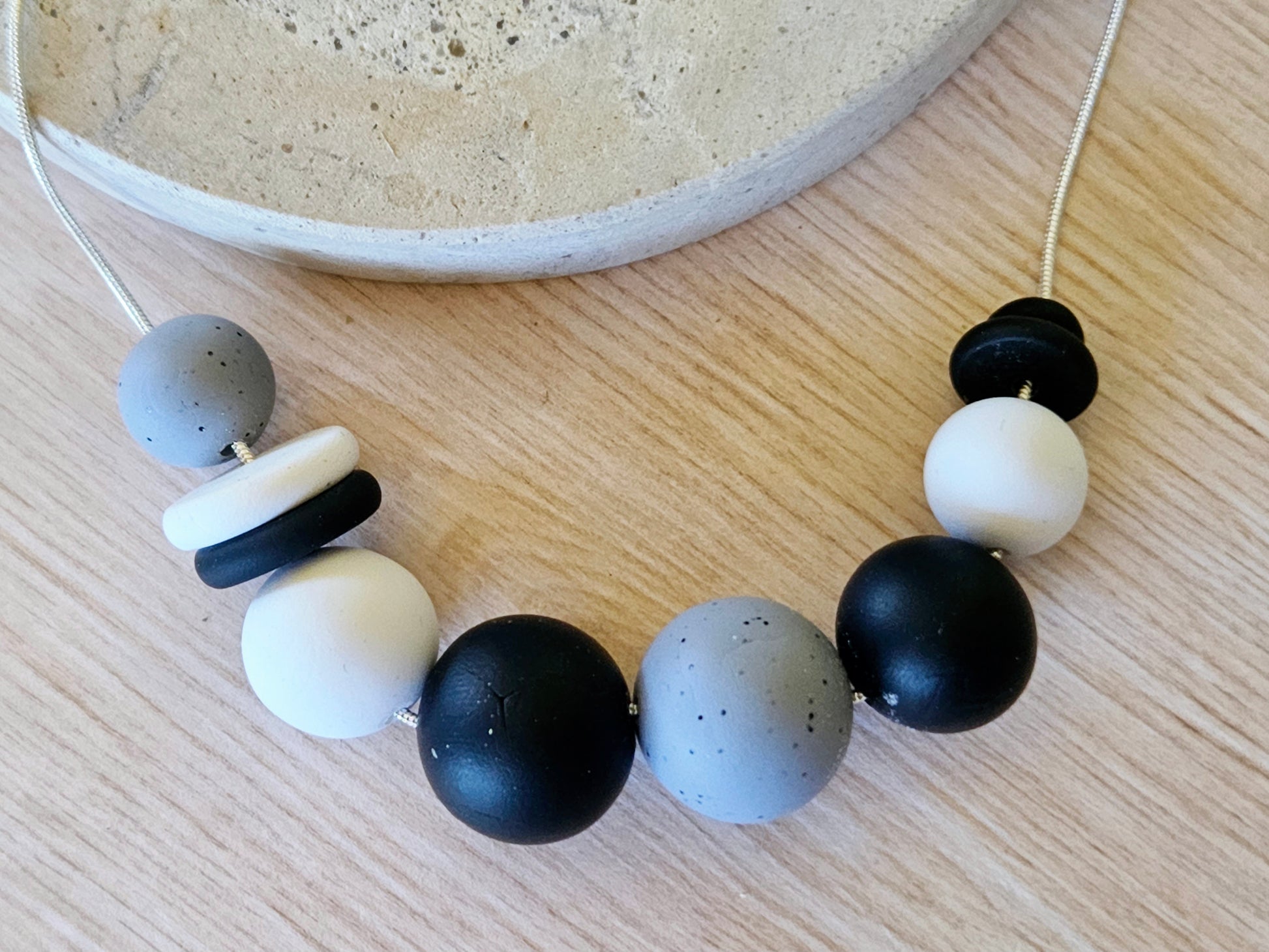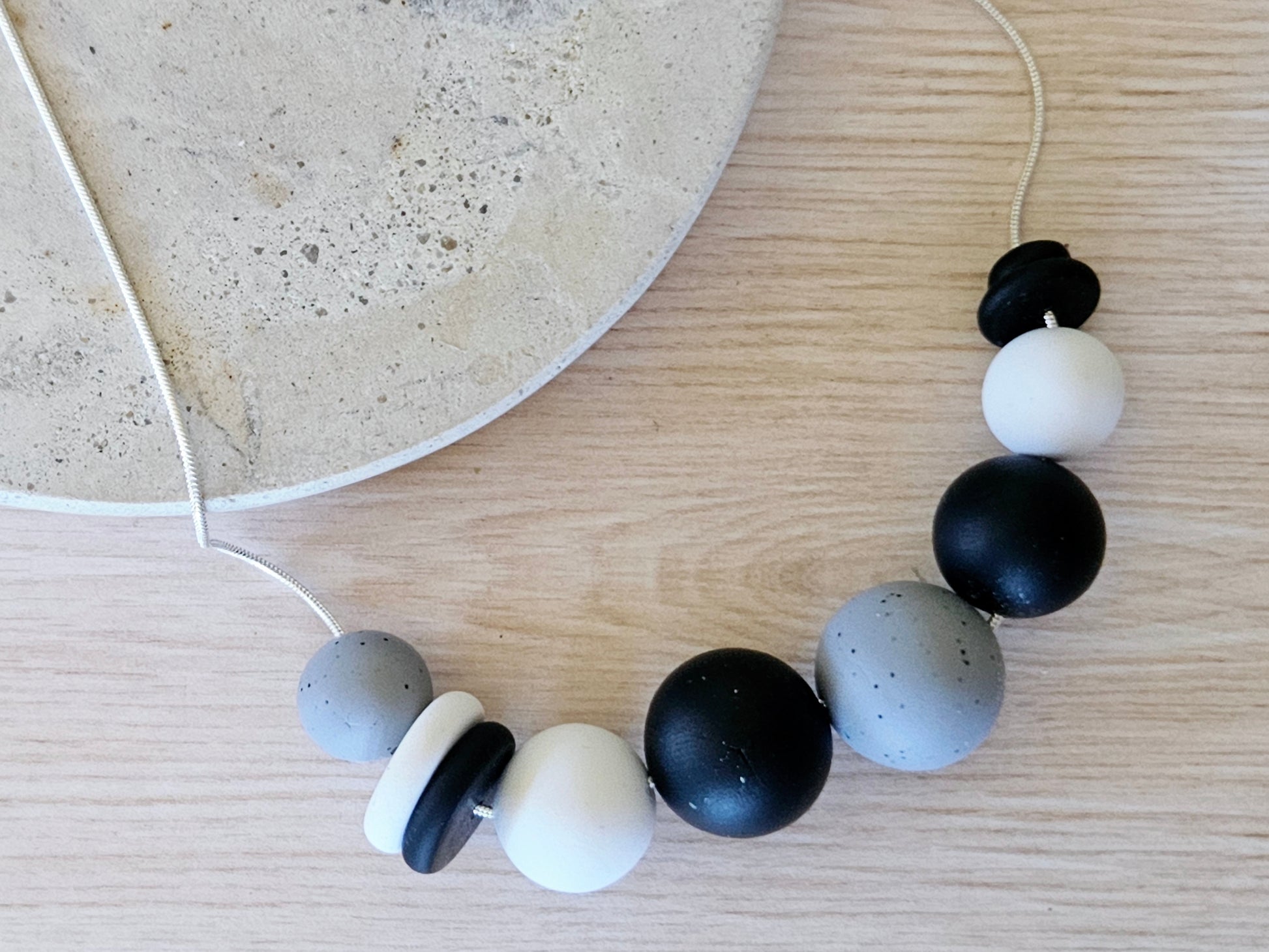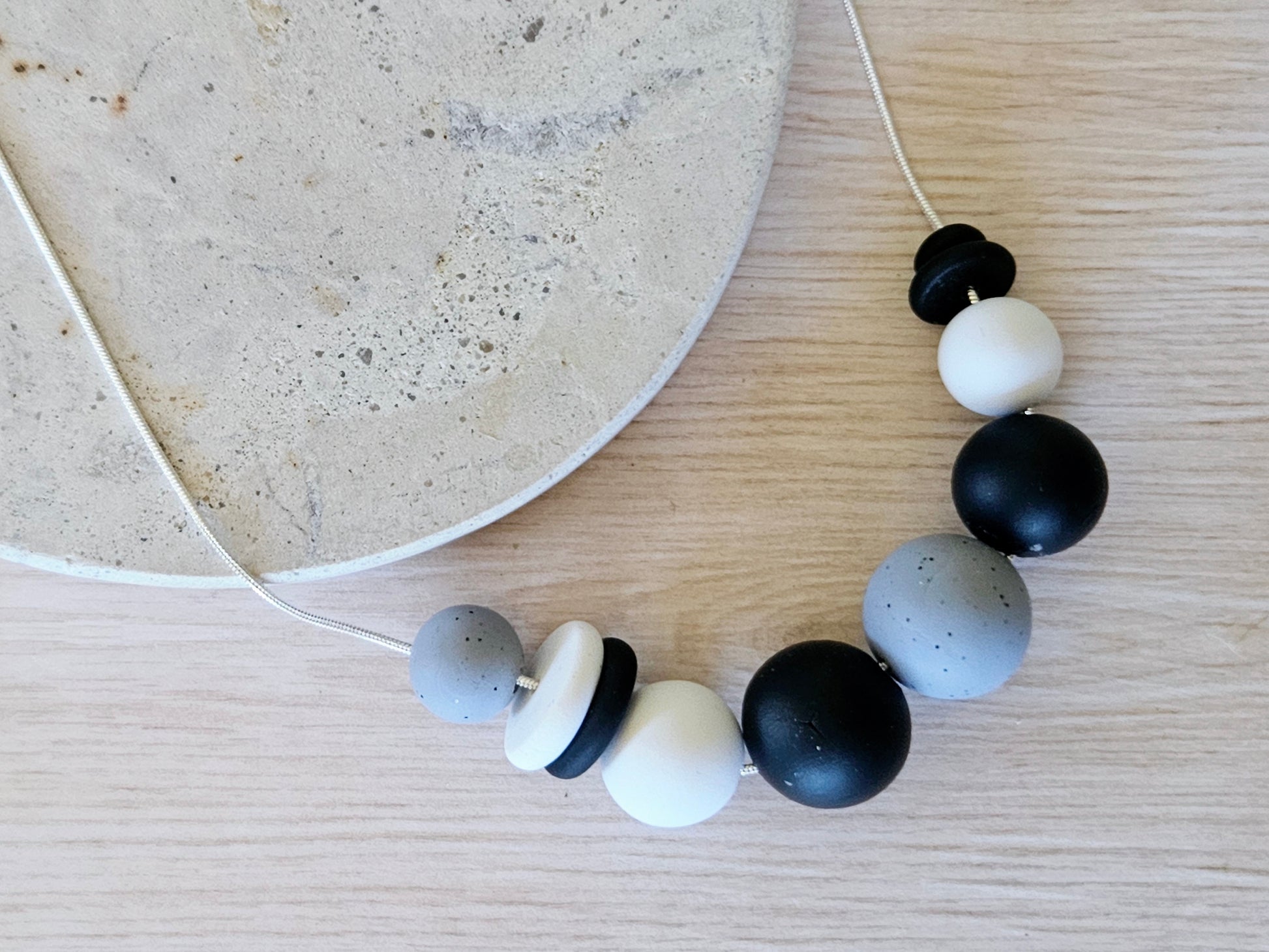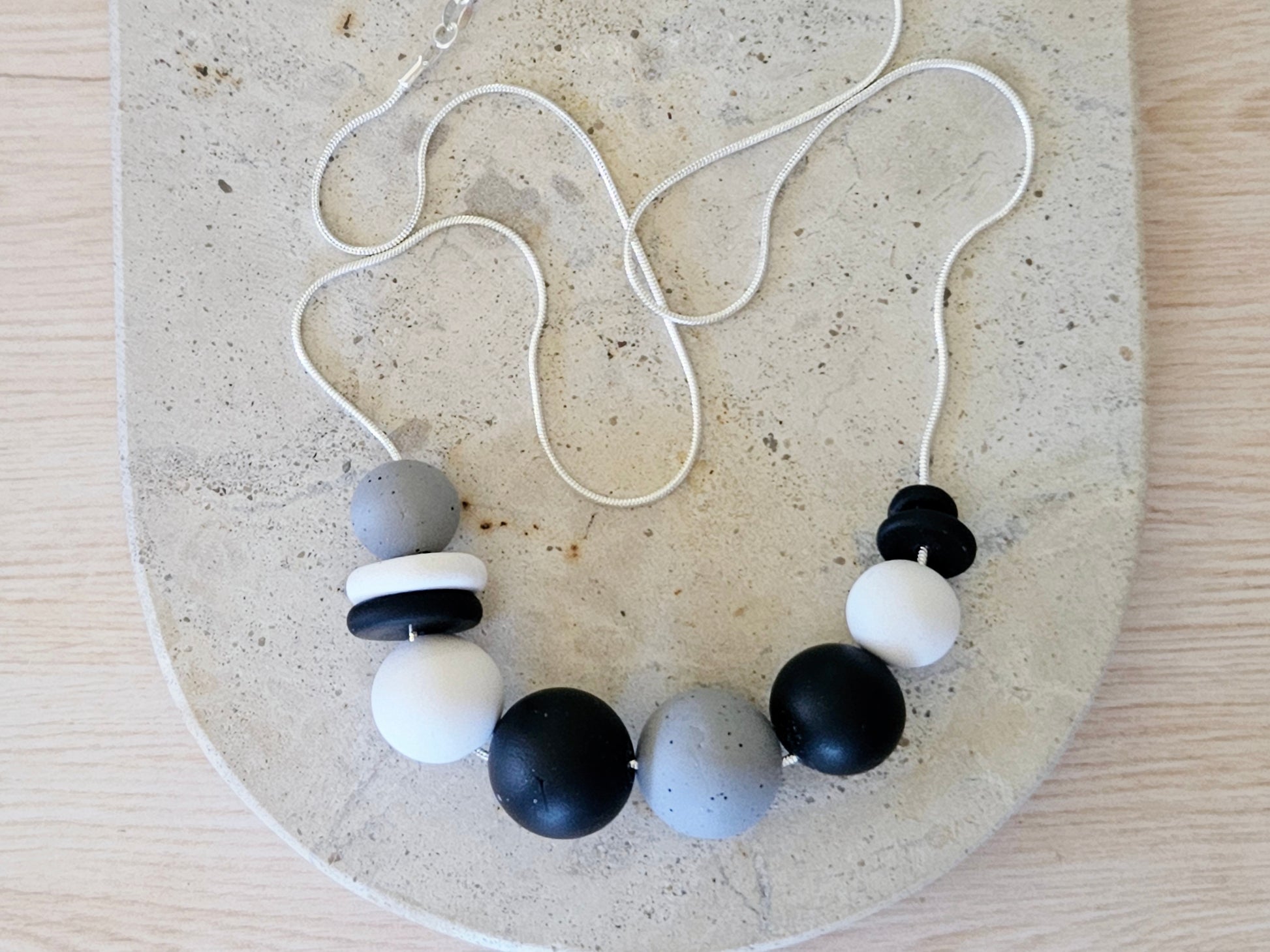 Enhance your outfits with this stunning hand-rolled polymer clay statement necklace. Each bead is handmade individually, making each necklace unique to you.