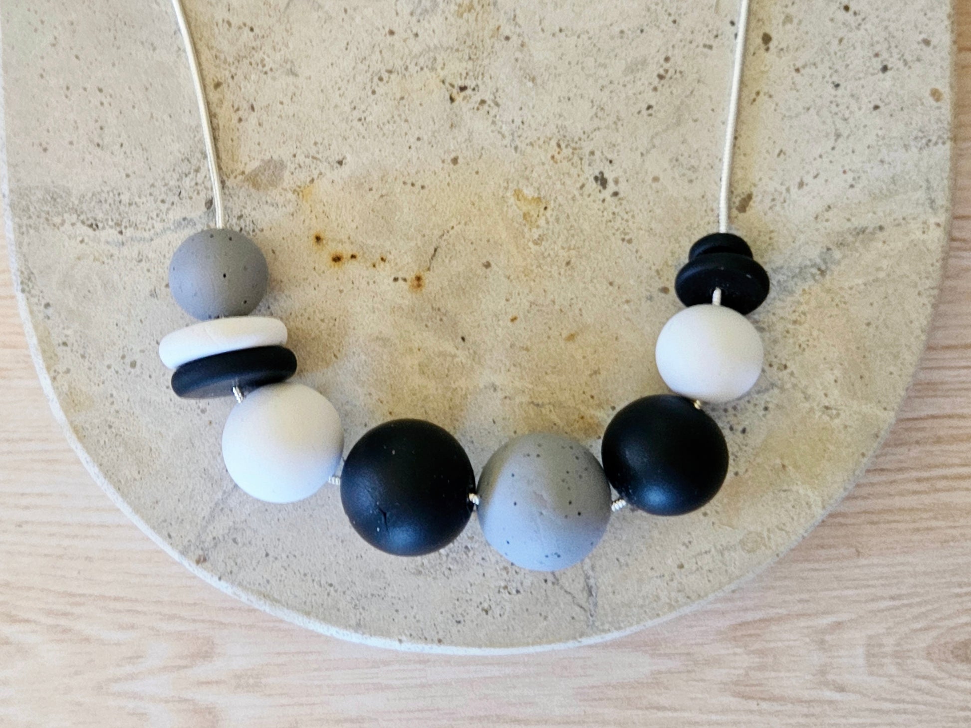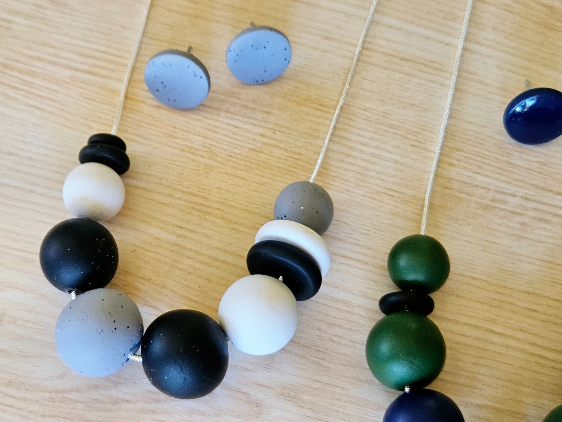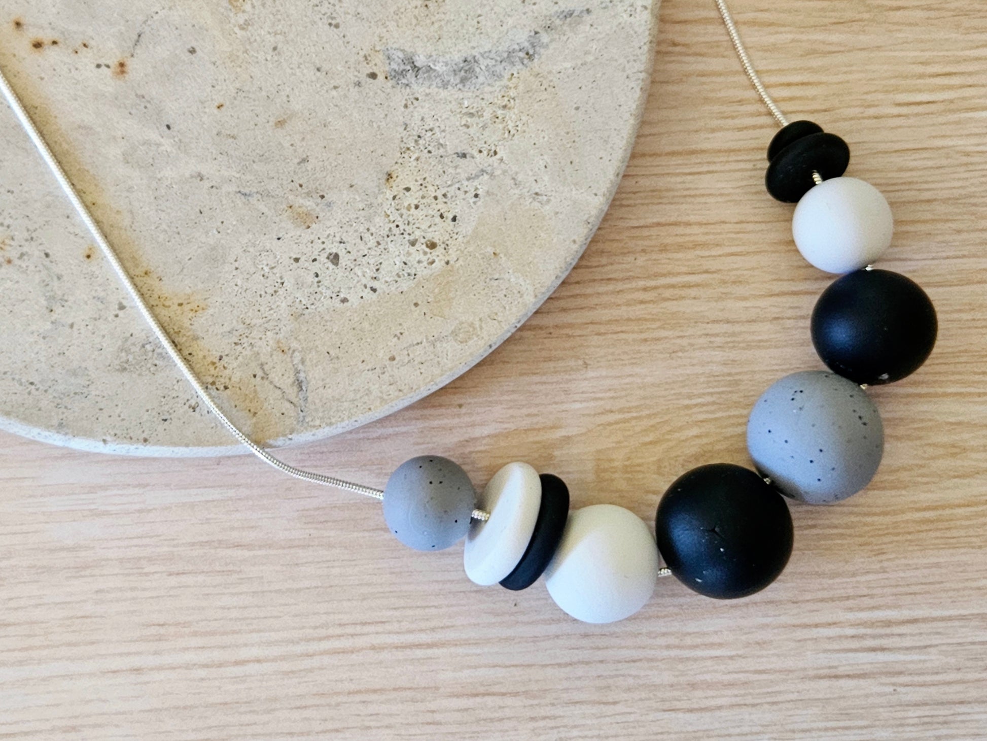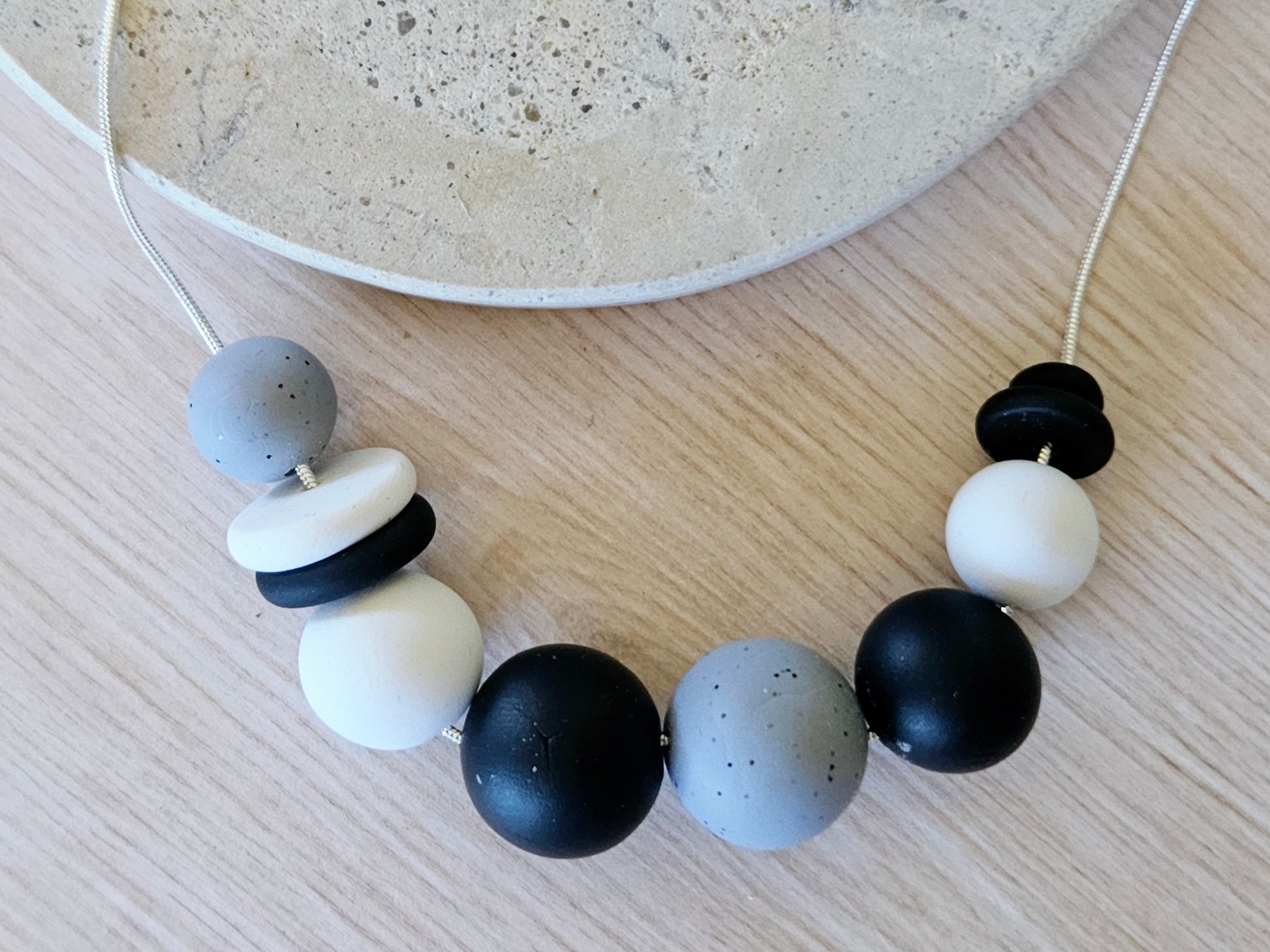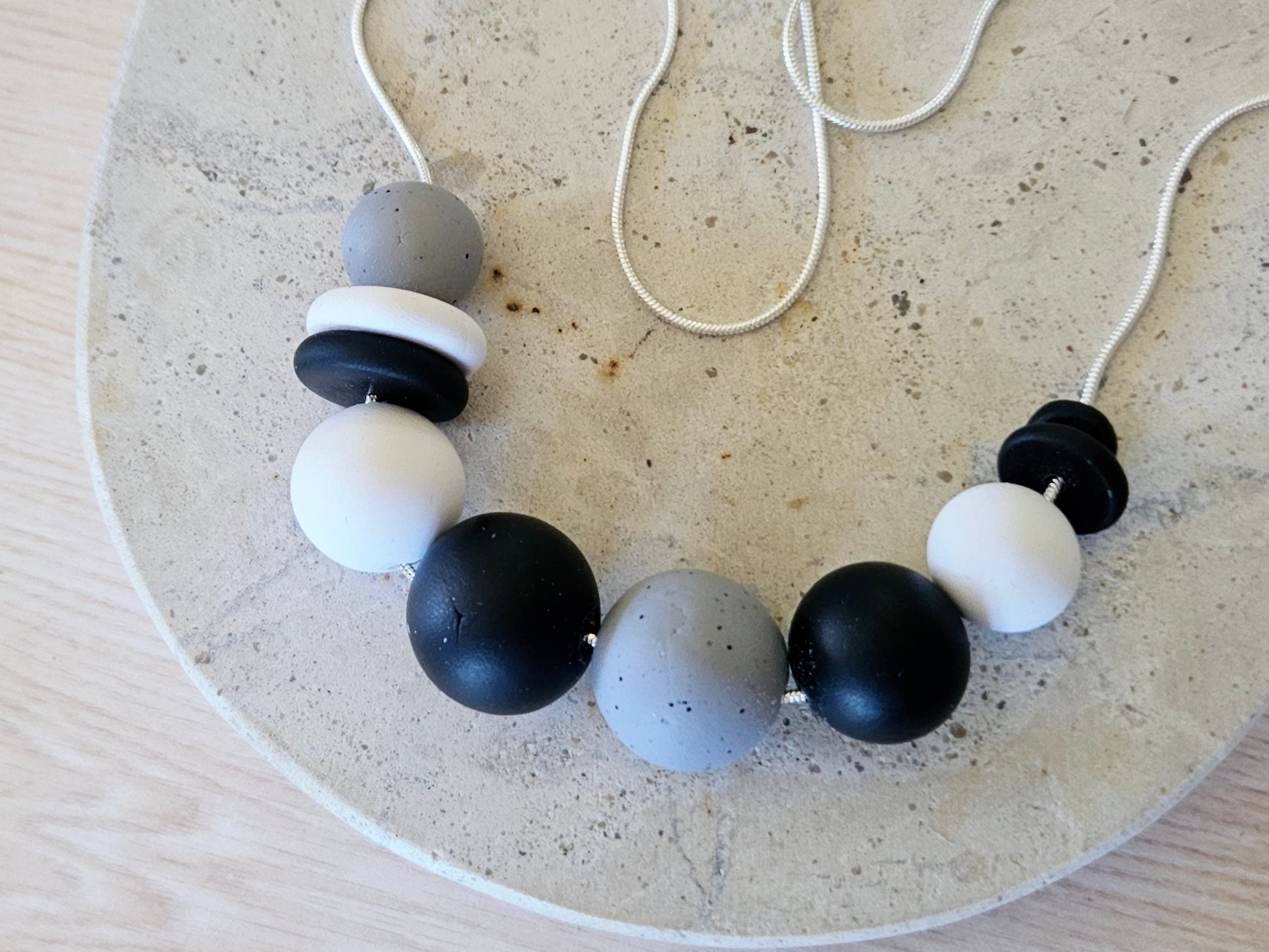 Enhance your outfits with this stunning hand-rolled polymer clay statement necklace. Each bead is handmade individually, making each necklace unique to you.