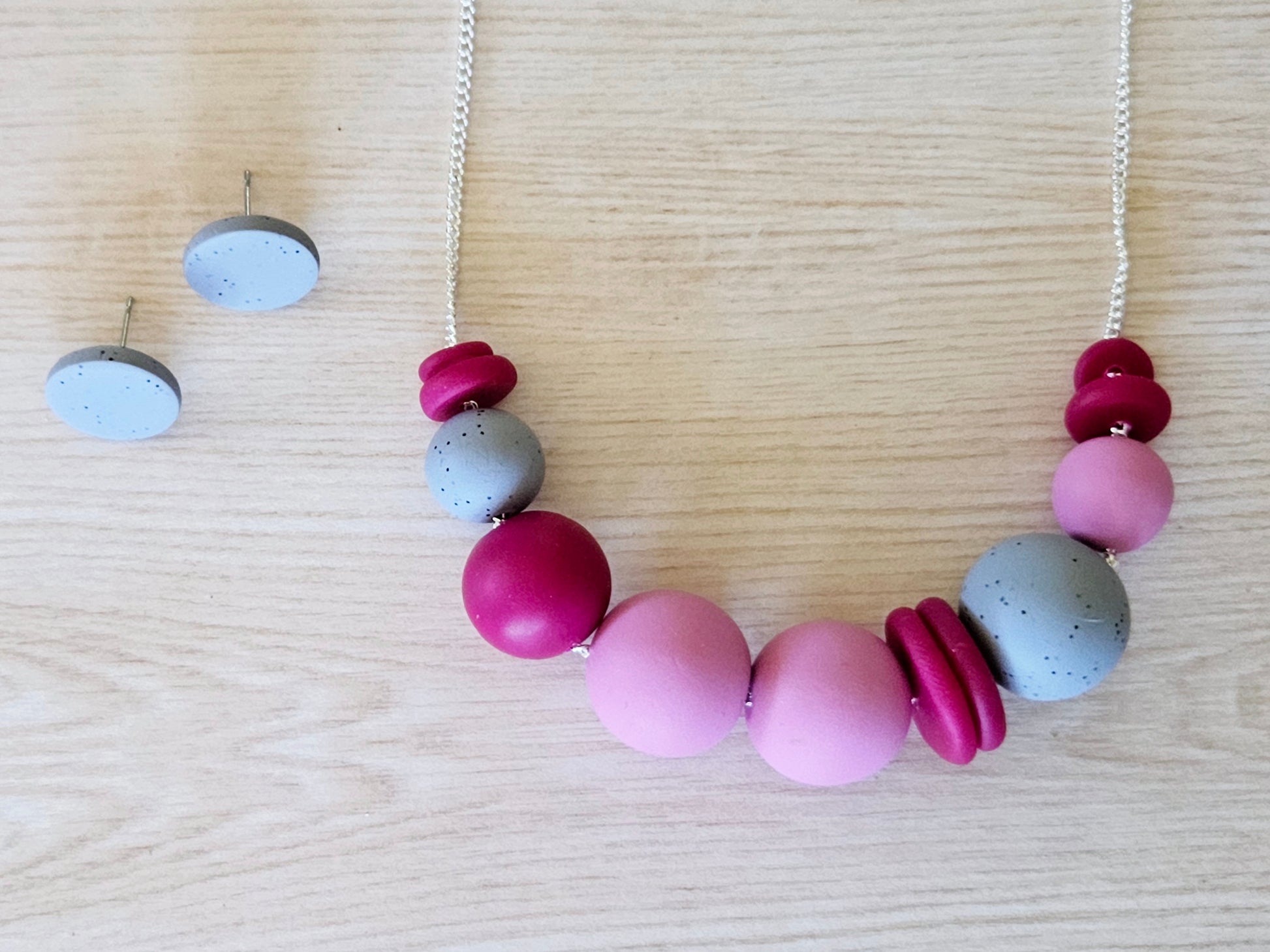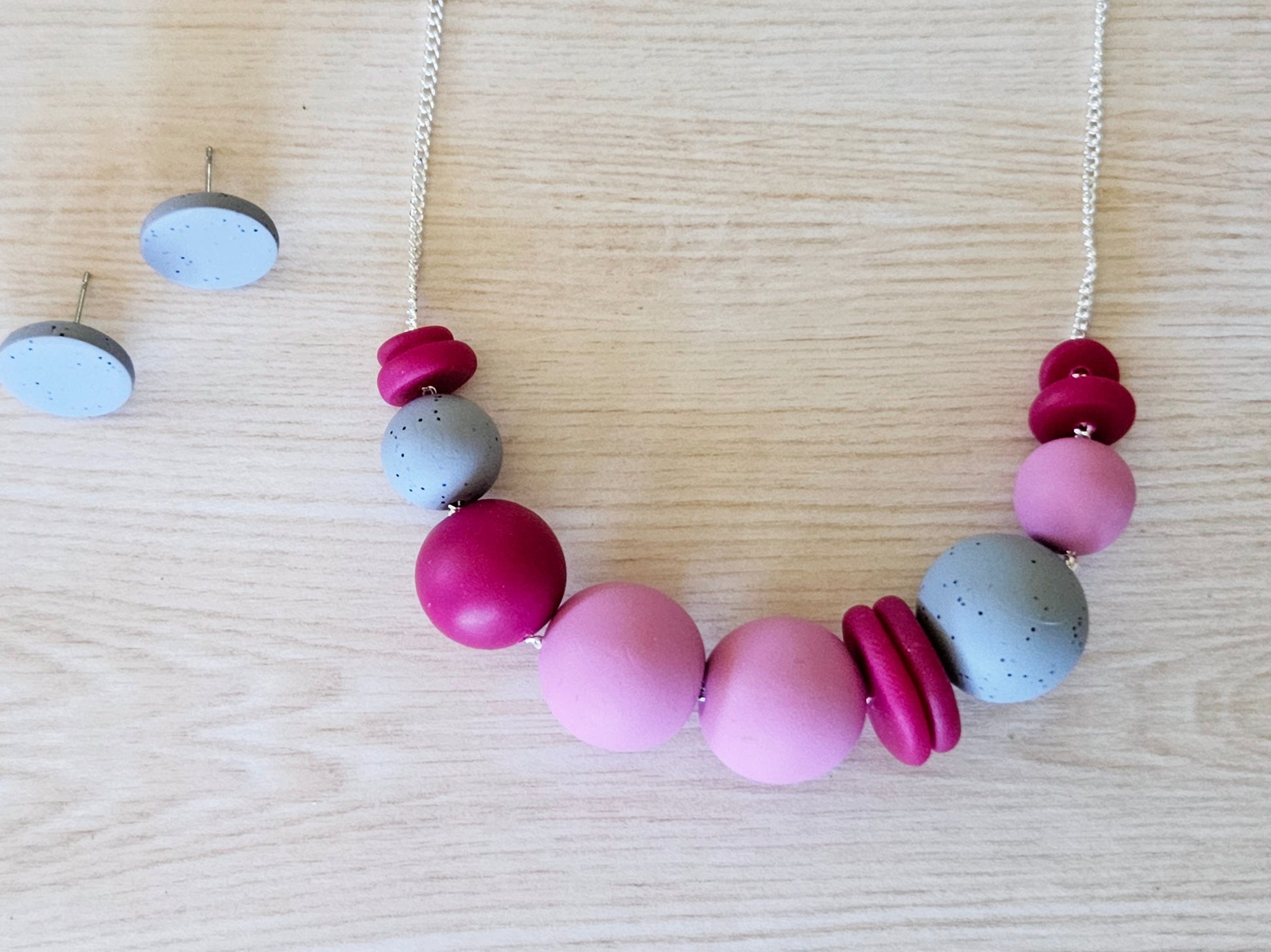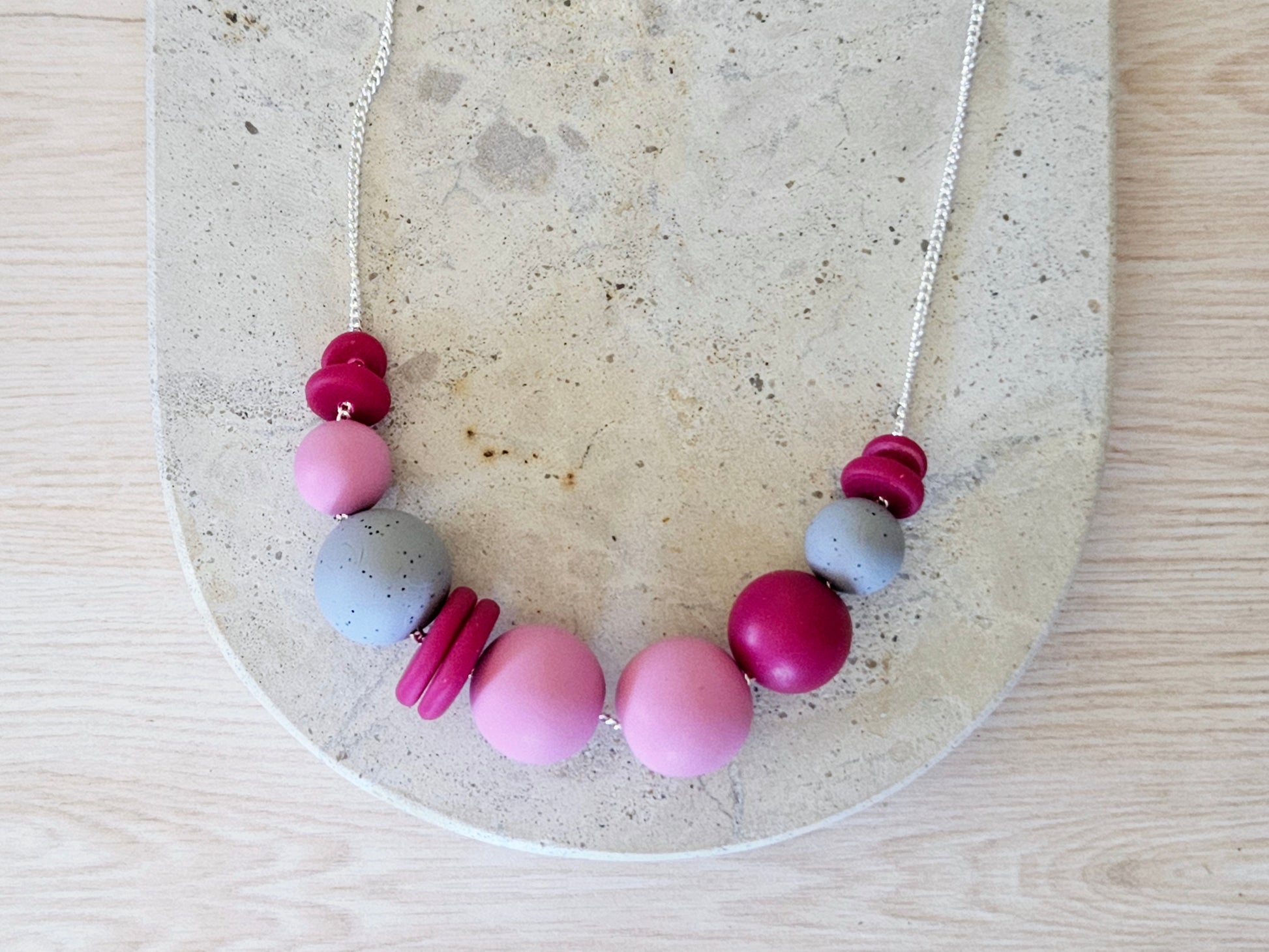Enhance your outfits with this stunning hand-rolled polymer clay statement necklace. Each bead is handmade individually, making each necklace unique to you.