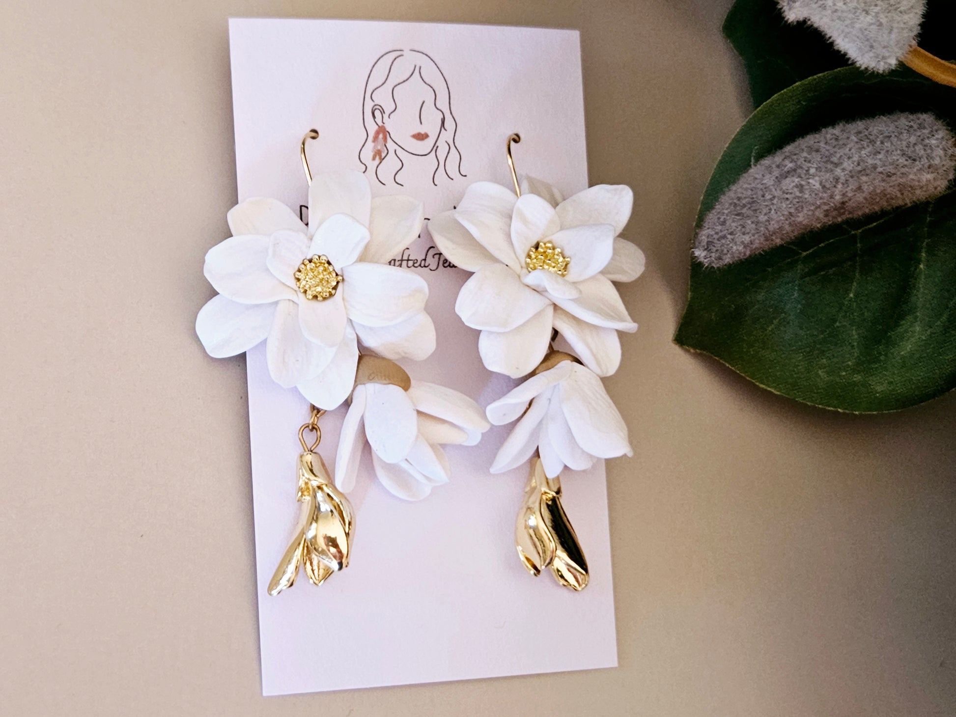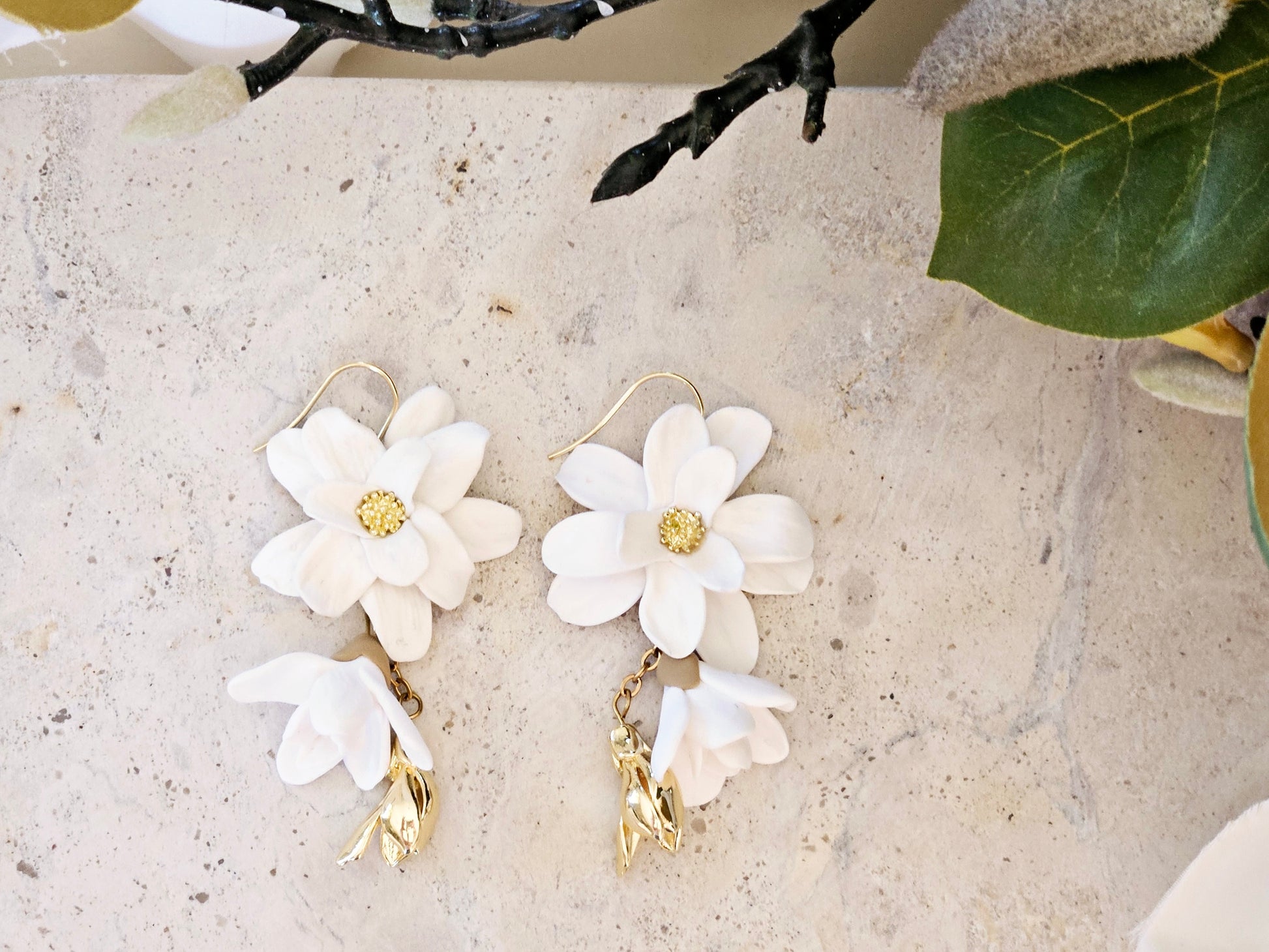 Delicately sculpted and full of grace, these handmade magnolia flower earrings celebrate the quiet strength and timeless beauty of nature. Each petal is shaped by hand, capturing the soft curves and subtle ivory or pink hues that make magnolias a symbol of resilience and femininity.