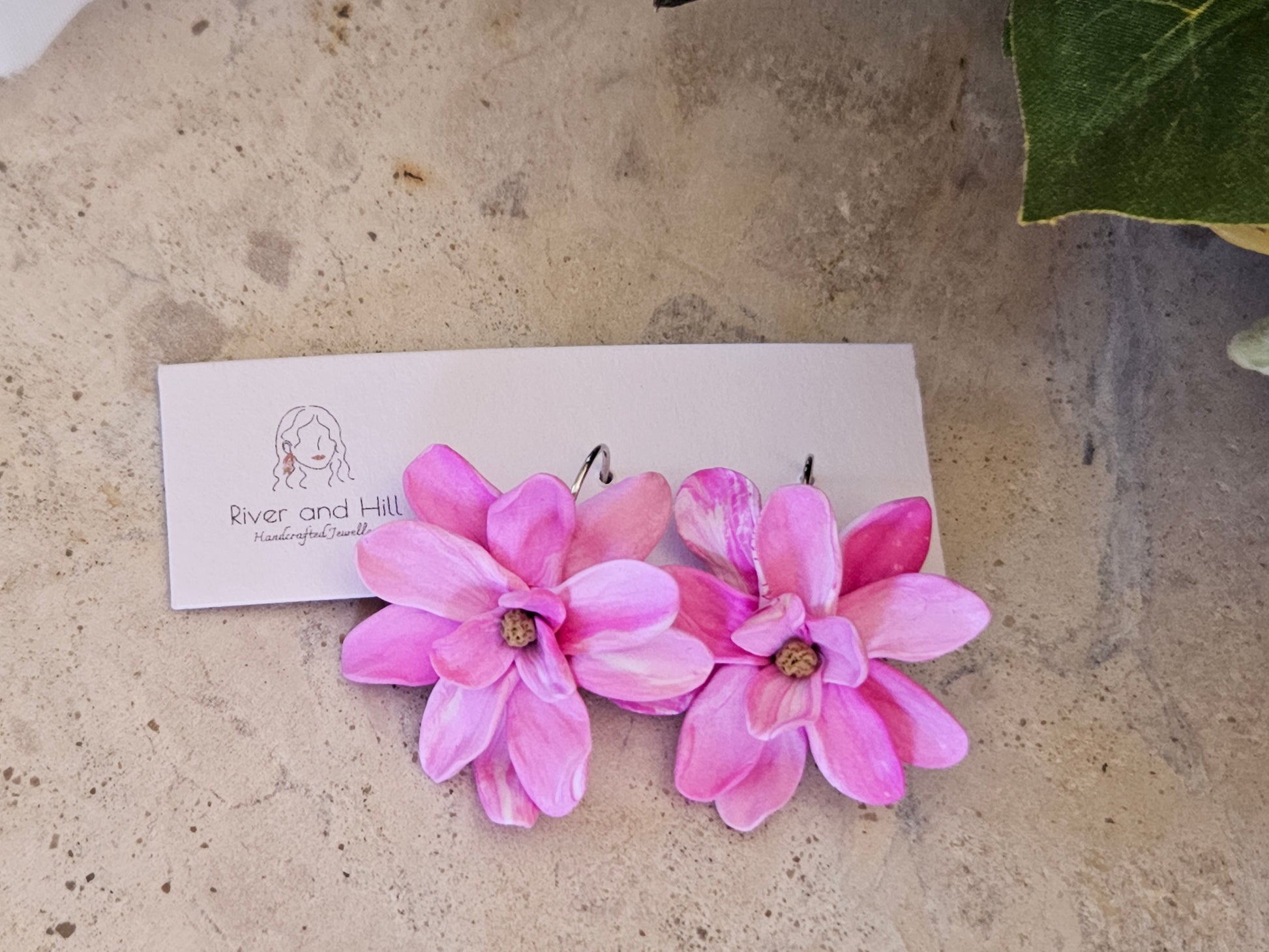 Delicately sculpted and full of grace, these handmade magnolia flower earrings celebrate the quiet strength and timeless beauty of nature. Each petal is shaped by hand, capturing the soft curves and subtle ivory or pink hues that make magnolias a symbol of resilience and femininity.