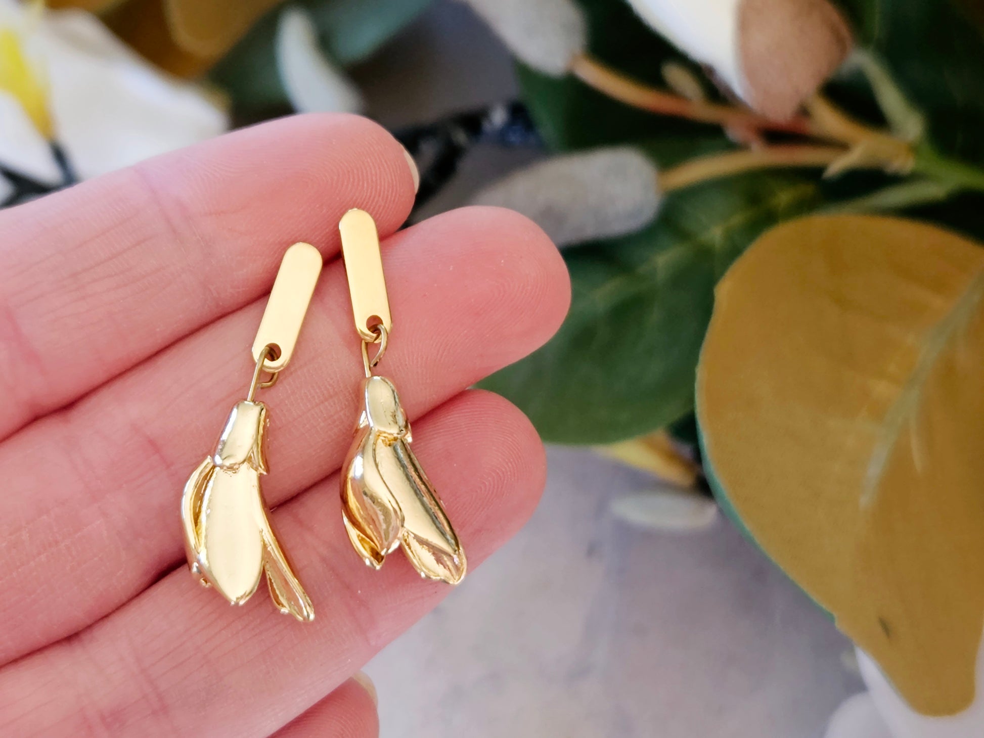 These gold magnolia charm earrings capture the quiet strength and timeless elegance of the magnolia flower.