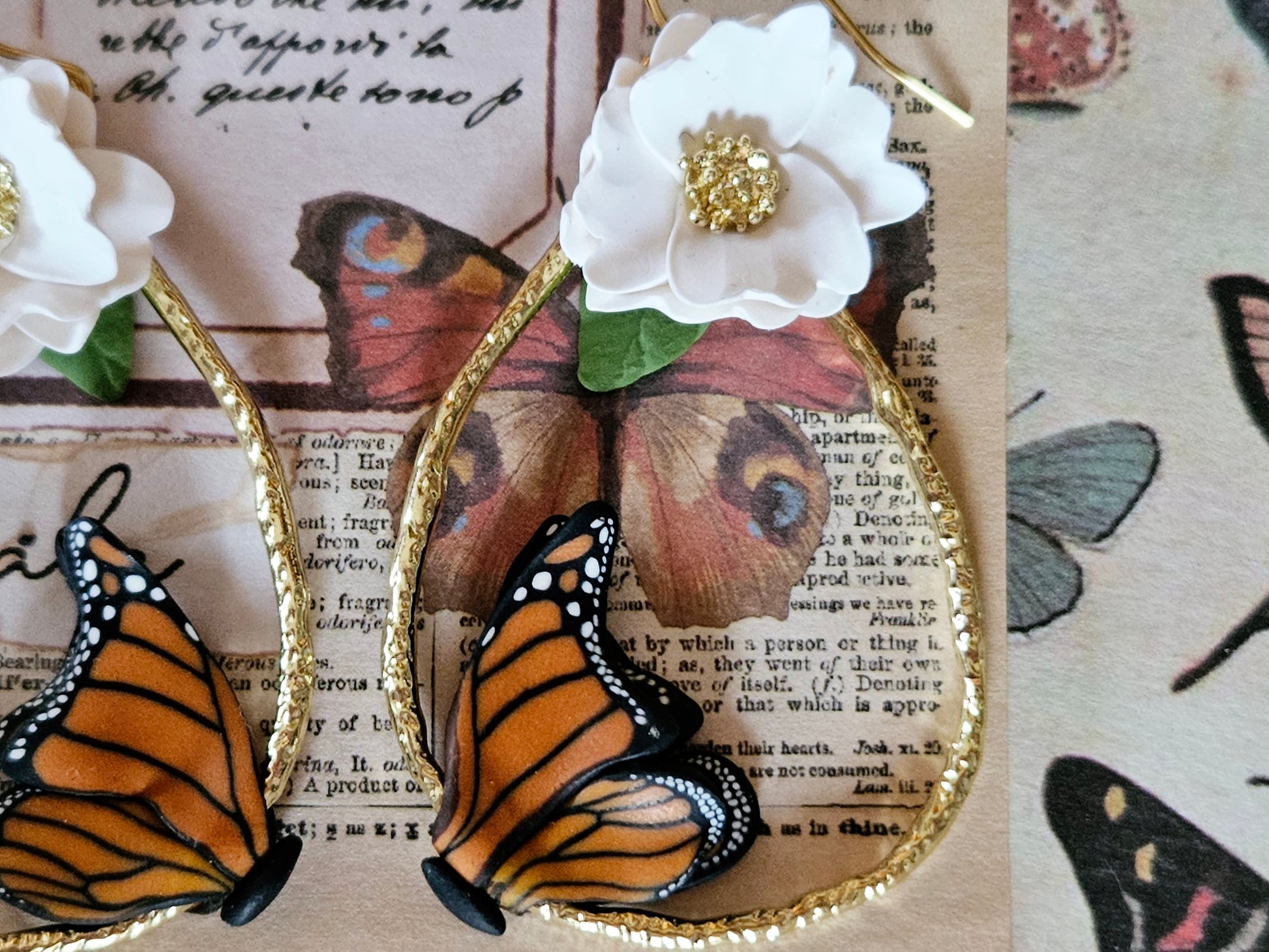 The monarch butterflies are one of New Zealand's most identifiable butterflies with their distinctive wing design and bright colour. Our Monarch Collection captures their unique beauty. Handmade with stainless steel findings, and lightweight polymer clay.
