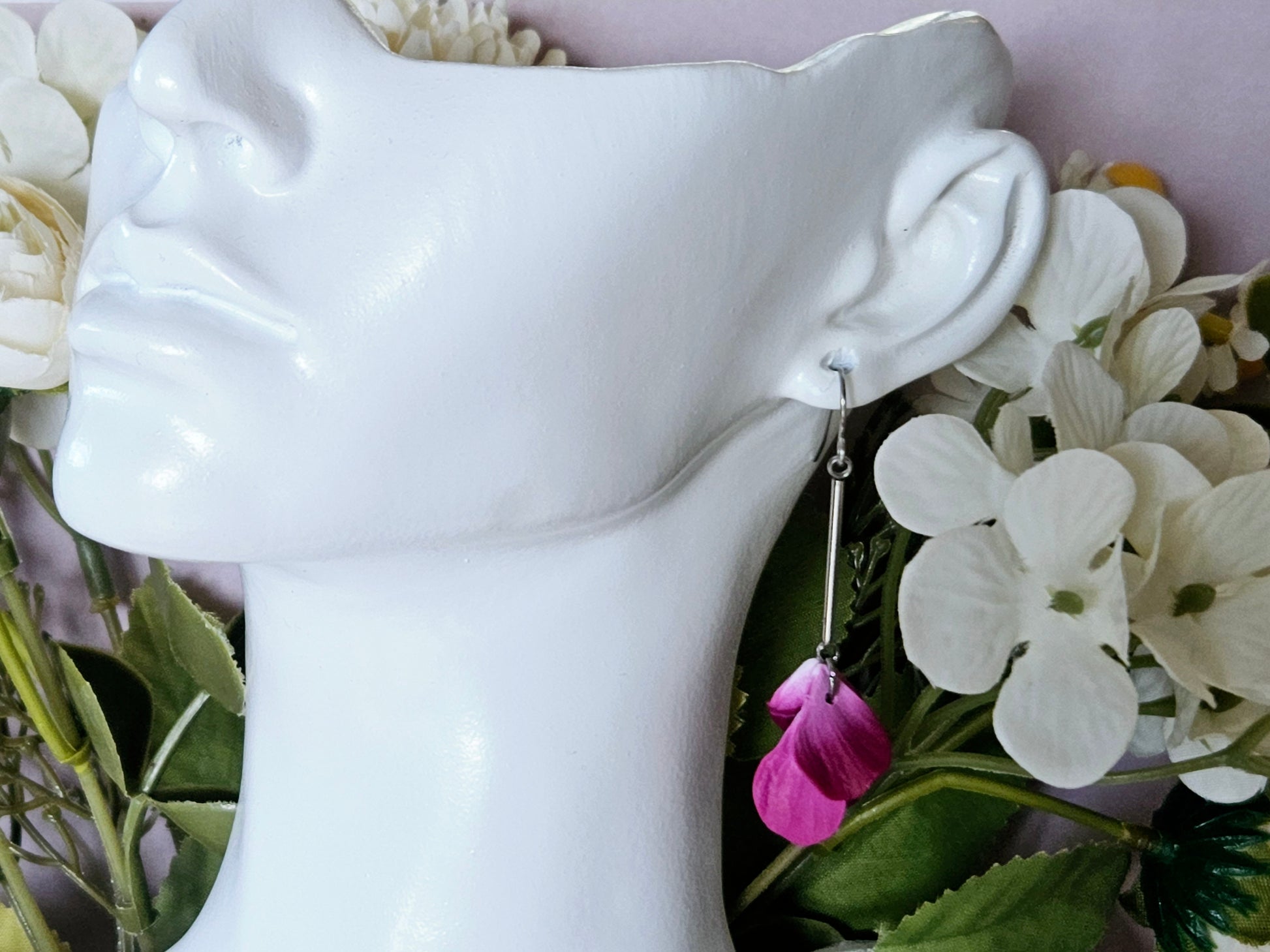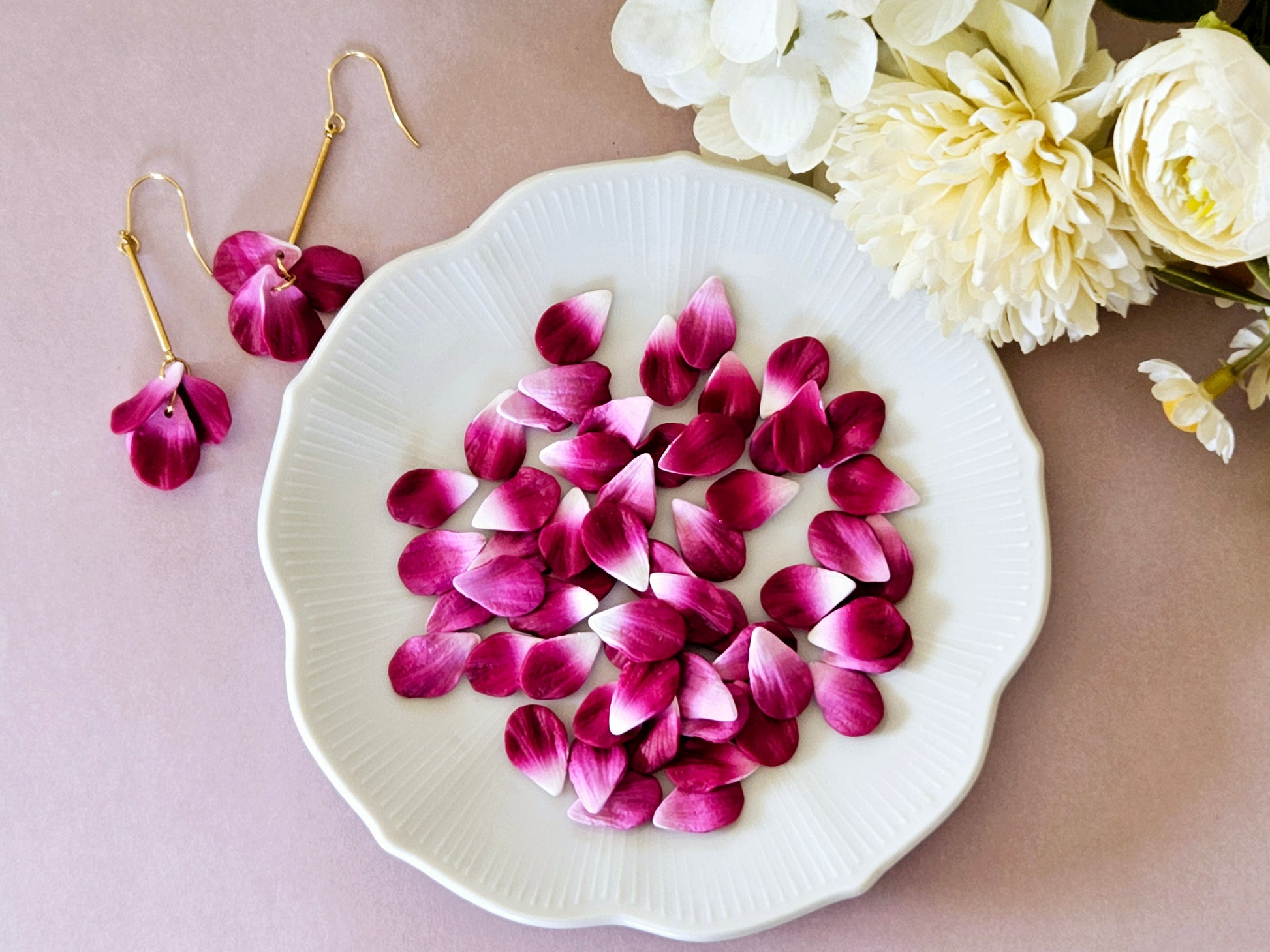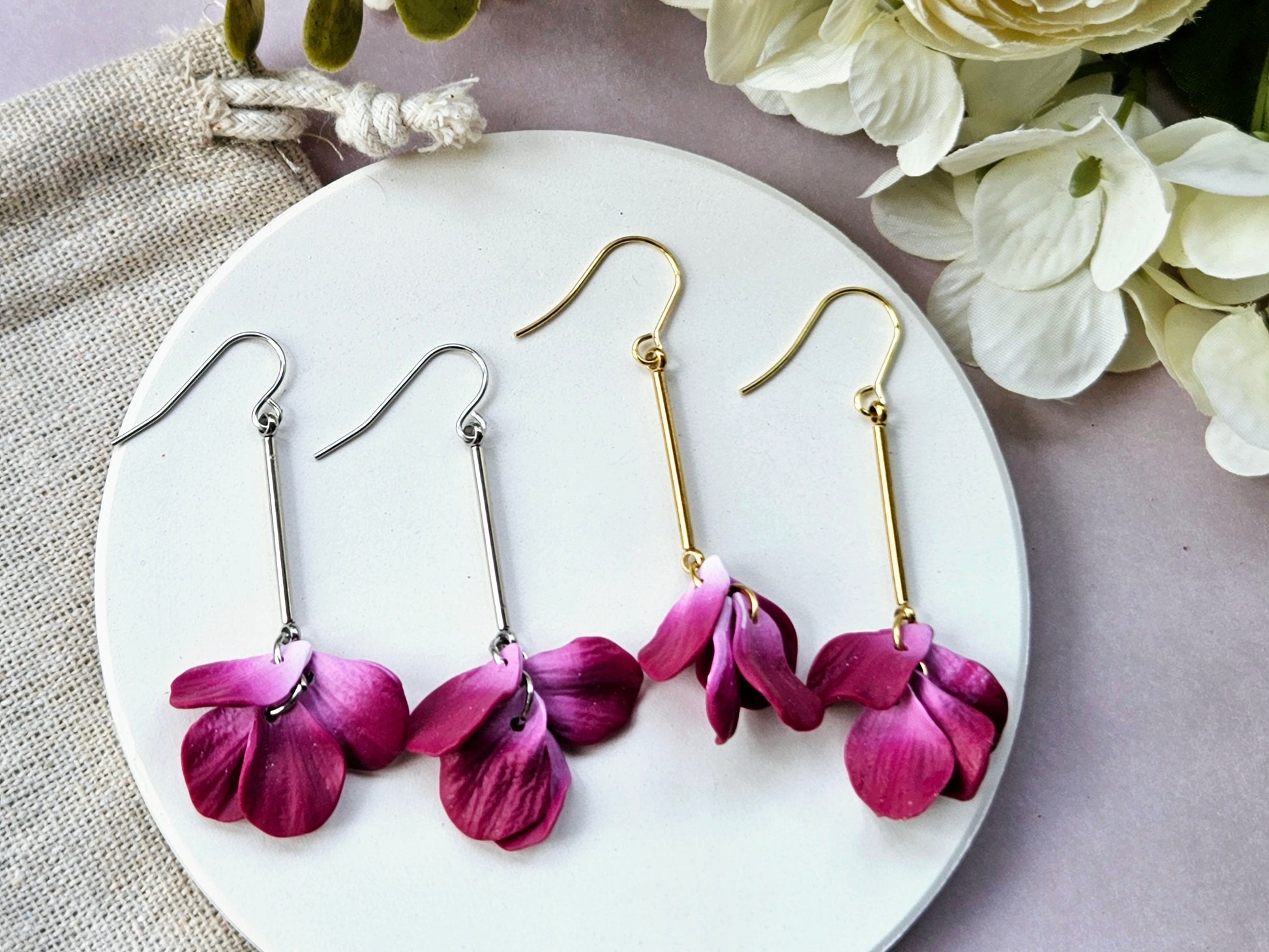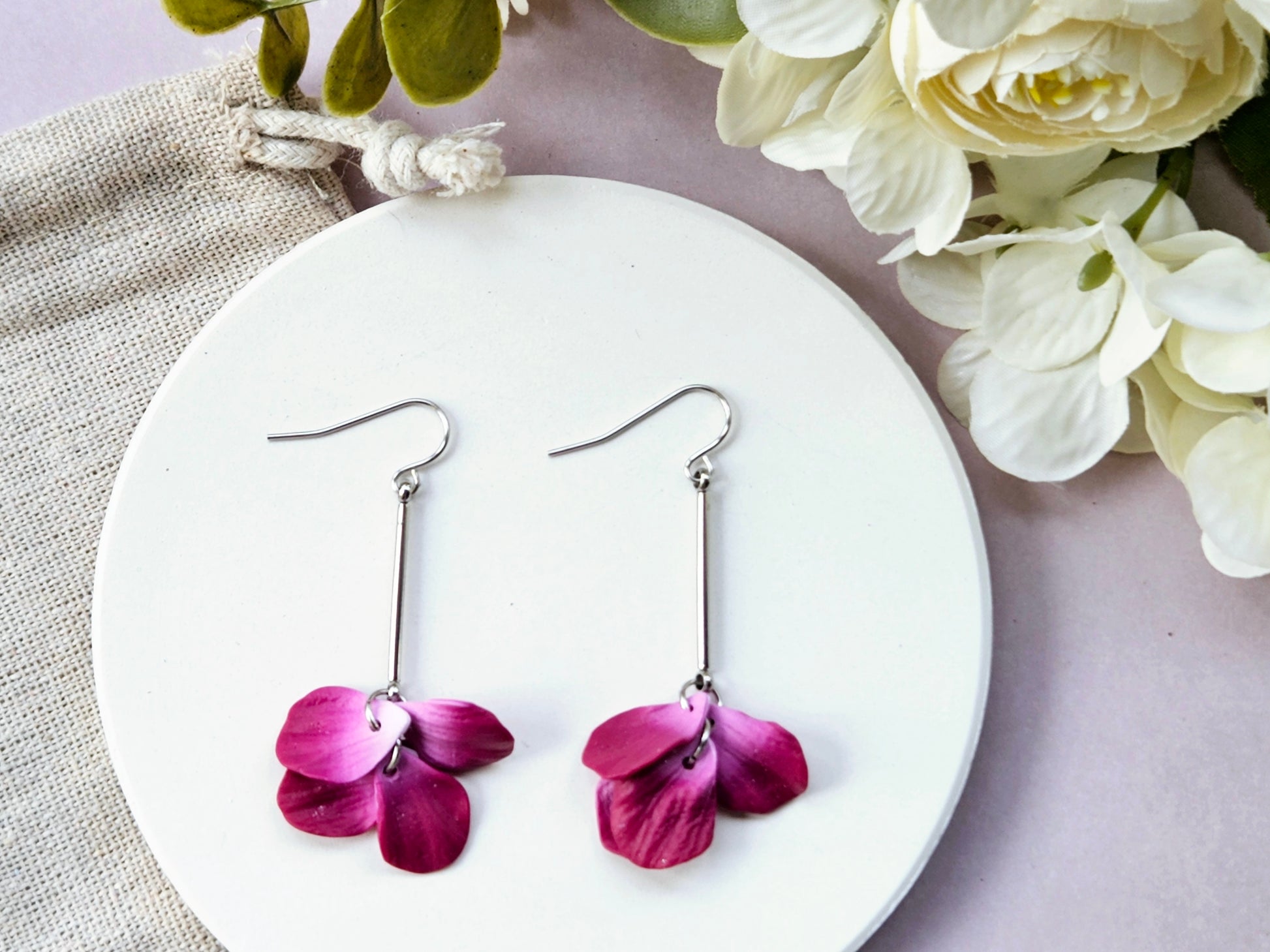 Add a touch of whimsical elegance to your look with our Petal Drop Earrings. These earrings feature handmade detailed petals that capture the beauty of blooming flowers, perfect for adding a pop of colour and charm to any outfit.