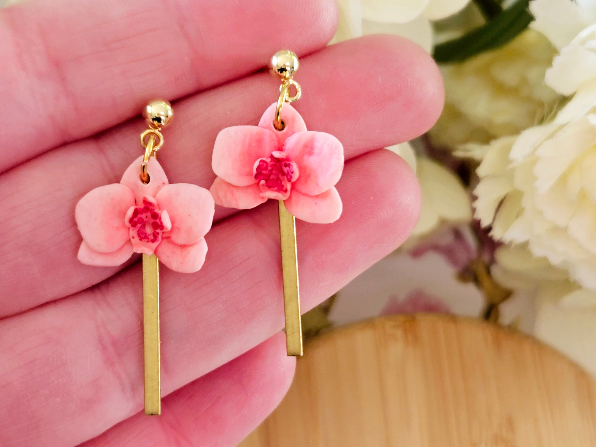 Elevate your style with the exquisite beauty of our Orchid Earrings. Each pair is meticulously handcrafted from polymer clay, capturing the delicate allure of orchids in full bloom. The vibrant petals, shaped with artistic precision, boast a radiant palette of colors that mirror the natural splendor of these beautiful flowers.