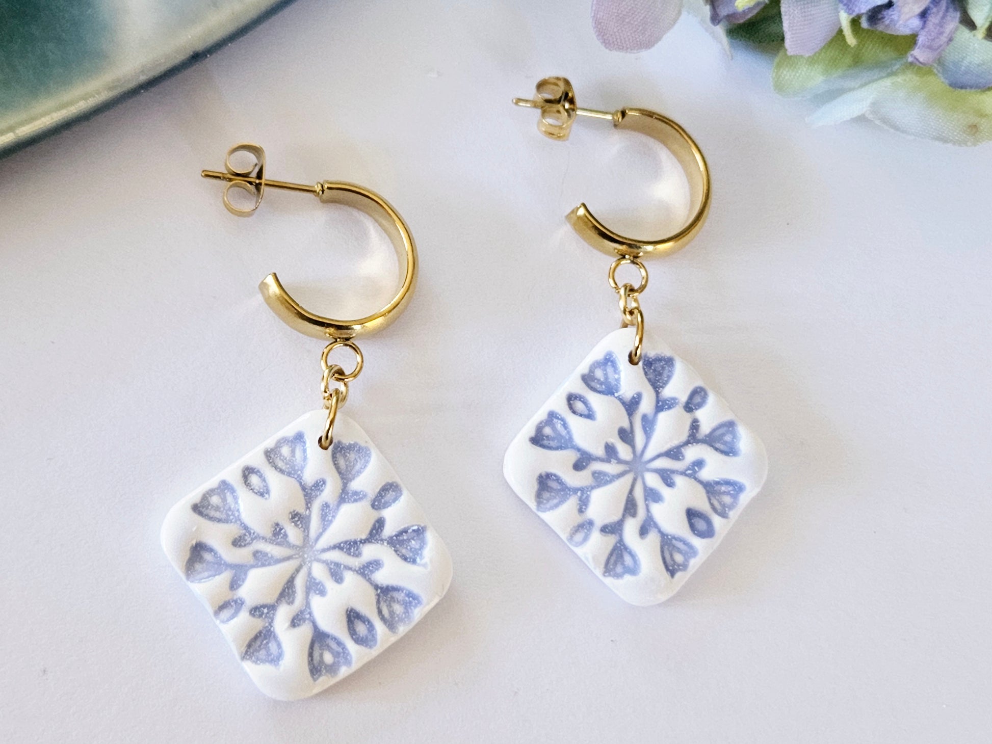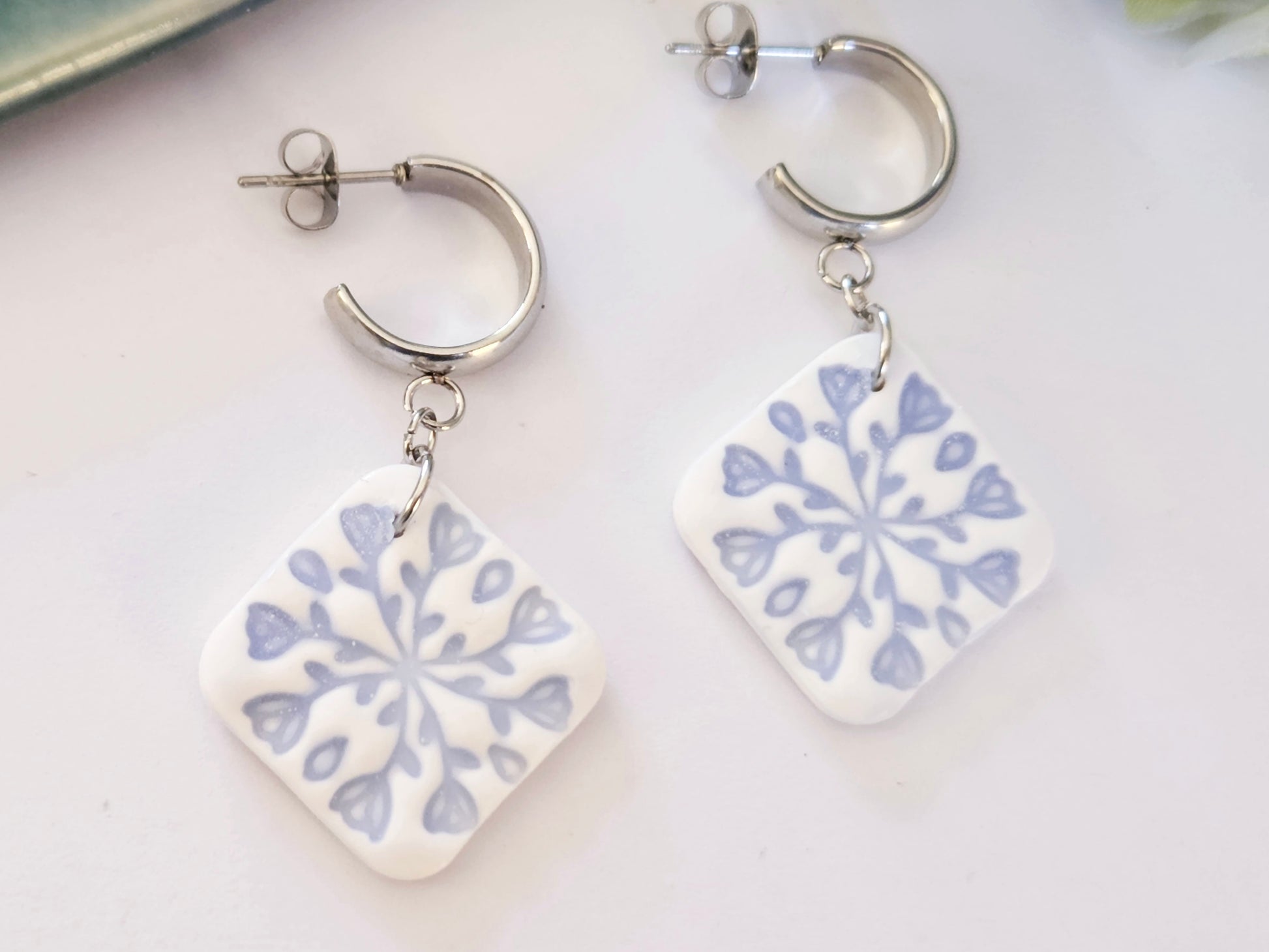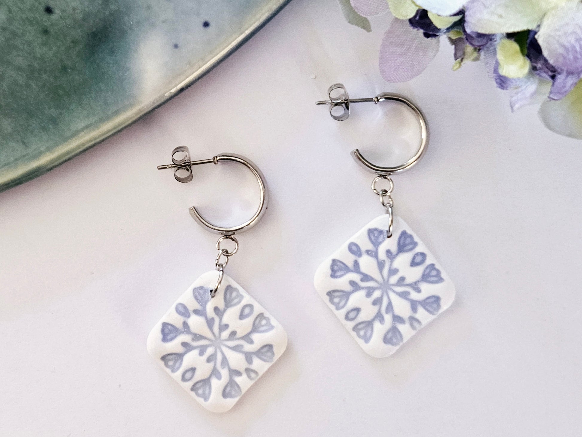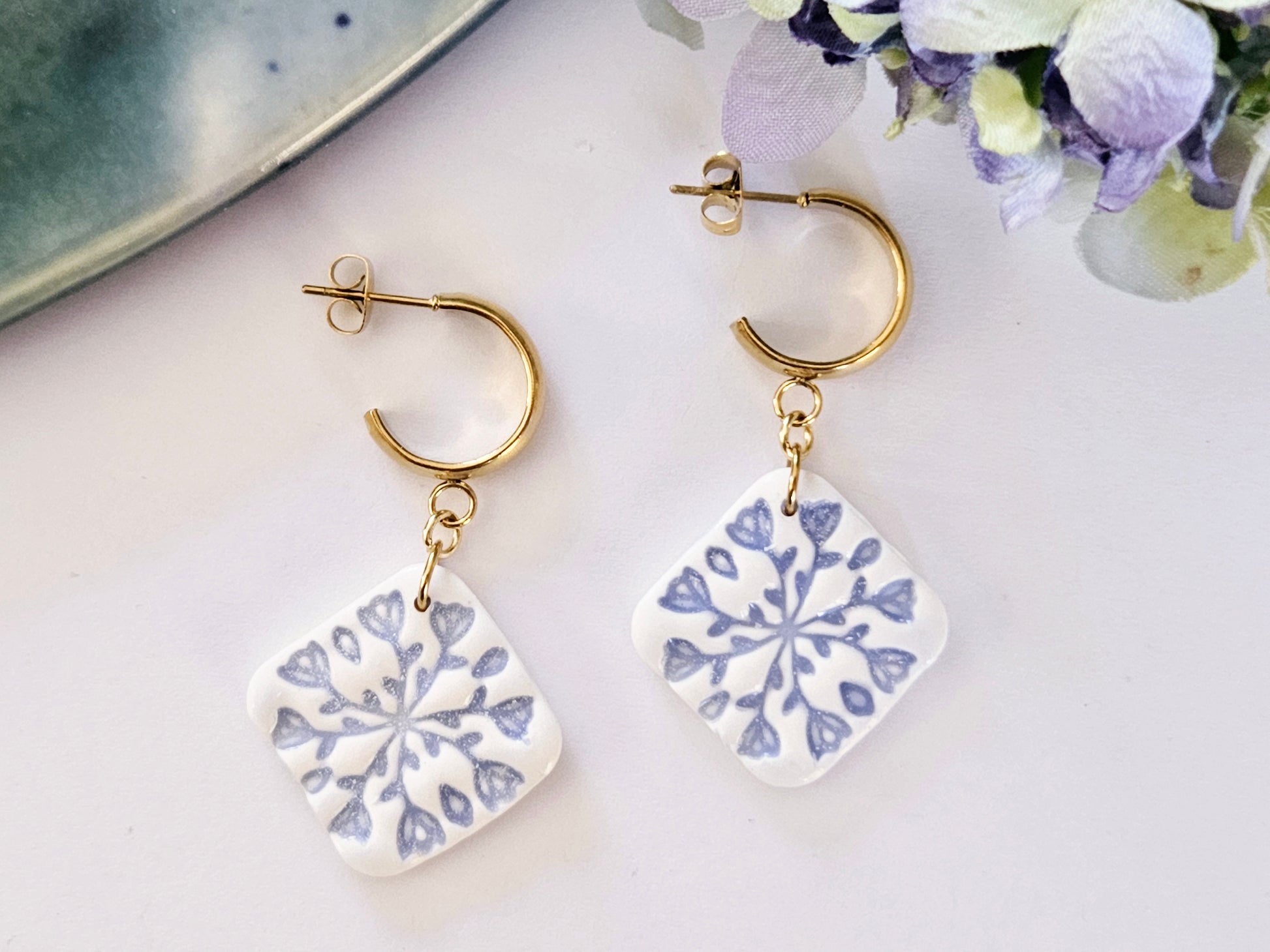 These handmade polymer clay earrings are crafted to mimic the soft and timeless beauty of porcelain without the fragility. Each pair is shaped, sanded, and glazed individually by hand, capturing the quiet luxury of ceramic artistry with the lightweight comfort of clay.