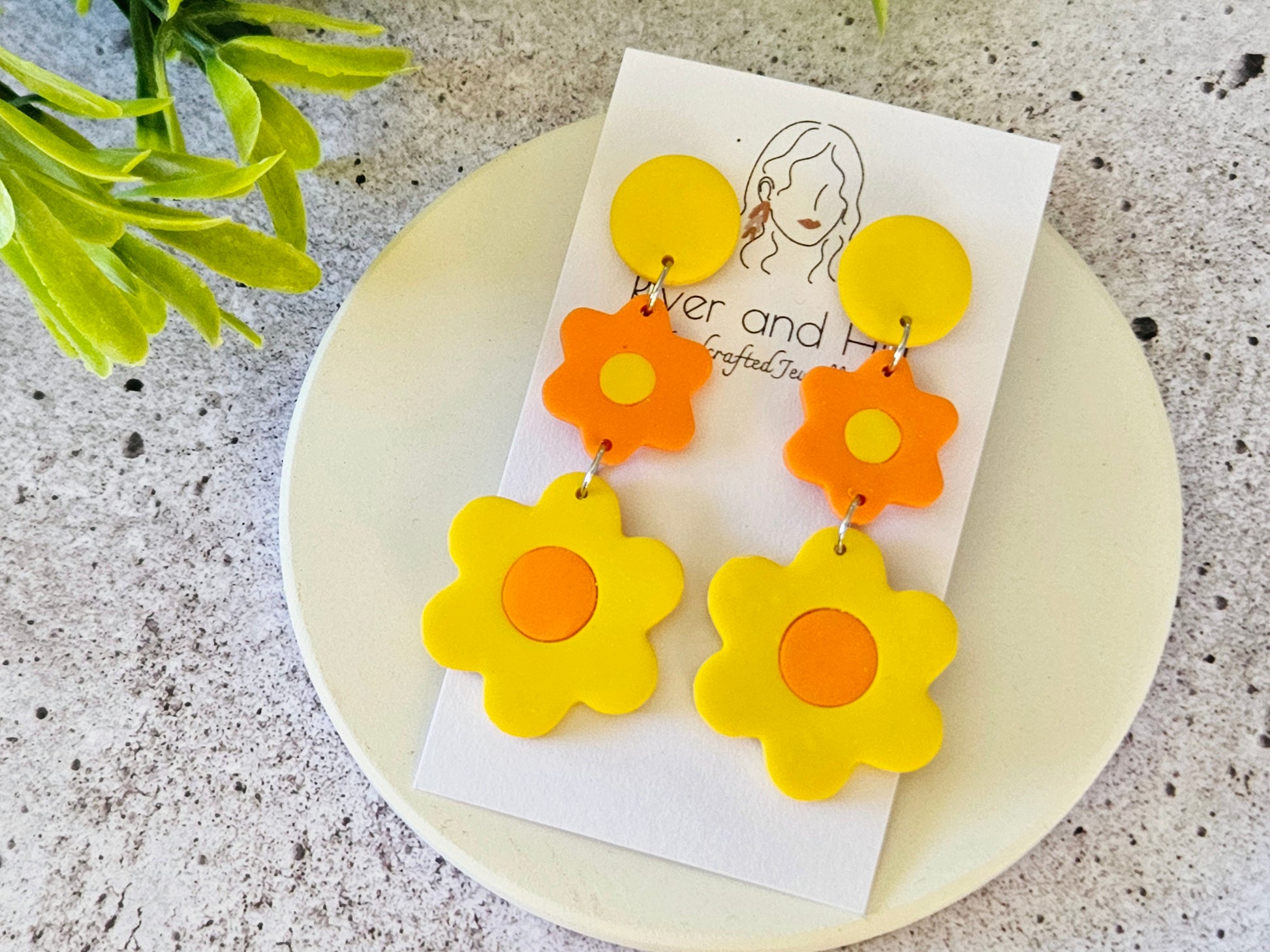 Add a touch of vintage charm to your outfit with these handmade polymer clay flower earrings, inspired by the vibrant styles of the 60s and 70s! Each pair showcases bold, groovy flower designs in retro colors. Lightweight and comfortable, these earrings are crafted with care, making them a unique accessory for anyone who loves a splash of individuality in their wardrobe.