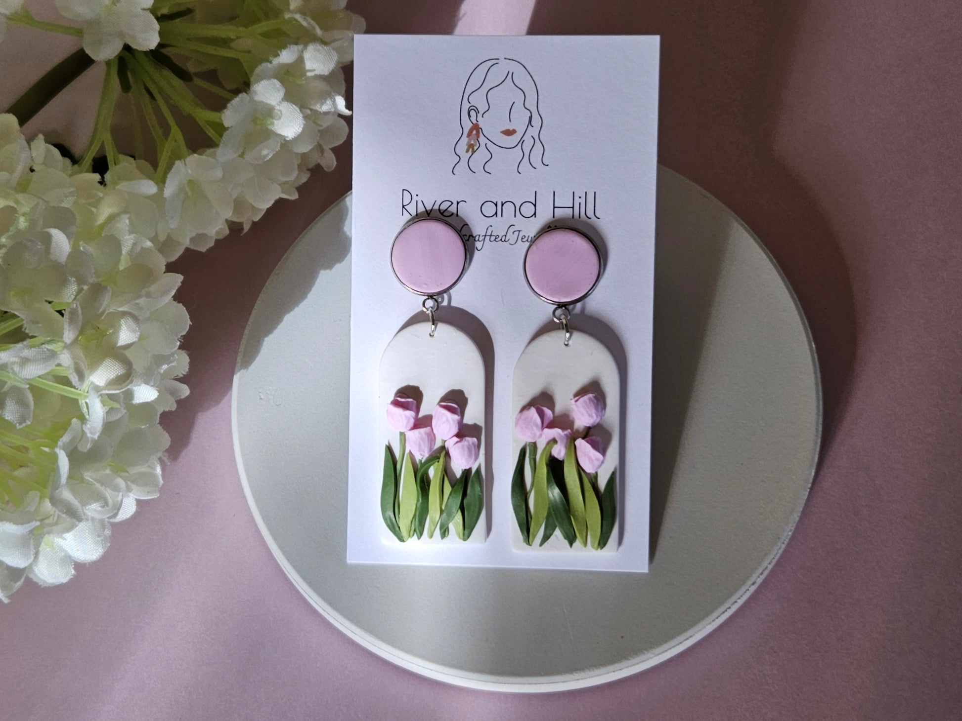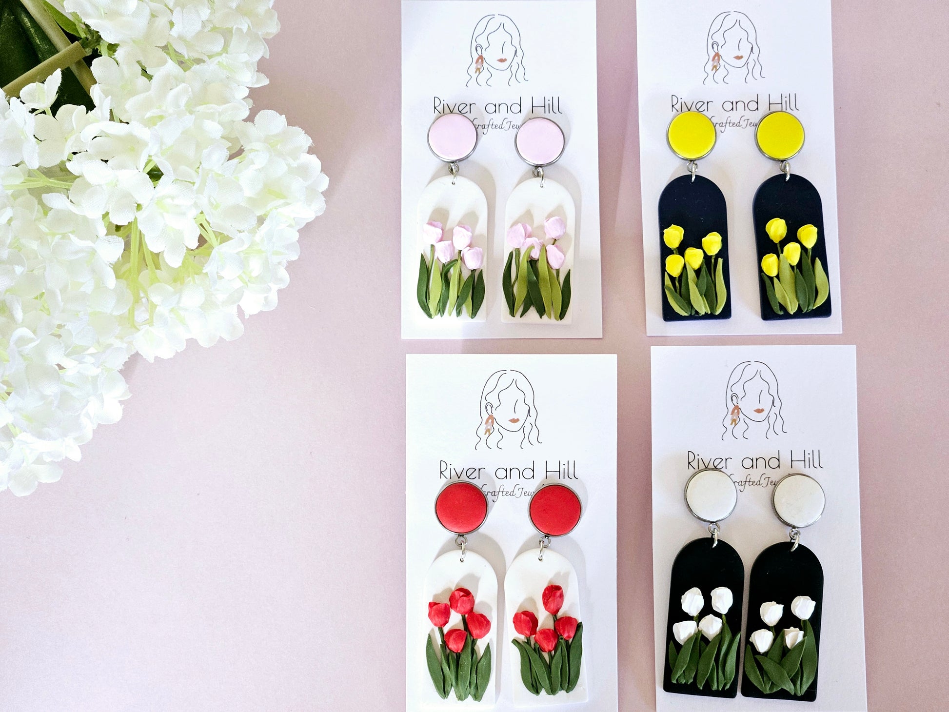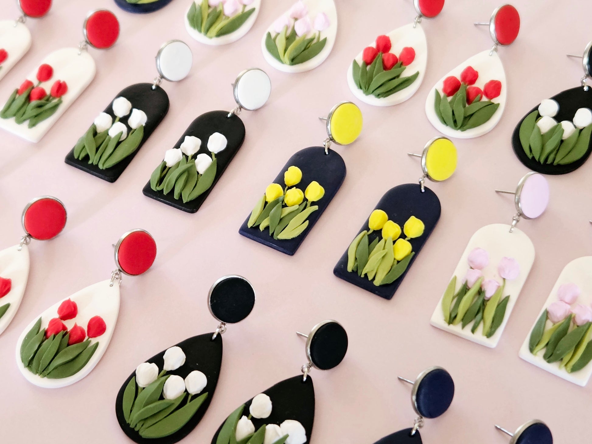 Add a touch of spring to your look with these beautiful polymer clay tulip earrings. These earrings are handmade with polymer clay and feature realistic details and vibrant colors. The tulips are attached to stainless steel earring posts and measure about 5.5 cm in length. They are lightweight and comfortable to wear, and make a perfect gift for yourself or someone special. Whether you want to brighten up your outfit or express your love for nature, these polymer clay tulip earrings are a lovely choice.