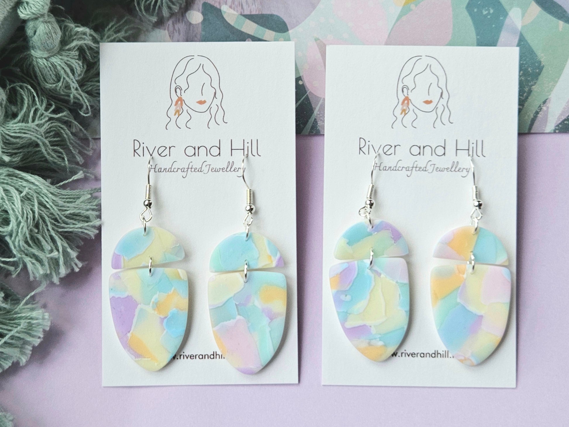 Stunning handmade watercolour earrings. Made with stainless steel findings, great for those with sensitive ears.