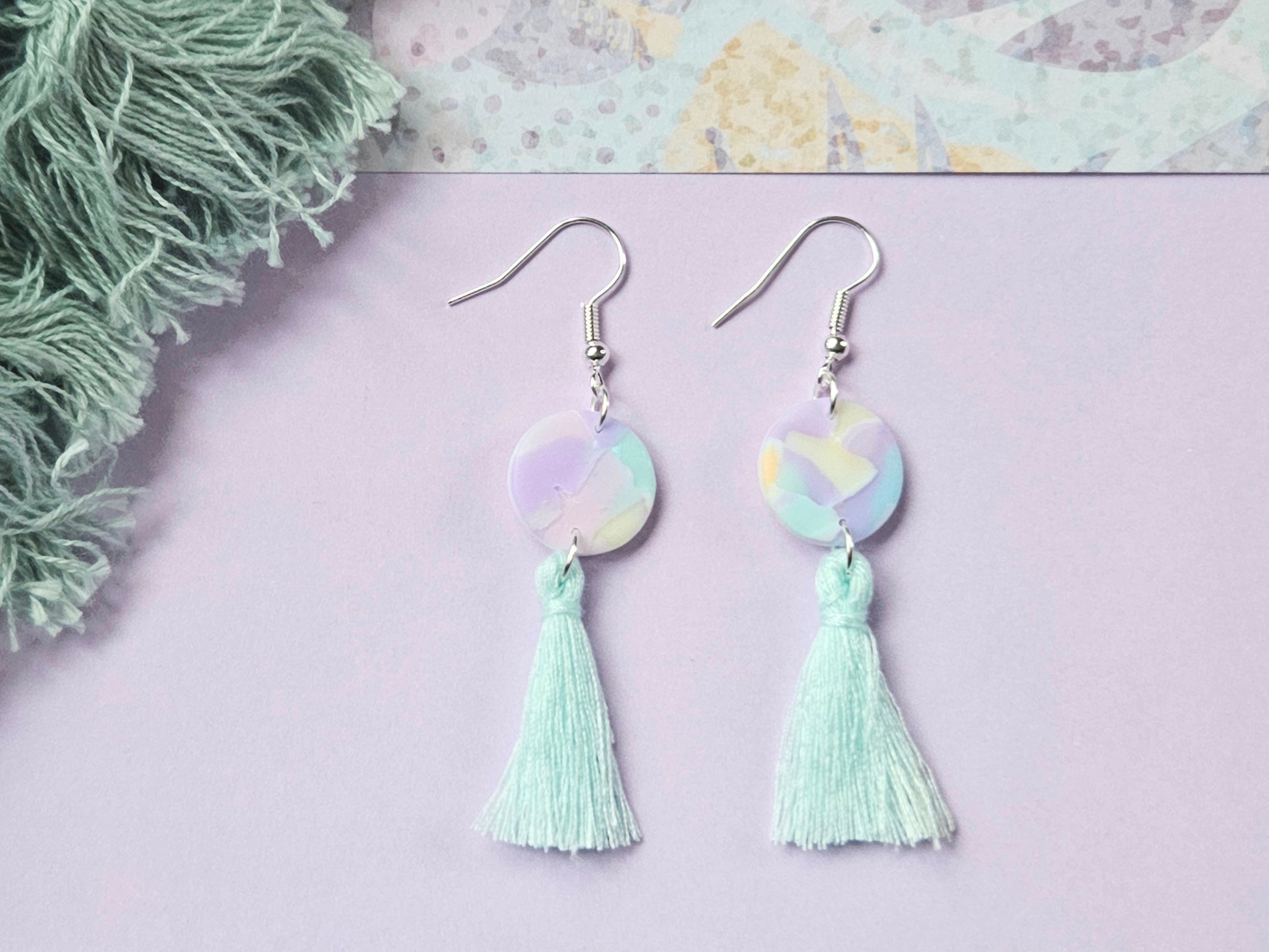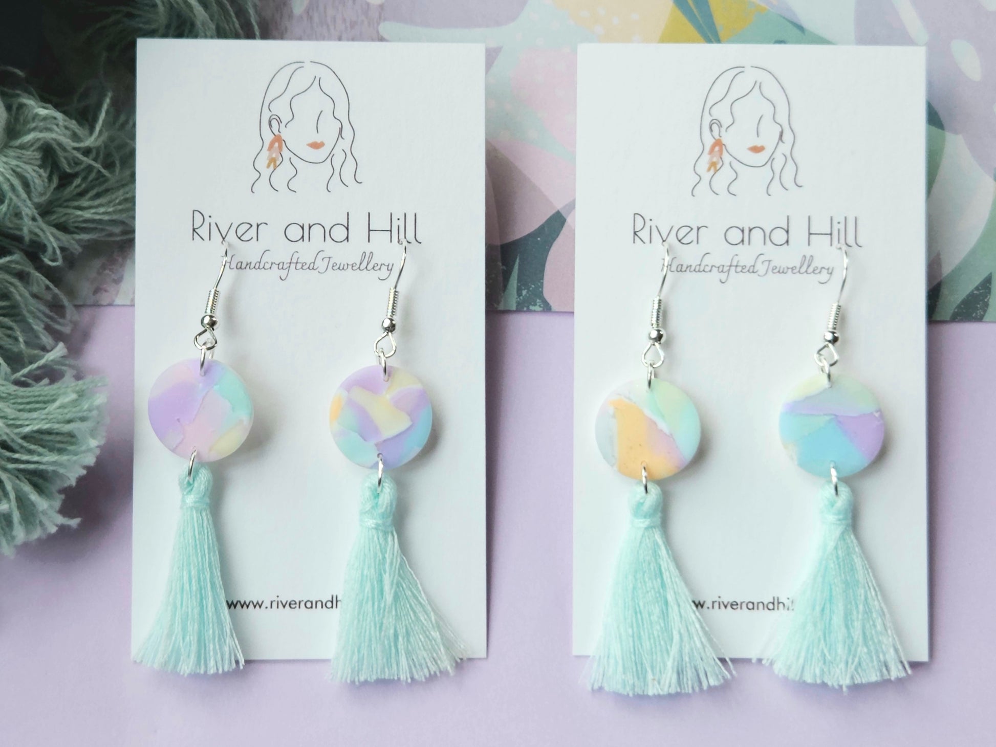 Stunning handmade watercolour earrings. Made with stainless steel findings, great for those with sensitive ears.