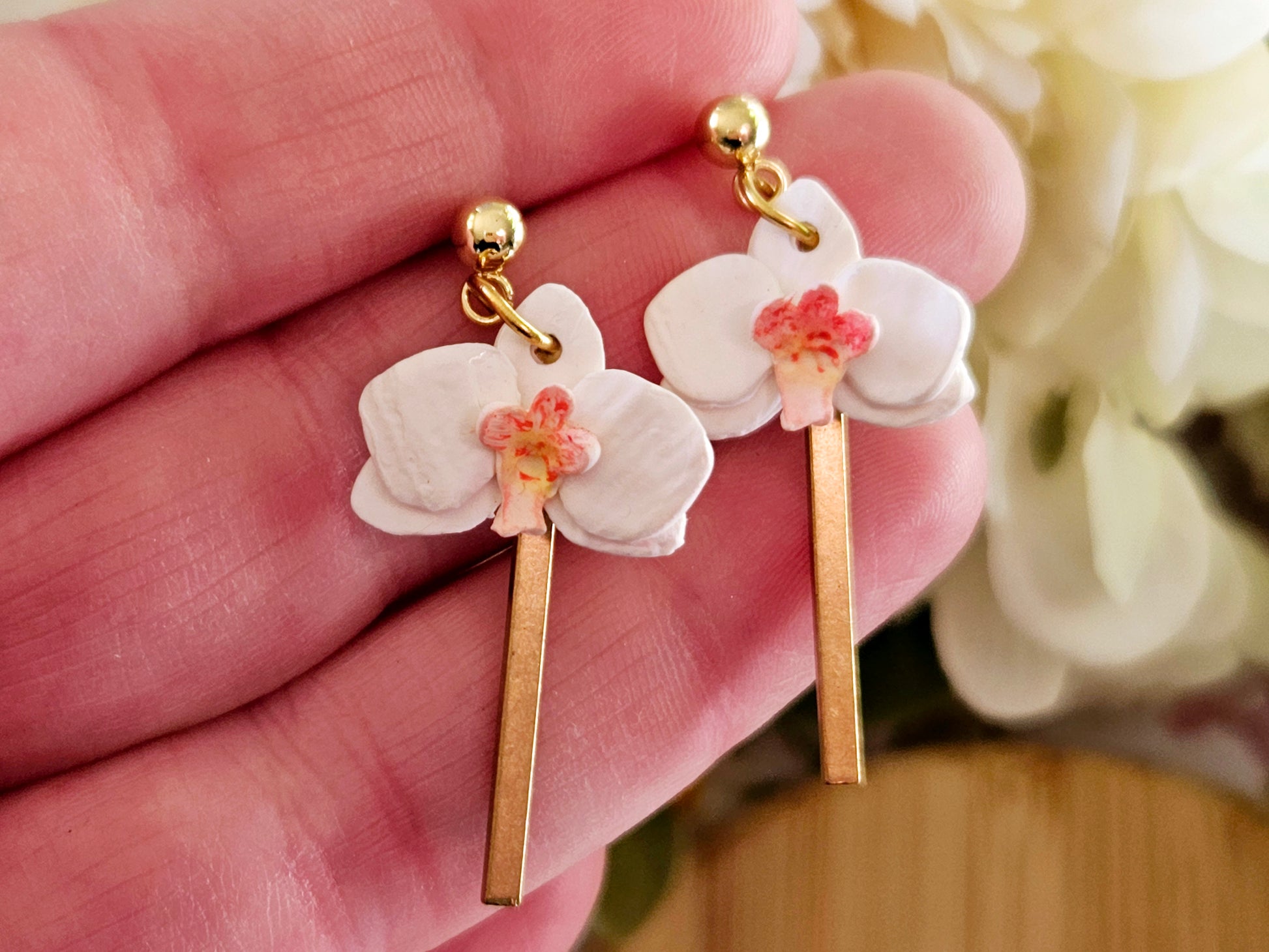 Elevate your style with the exquisite beauty of our Orchid Earrings. Each pair is meticulously handcrafted from polymer clay, capturing the delicate allure of orchids in full bloom. The vibrant petals, shaped with artistic precision, boast a radiant palette of colors that mirror the natural splendor of these beautiful flowers.