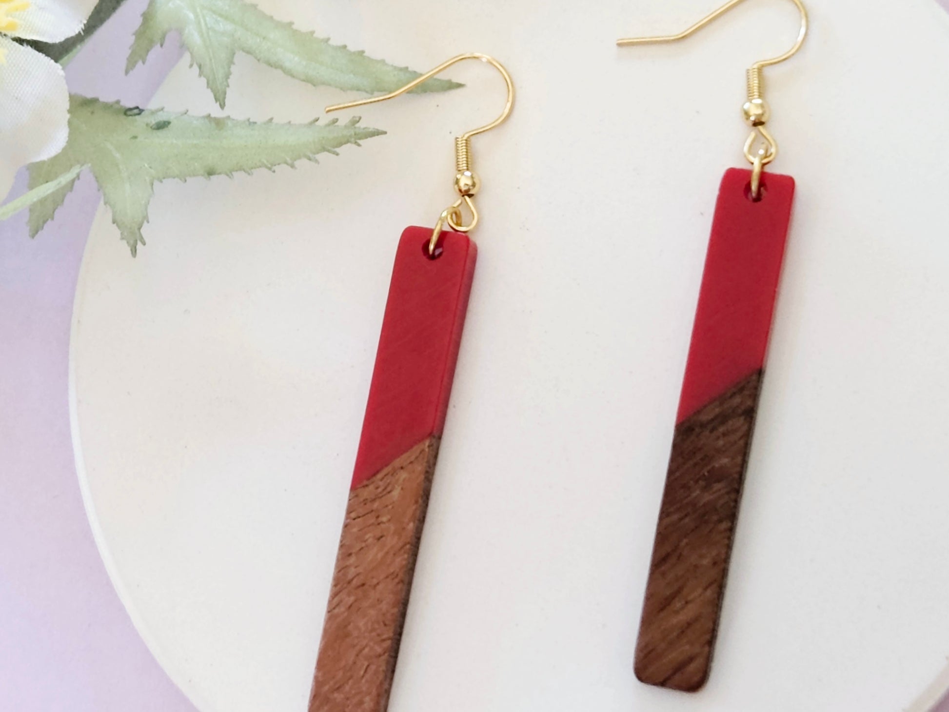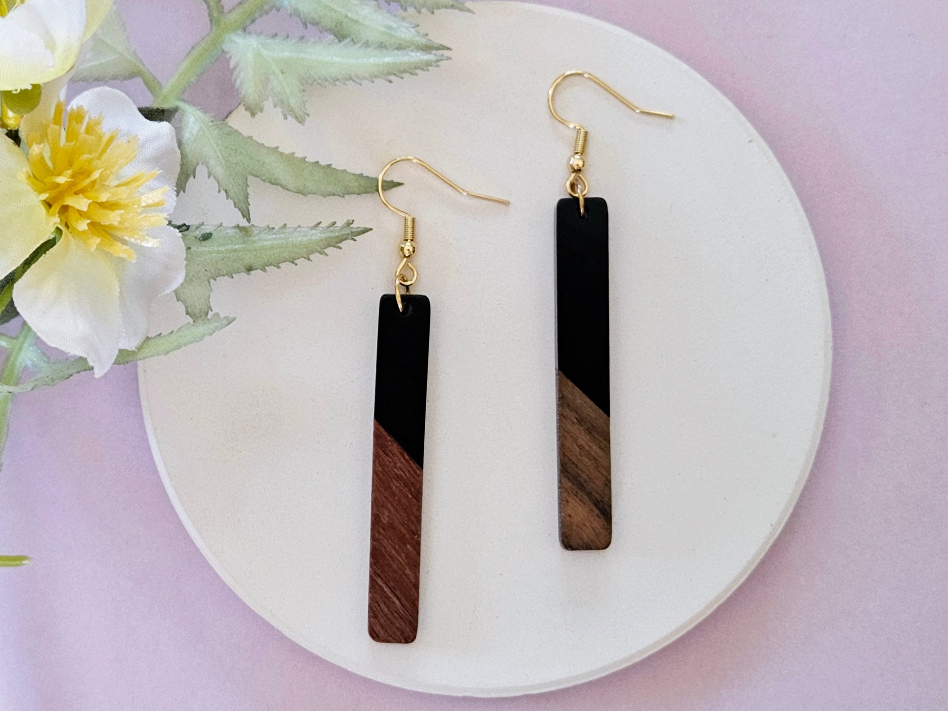Elevate your style effortlessly with these beautifully crafted wood and resin earrings. Designed with a minimalist charm, their timeless aesthetic pairs seamlessly with almost any outfit.
