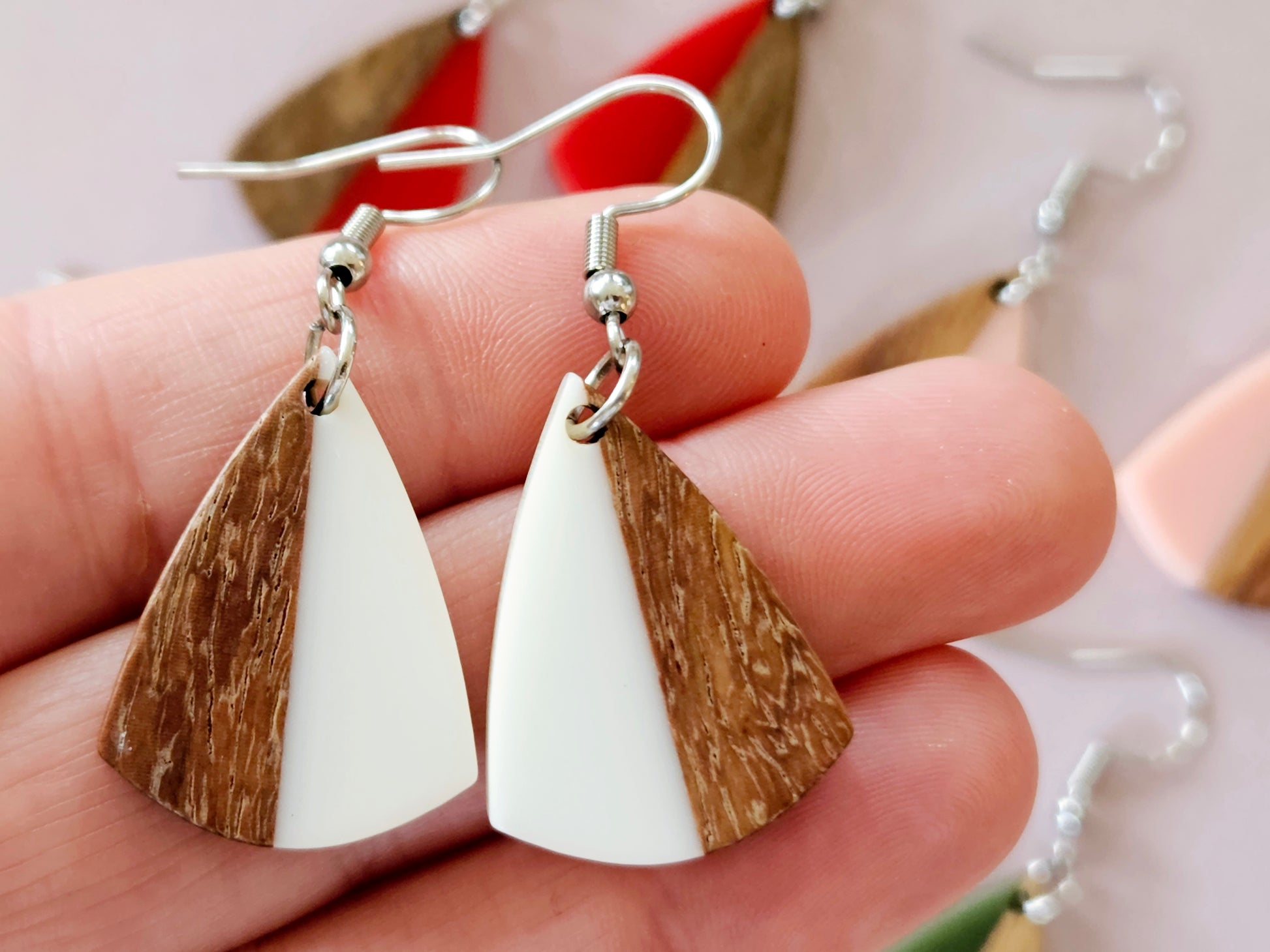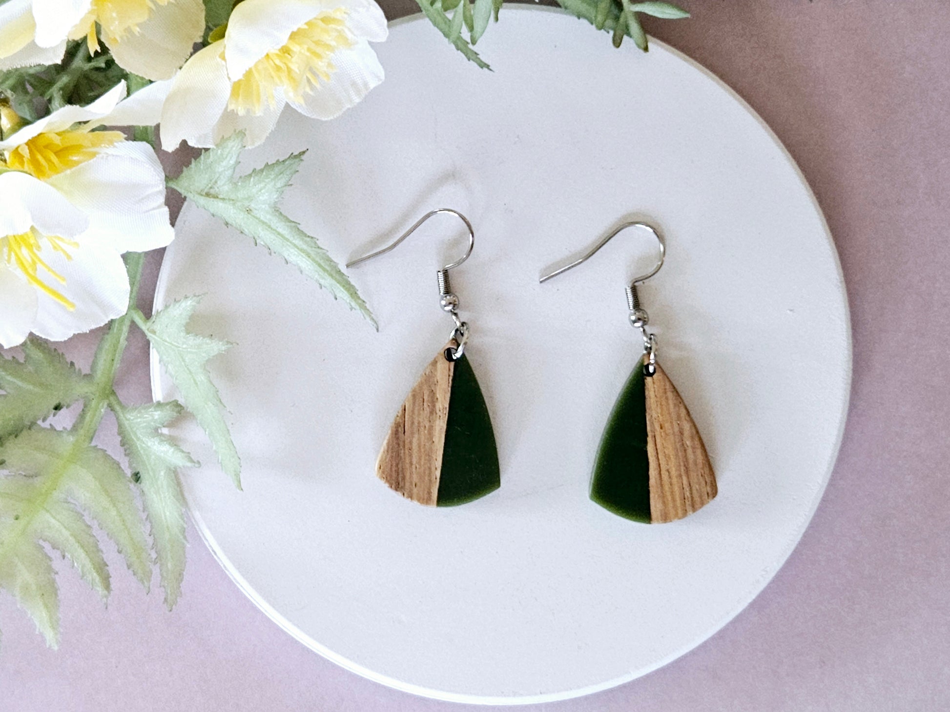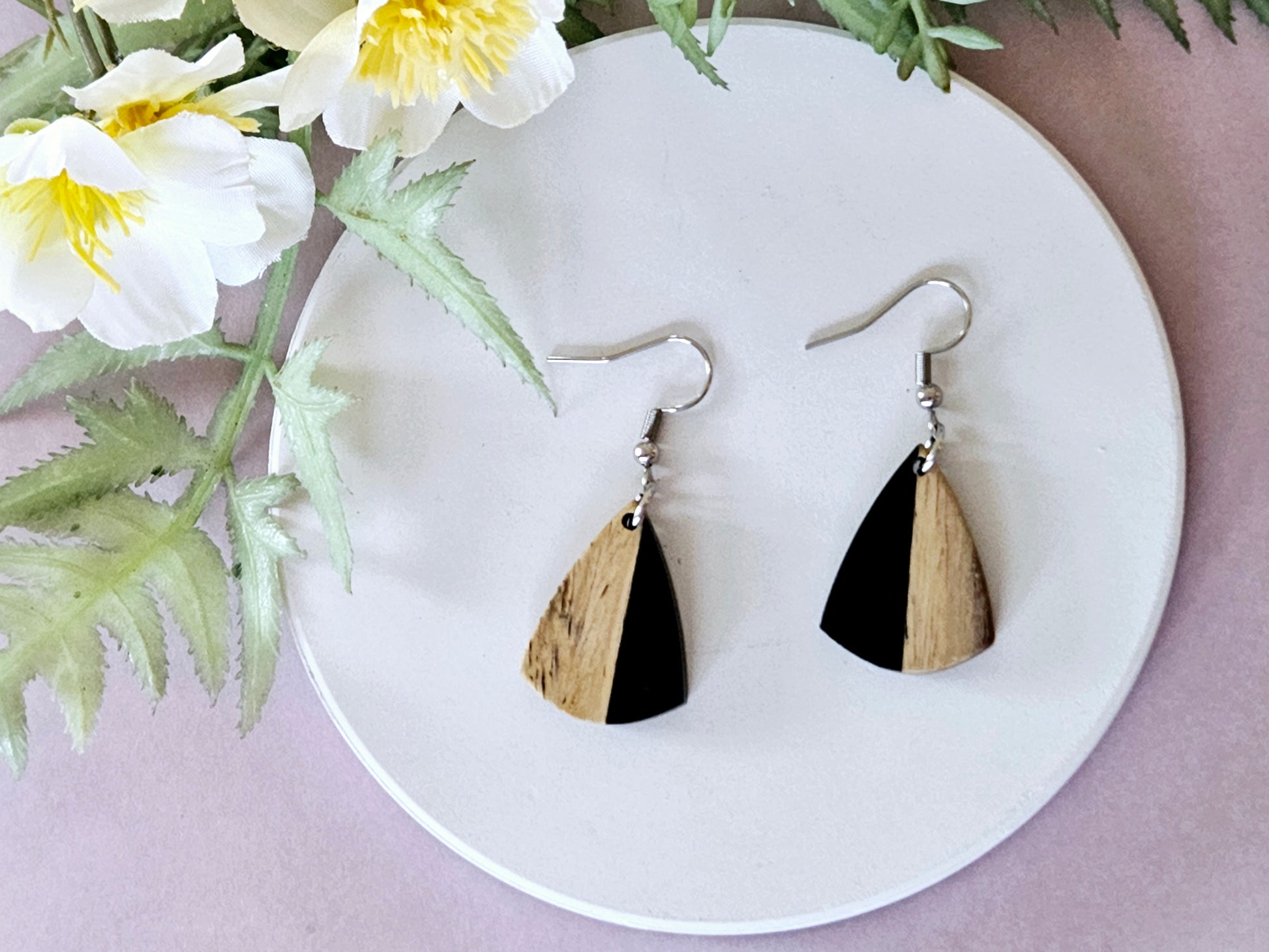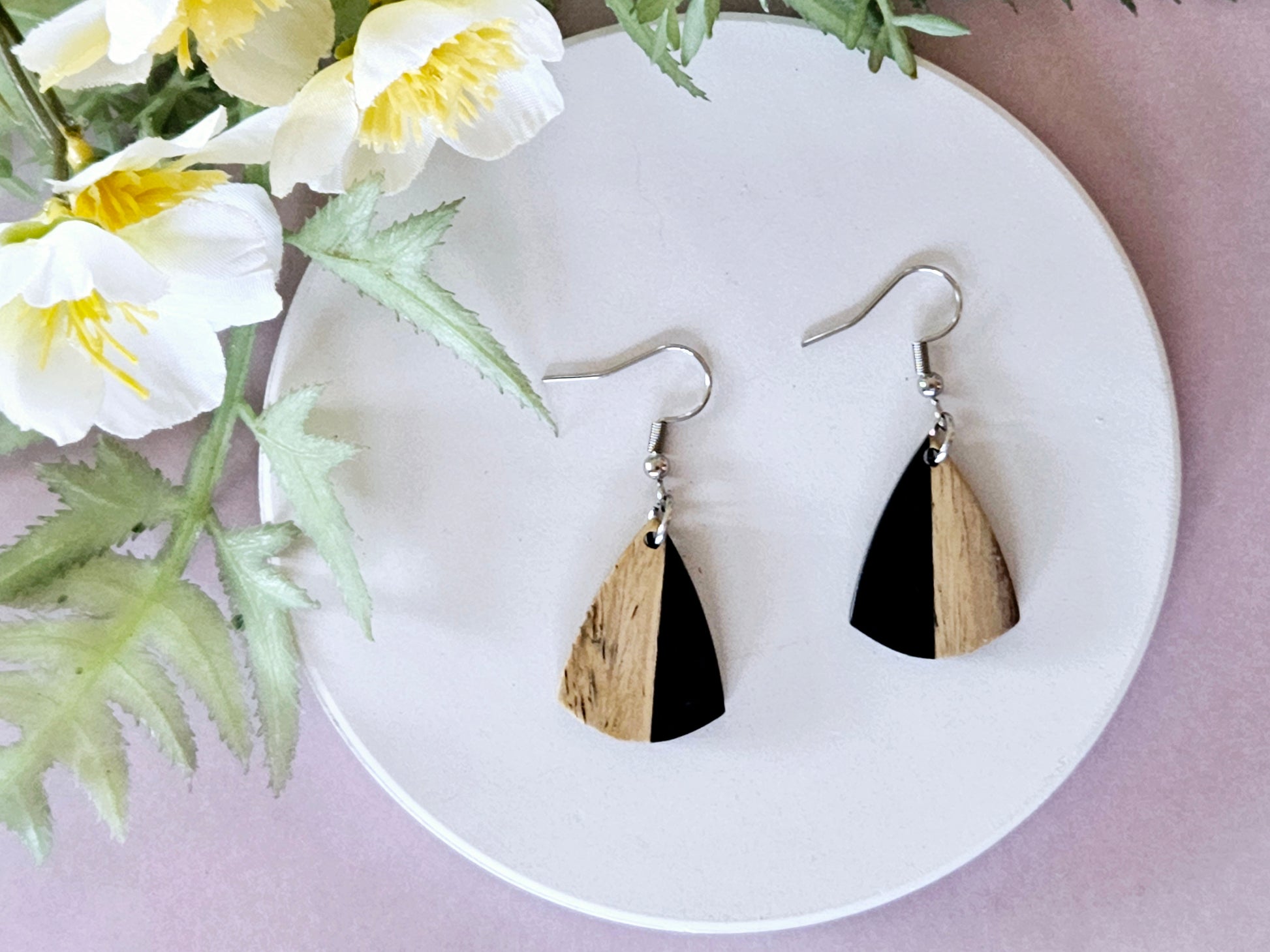 The wood and resin elements are thoughtfully sourced by River and Hill as pre-made components, with the earring findings carefully added to complete the design. This consideration is reflected in their pricing.