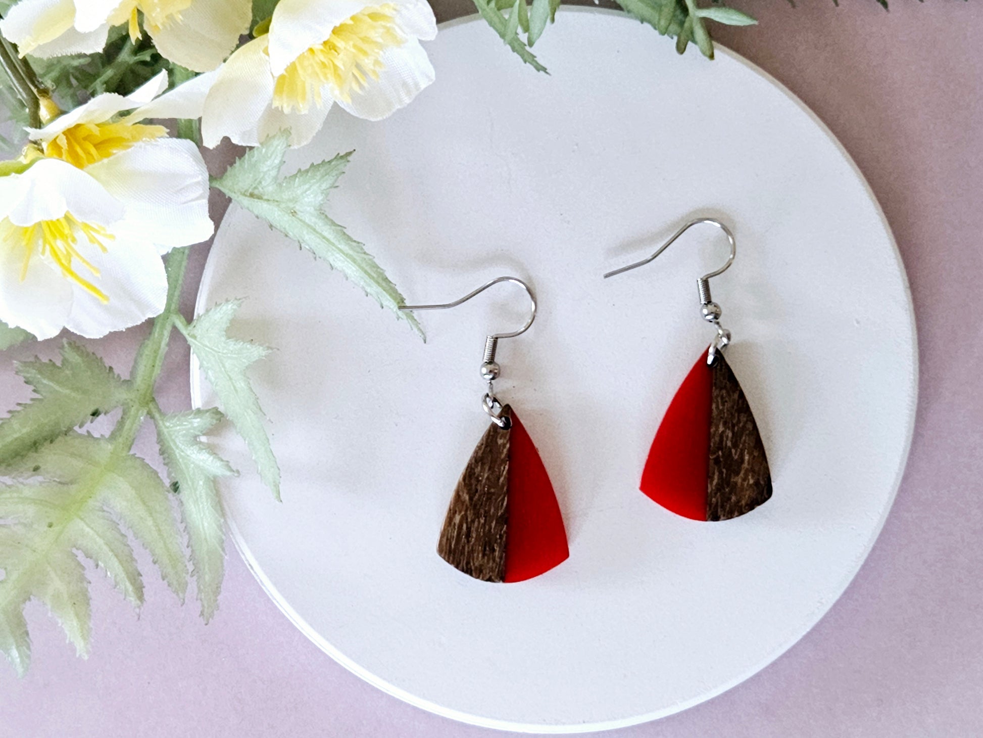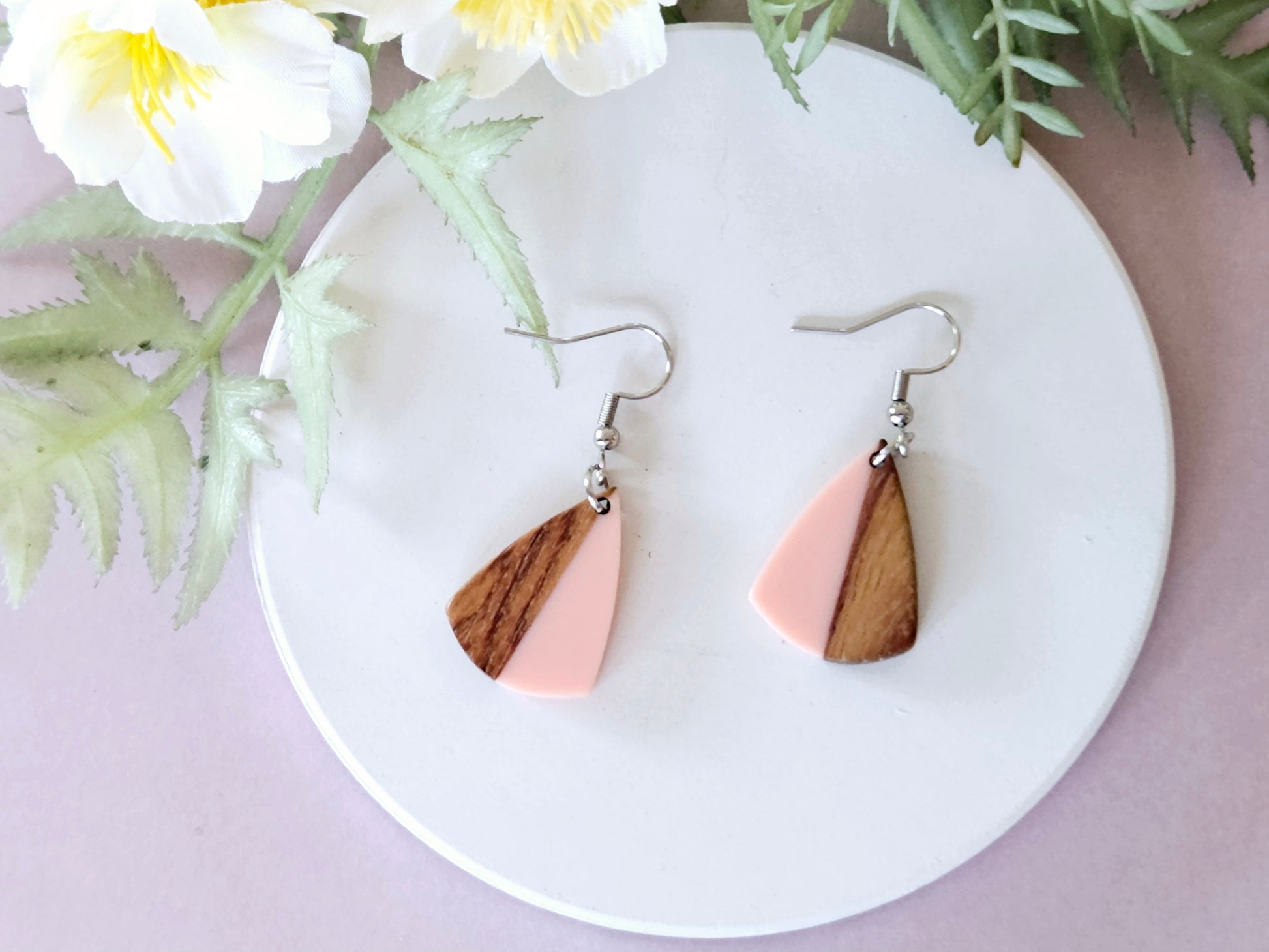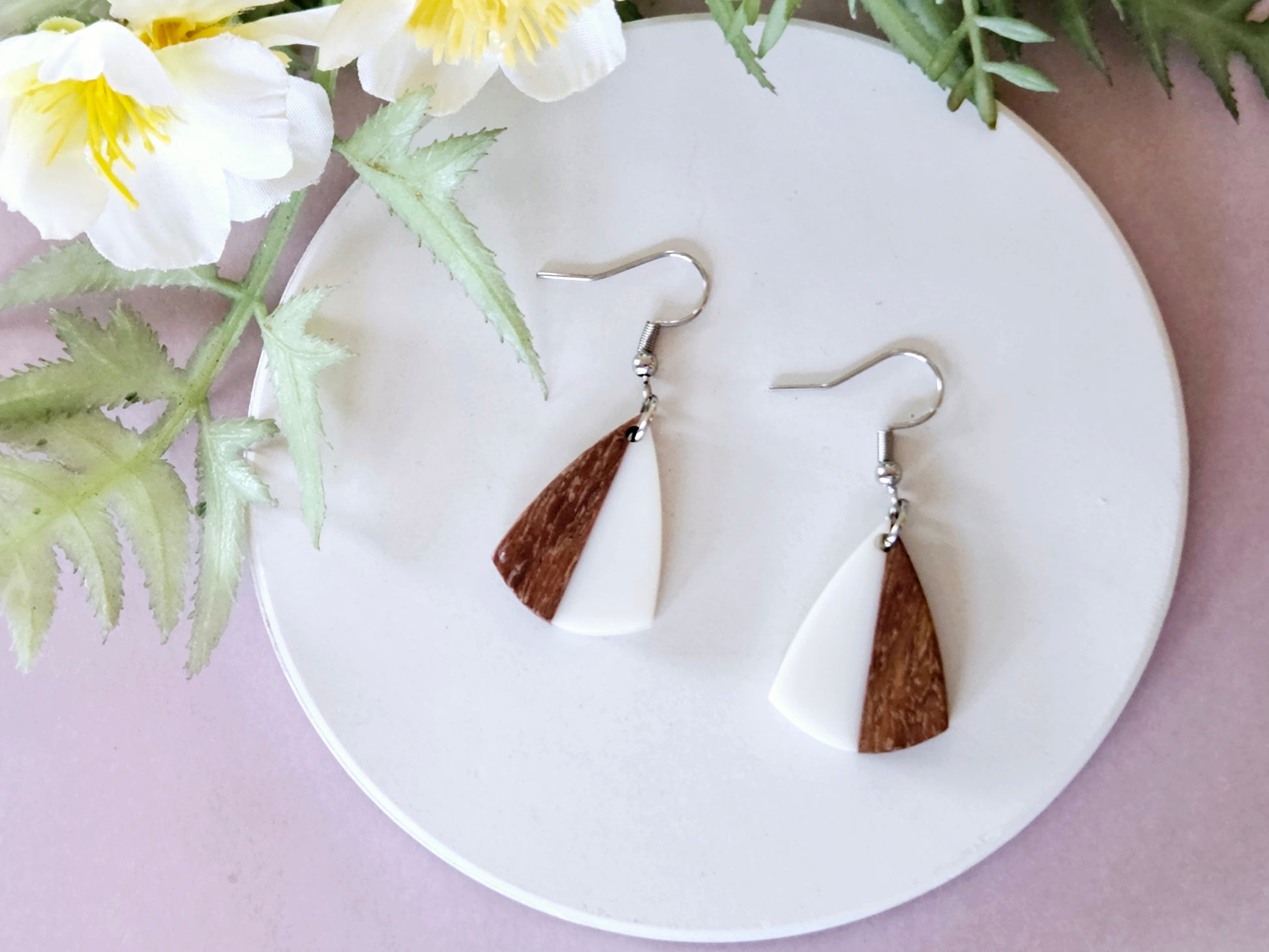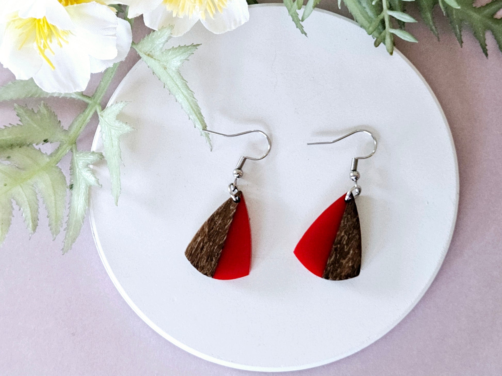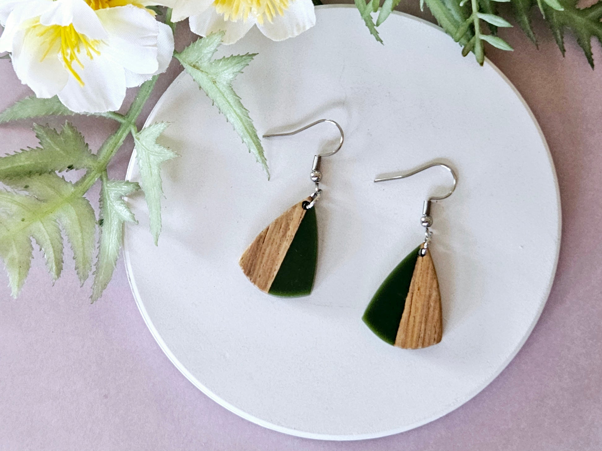 Wood and Resin Drop Earrings
